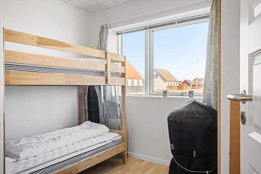 Glæd jer til at træde ind i et lyst og indbydende feriehus, hvor I straks føler jer hjemme. Her er der tænkt på jeres komfort – huset er smagfuldt indrettet med moderne og hyggelige møbler, som indbyder til afslapning og kvalitetstid. I finder to skønne soveværelser: ét med en dobbeltseng, hvor I kan vågne udhvilede op, og ét med en praktisk køjeseng – perfekt til børn eller gæster. Det åbne køkken ligger i forbindelse med den hyggelige spiseafdeling, så I kan nyde madlavningen og hinandens selskab på samme tid. Badeværelset er lækkert og funktionelt med en dejlig bruser. På førstesalen venter en rummelig opholdsstue med en helt særlig bonus – en vidunderlig udsigt til både Limfjorden og Vesterhavet. Glæd jer til at nyde aftenerne her, hvor I kan betragte solnedgangen male himlen over havet i de smukkeste farver. Dette er stedet, hvor ferieminder skabes.