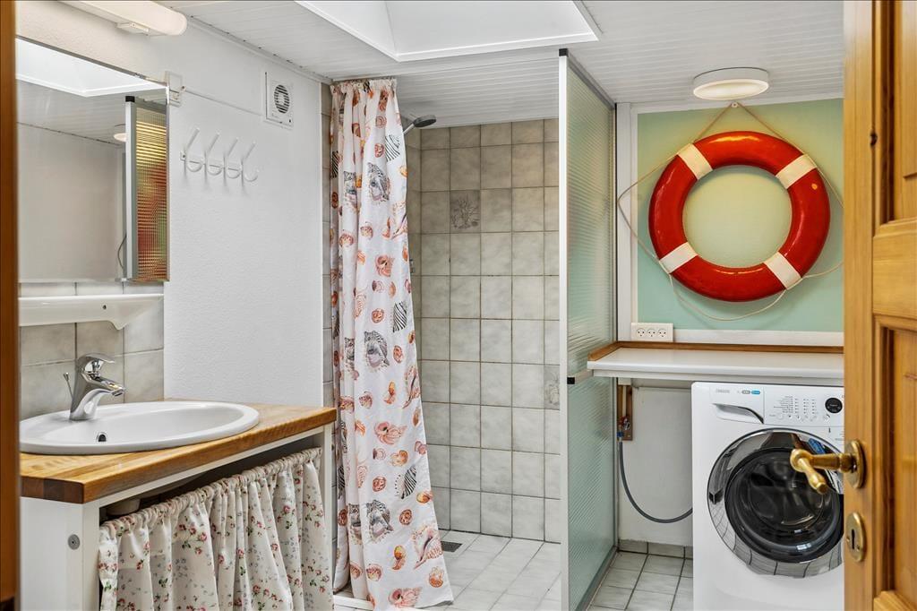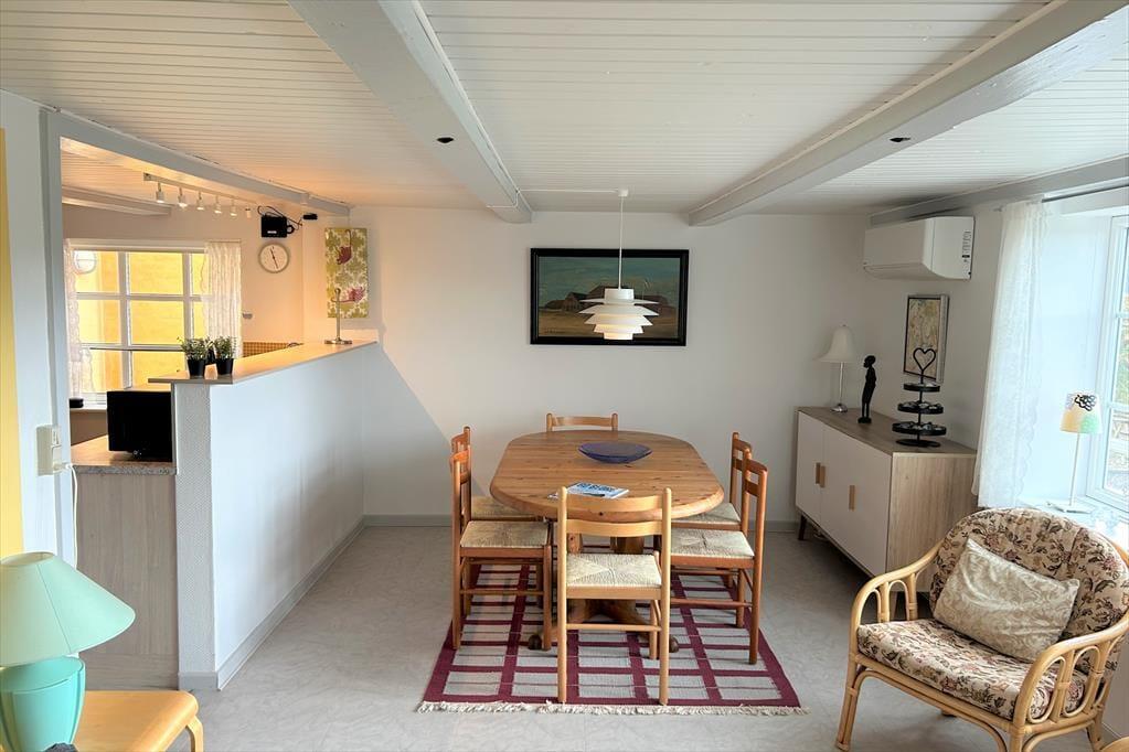 Dette dejlige feriehus byder jer velkommen med en lys og venlig indretning, hvor I straks vil føle jer hjemme. Møblerne er pæne og komfortable, og skaber en hyggelig atmosfære, der indbyder til afslapning og samvær. I stueplan træder I ind i en rummelig entre med trappeopgang til førstesalen. Badeværelset er lyst og indbydende med bruseniche og et smukt ovenlysvindue, der lader det naturlige lys strømme ind og skaber en skøn stemning.