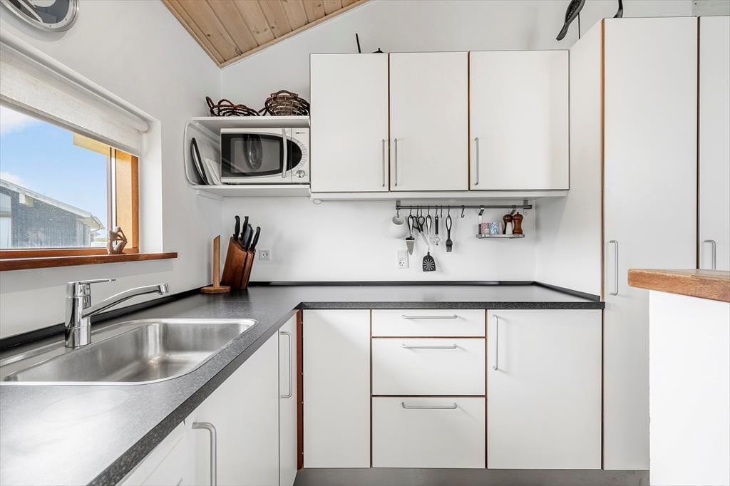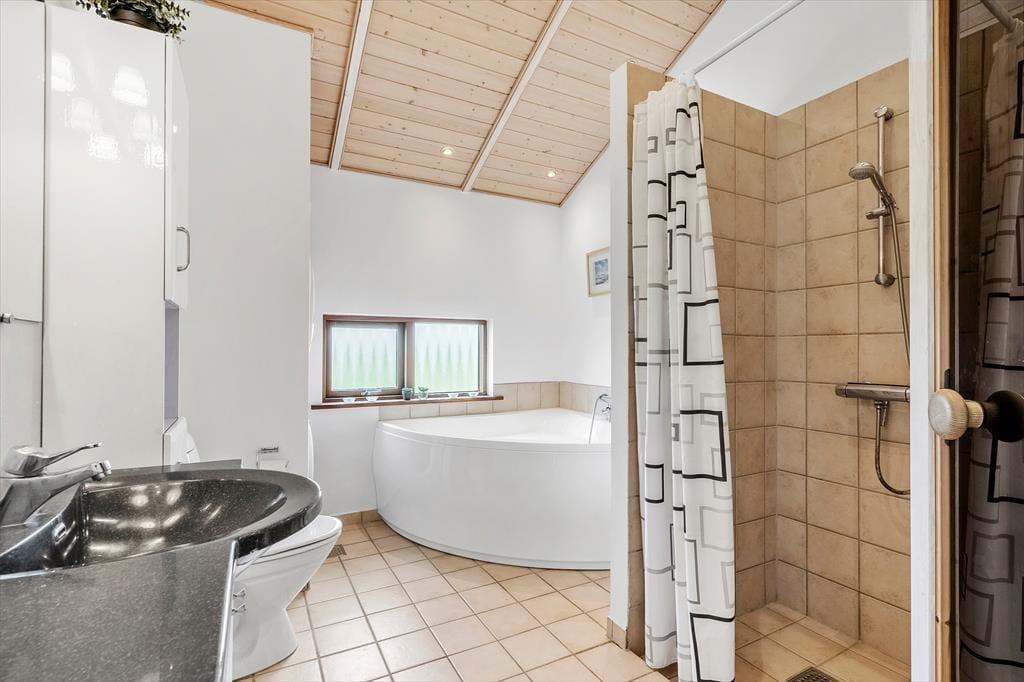 Det åbne køkken-alrum med loft til kip danner ramme om både nærvær og frihed. Her er der plads til liv og samtale, uden at forstyrre hinandens tempo. Når aftenen falder på, indbyder brændeovnens varme til hyggelige stunder – med et glas vin, en god film eller lidt kreativ fordybelse. Skal kroppen forkæles, står spaen klar med varme bobler, og saunaen tilbyder stilhed og dyb afslapning.