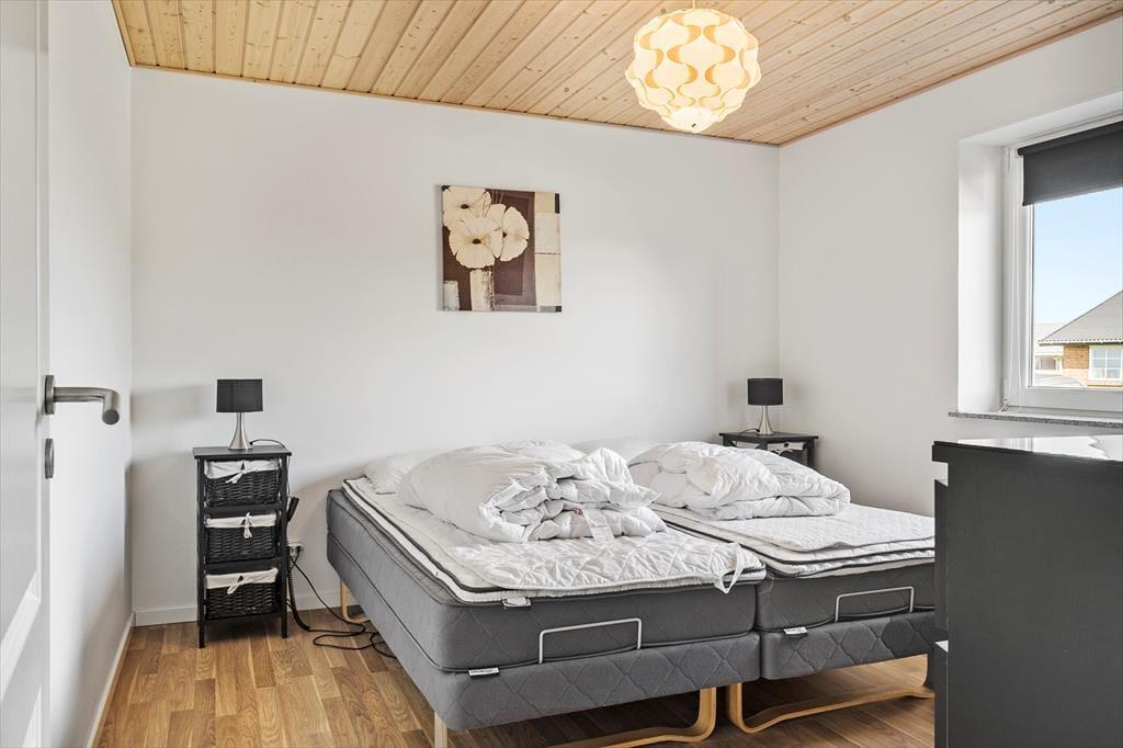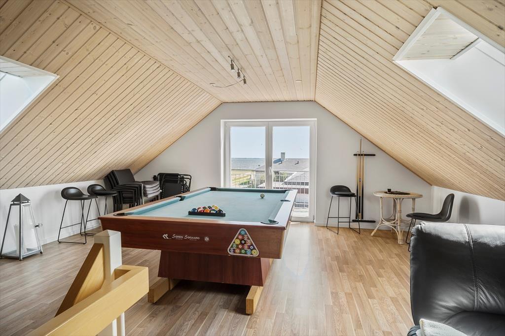 Velkommen til dette nye, moderne feriehus, der både er energibesparende og perfekt beliggende med en fantastisk udsigt over Nissum Fjord. Huset er smukt indrettet med praktiske og komfortable møbler, der skaber en indbydende og afslappende atmosfære. Det flotte, veludstyrede køkken ligger åbent ud til spise- og opholdsstuen, hvilket gør det ideelt til at samles og hygge sig. Fra stuen er der udgang til en delvis ugeneret terrasse, hvor I kan nyde de naturskønne omgivelser. Huset rummer to stilfulde badeværelser, herunder et luksuriøst badeværelse med spabad, hvor I kan slappe af og forkæle jer selv. På 1. sal finder I et aktivitetsrum med både pool bord- og billardbord, samt en altan, hvorfra I kan nyde den spektakulære udsigt over fjorden. Dette feriehus giver jer både komfort og underholdning i smukke omgivelser – en perfekt ramme for en uforglemmelig ferie. Der er desuden et husdyrgebyr på 150 Dkr. pr. hund.