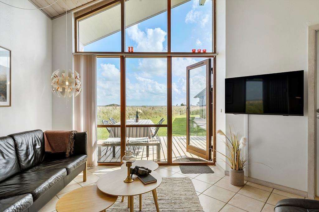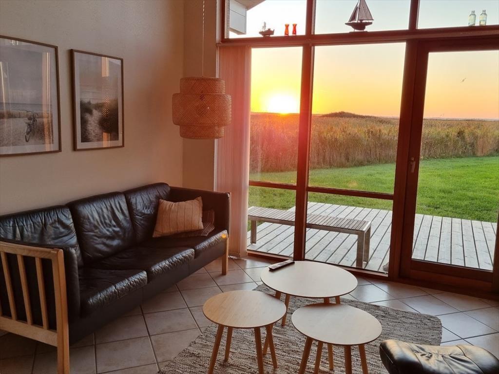 Nyd en rolig morgen på den flotte træterrasse, her kan I nyde dagens første kop kaffe og senere når hele familien er stået op nyde en lækre morgenmad. Fra terrassen kan I nyde den fantastiske udsigt ud til Nissum Fjord, og står I tidligt op kan I nå at opleve den smukke solopgang ud over fjorden, beundre det rige fugleliv og den smukke natur der breder sig til alle sider, se hvordan himlen skifter farve i takt med at solen langsomt går ned i det fjerne og skaber et væld af orangerøde nuancer. Kigger I, mod øst vil I blive mødt af en fantastisk udsigt. Vær opmærksom på at området foran huset er naturfredet, og derfor kan I ikke gå direkte til fjorden foran huset.