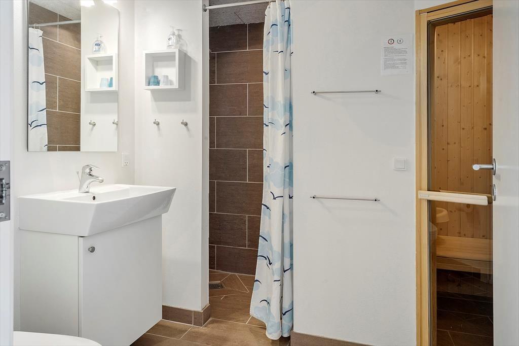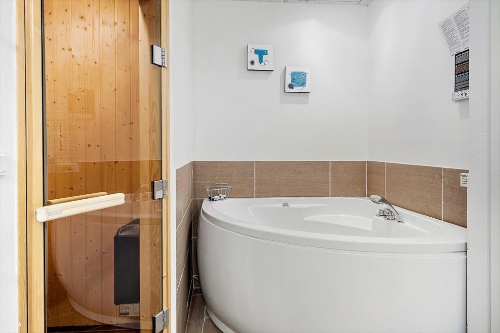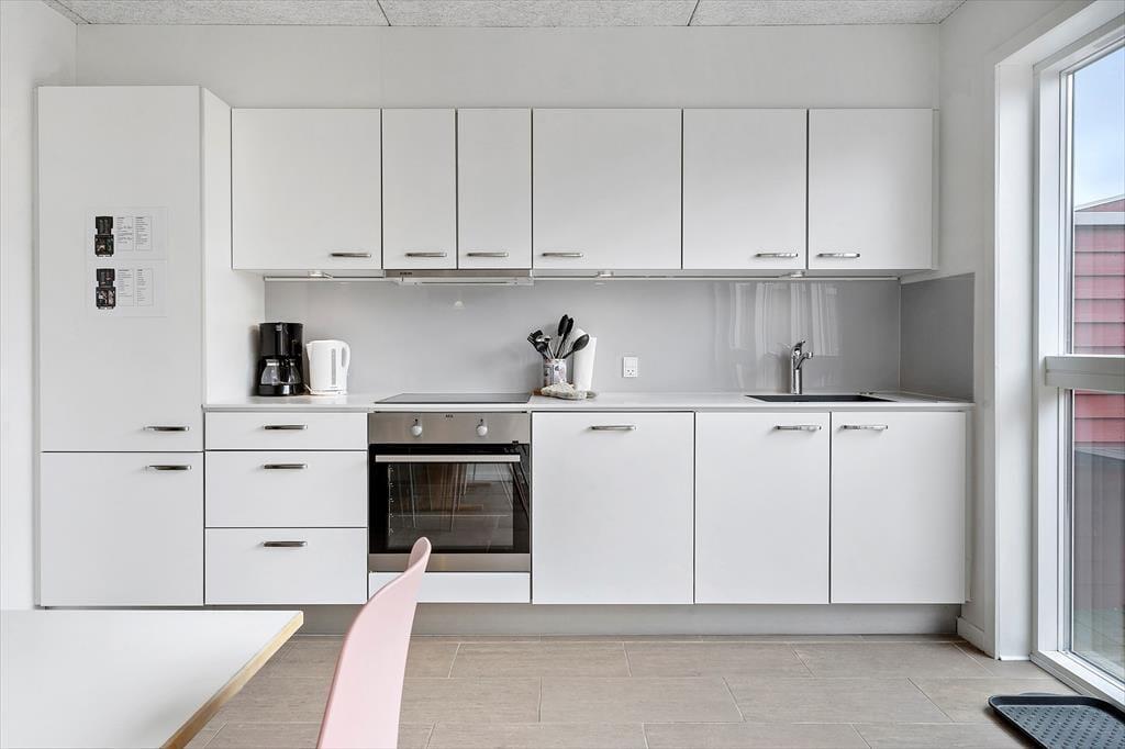 Køkkenet i stueetagen er moderne og funktionelt med plads til seks personer, og fra stuen kan I nyde udsigten over fjorden. Badeværelset med spabad og sauna indbyder til afslapning efter en aktiv dag, og et ekstra badeværelse med vaskemaskine og tørretumbler gør ferien nem. På førstesalen finder I en lys stue med panoramaudsigt og adgang til altan, hvor I kan nyde sol og fjordudsigt.