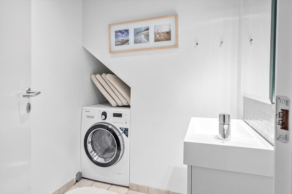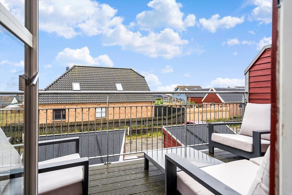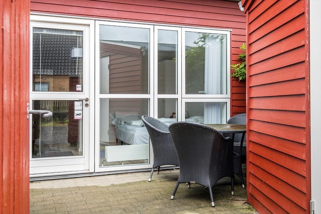 Når I ankommer til lejligheden, kan I nemt parkere bilen lige bagved på den fælles parkeringsplads – og herefter træder I ind ad jeres helt egen indgang til en hyggelig, lukket gårdhave. Her får I fred og privatliv, perfekt til en stille morgenkaffe eller en rolig stund i aftensolen. Gårdhaven har desuden et praktisk redskabsskur, hvor I kan opbevare cykler, fiskegrej eller strandudstyr. På første sal venter endnu en skøn oase: En solrig sydvendt terrasse med flotte og komfortable havemøbler, hvor I kan nyde solen og den friske luft det meste af dagen. Her er det oplagt at slappe af med en god bog, spise under åben himmel eller bare læne sig tilbage og nyde feriestemningen. Alt er gjort klar til, at I kan få en uforglemmelig og afslappende ferie i skønne omgivelser.