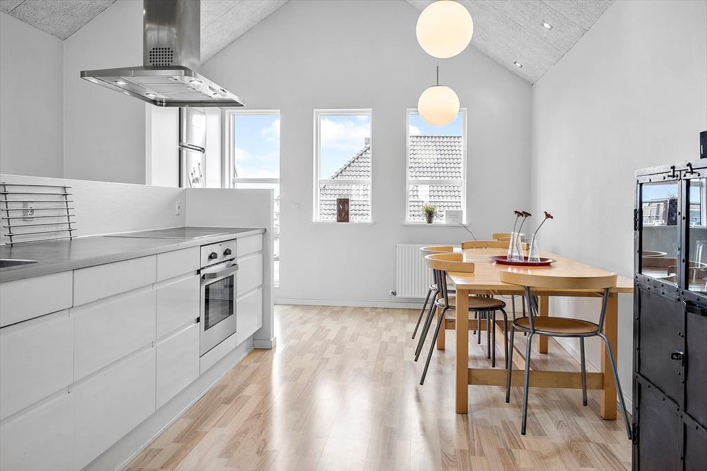Glæd jer til en skøn ferie i denne lyse og indbydende lejlighed i to etager – et perfekt sted for jer, der drømmer om komfort, hygge og skønne omgivelser. Allerede i stueetagen bliver I mødt af to dejlige soveværelser med dobbeltsenge, et gæstetoilet og et lækkert badeværelse, hvor I kan forkæle jer selv med både spabad, sauna og et godt brusebad – ren afslapning efter en dag fuld af oplevelser. På første sal åbner boligen sig op i ét stort og lyst rum, hvor det veludstyrede køkken giver jer alt, hvad I skal bruge til at tilberede lækre måltider. Herfra er der direkte adgang til en sydvendt terrasse, hvor I kan nyde solen dagen lang. I den modsatte ende finder I en hyggelig opholdsstue med komfortable møbler, brændeovn og adgang til en lille balkon – og ikke mindst en betagende udsigt over slusen og Nissum Fjord. Her får I både charme, luksus og naturoplevelser i ét.