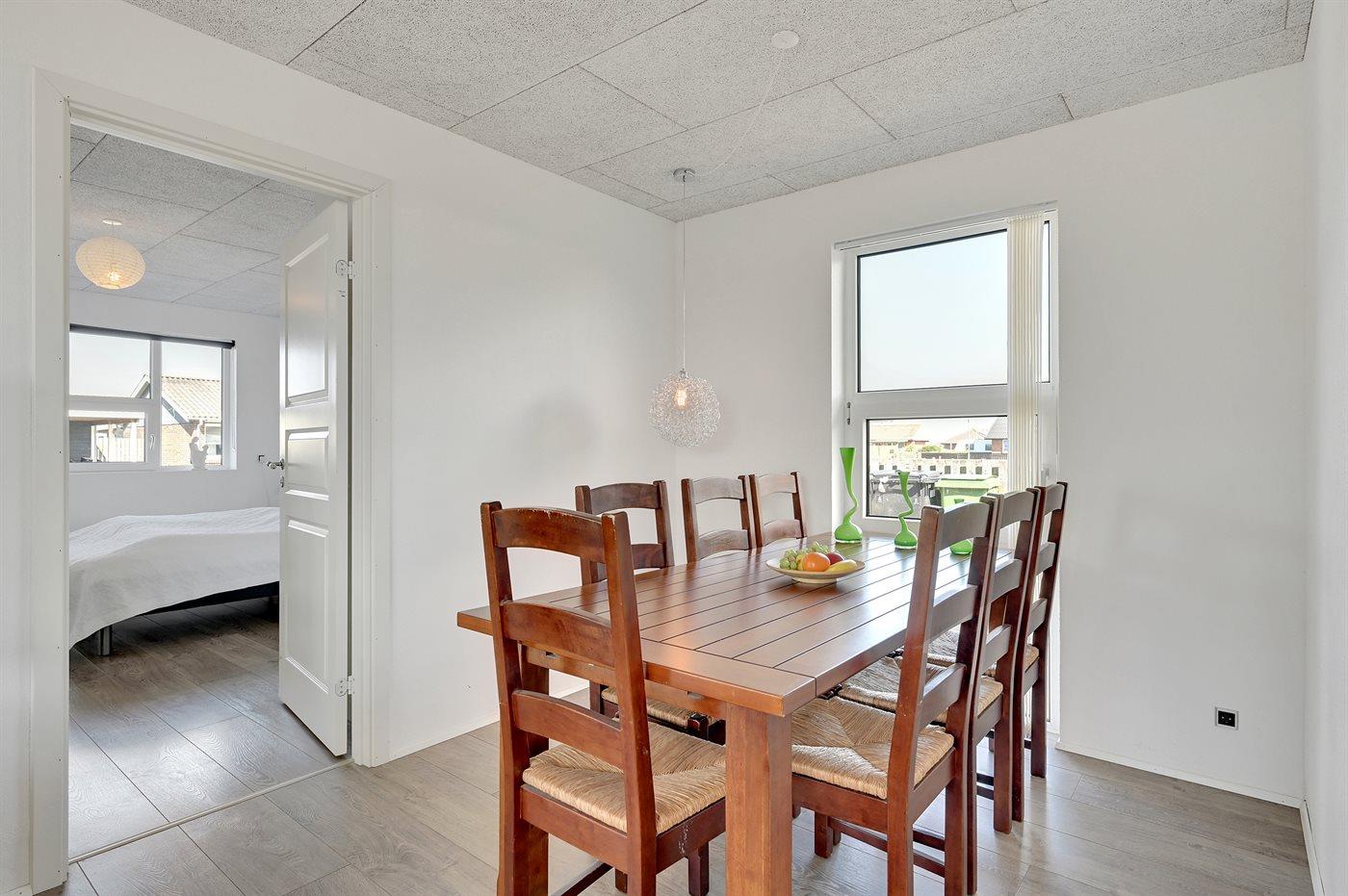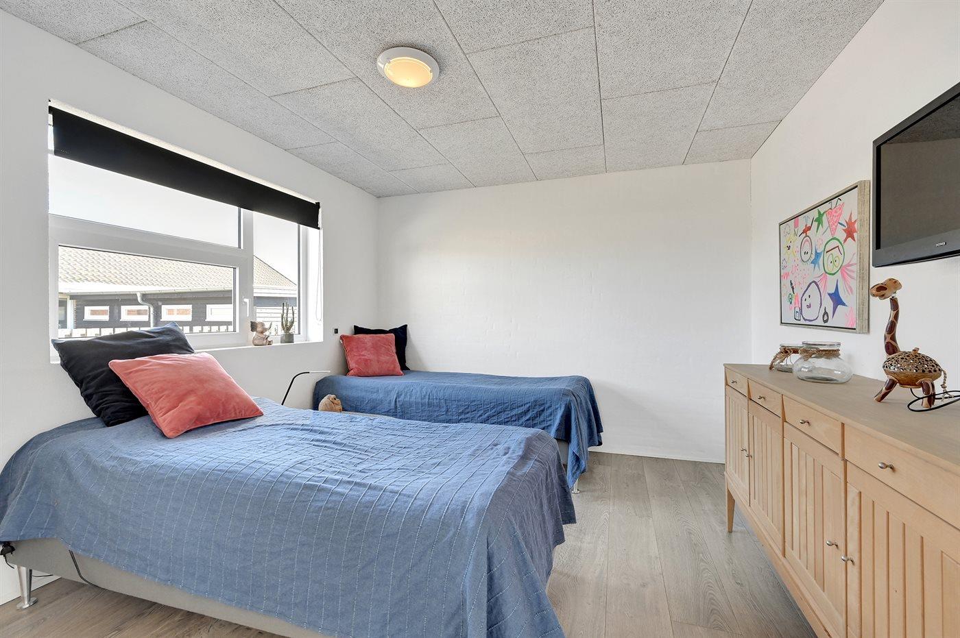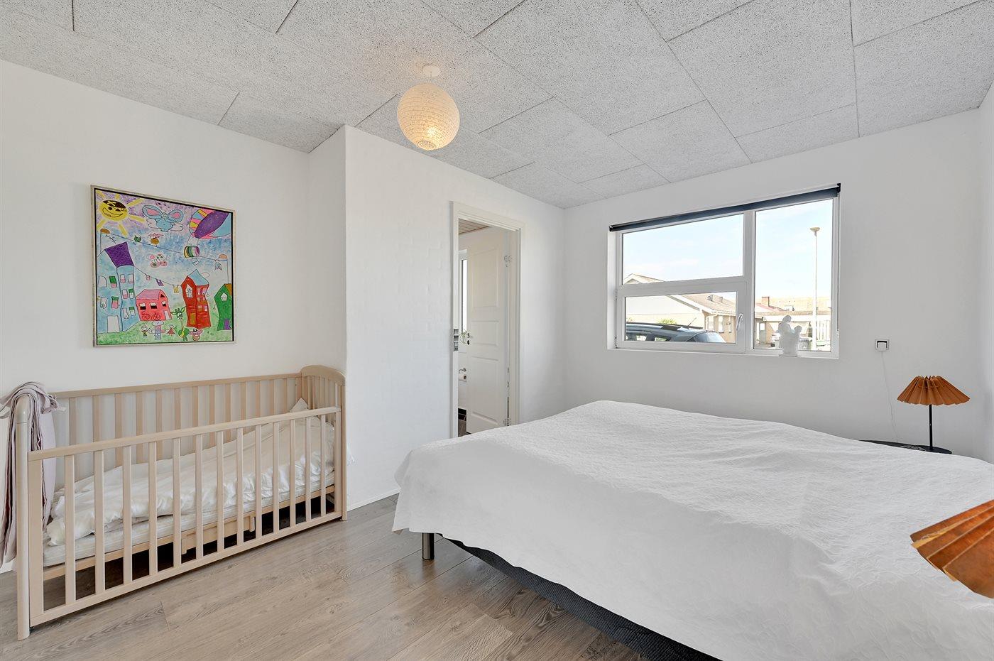 Der er i alt 4 soveværelser. Sovepladserne fordeler sig på: 6 sovepladser i dobbeltsenge. 2 sovepladser i enkeltsenge. Derudover er der 1 stk. barneseng.