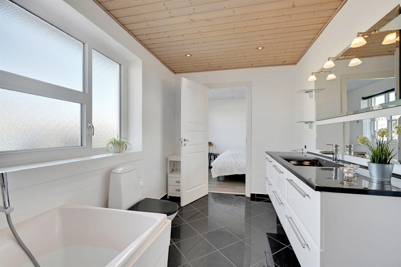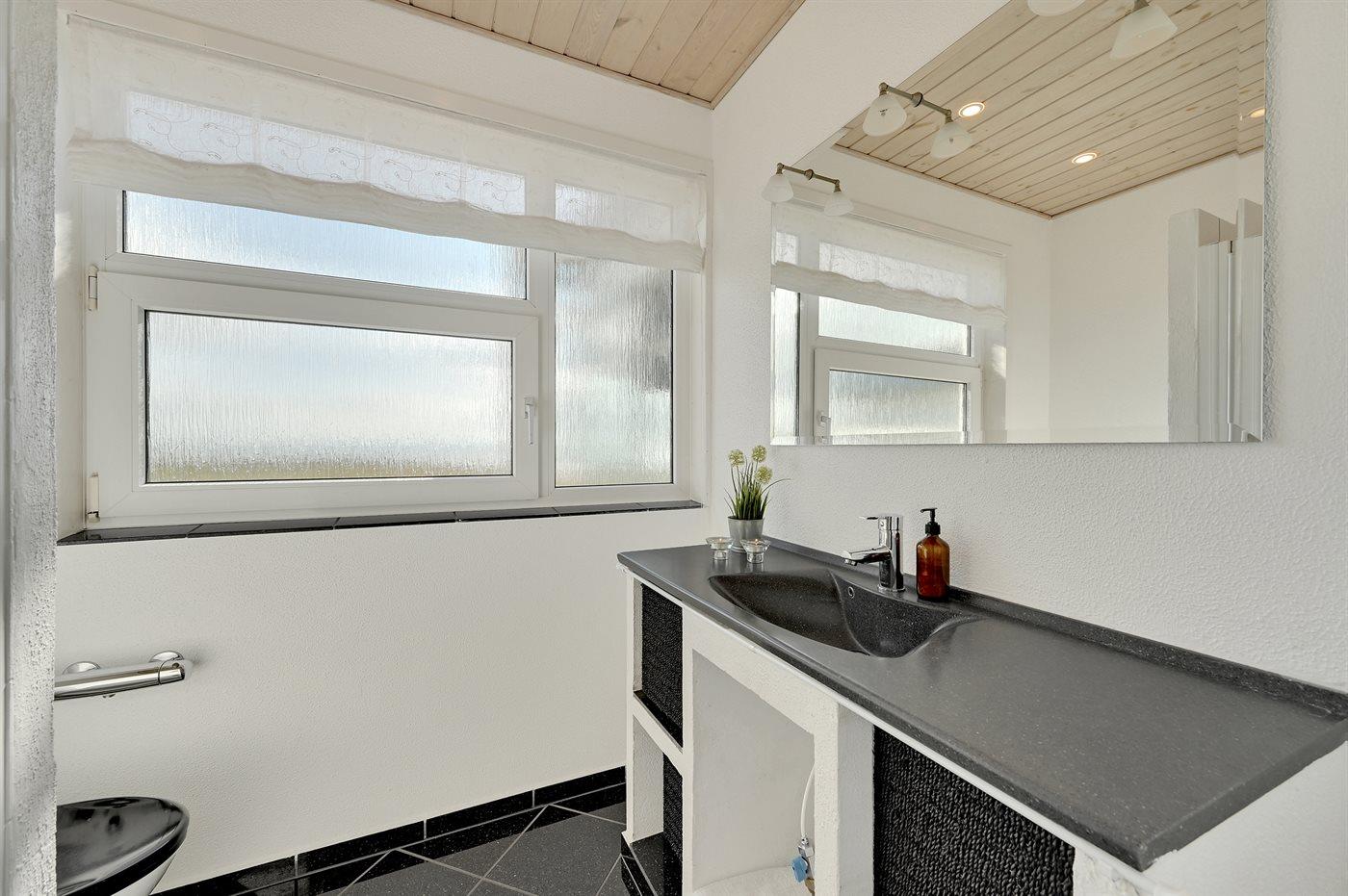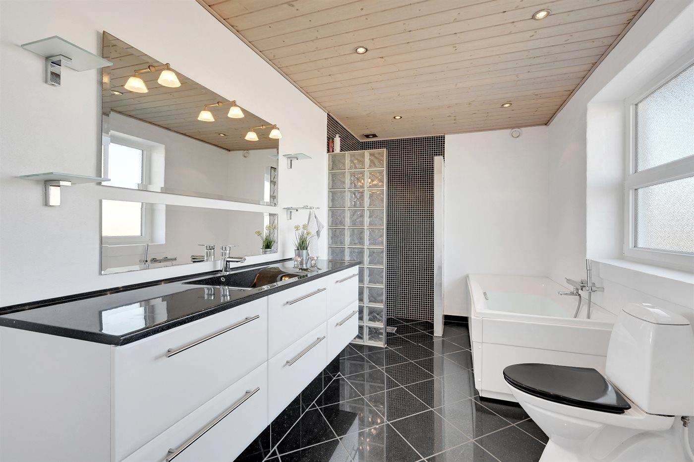 Der er 2 badeværelser med bruseniche og 2 toiletter. Der er gulvvarme på 2 badeværelser.