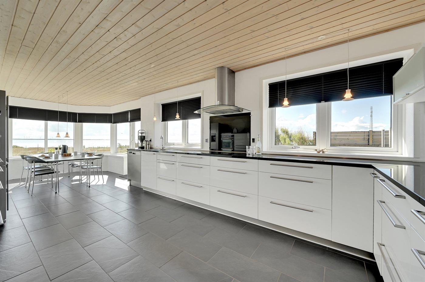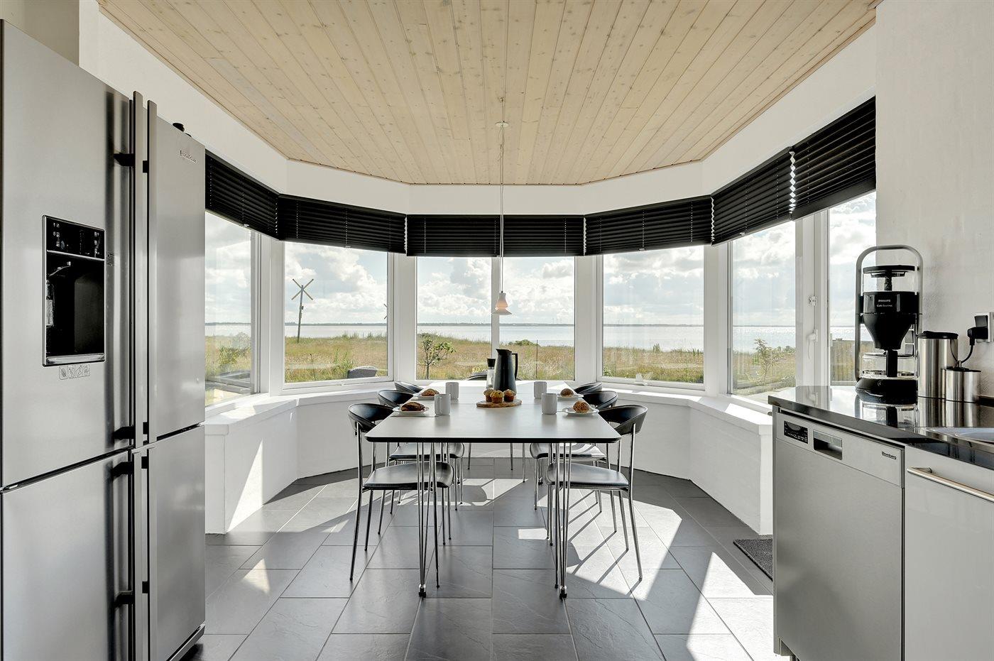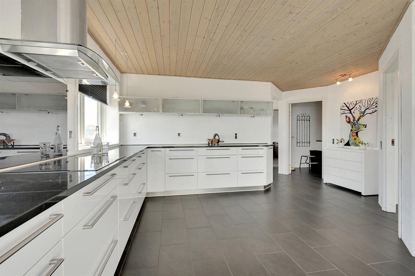 Køkkenet er udstyret med 1 amerikansk køleskab. Der er 4 induktionskogeplader, varmluftovn, mikrobølgeovn samt opvaskemaskine.