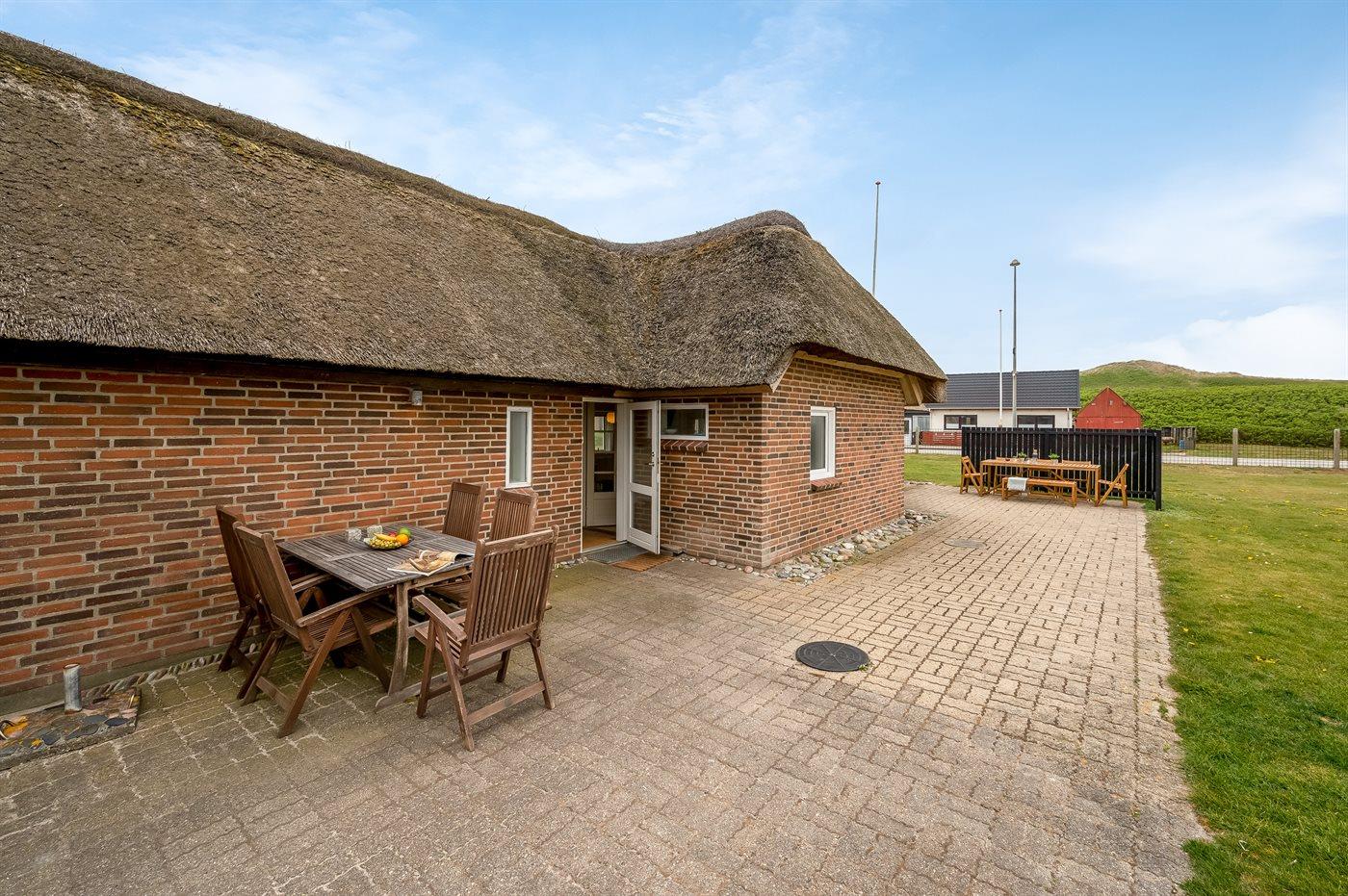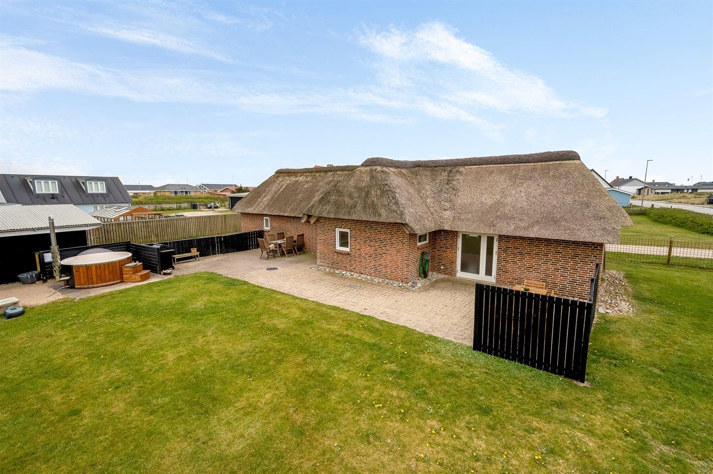 Stråtækt feriehus med vildmarksbad ved Vesterhavet