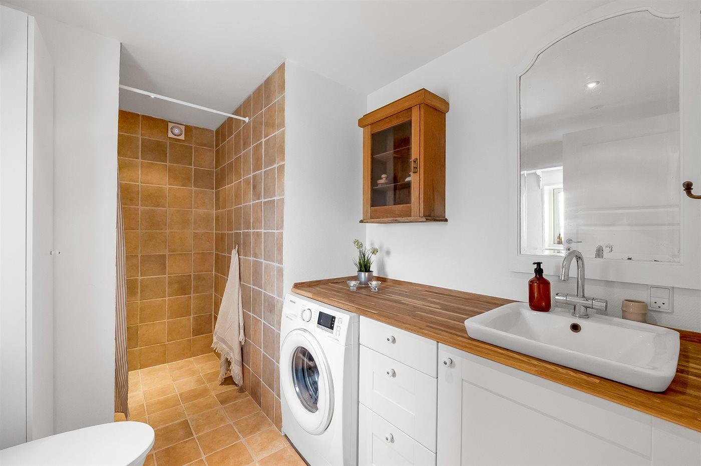 Der er 1 badeværelse med bruseniche og 1 toilet.. Der er gulvvarme på 1 badeværelse.