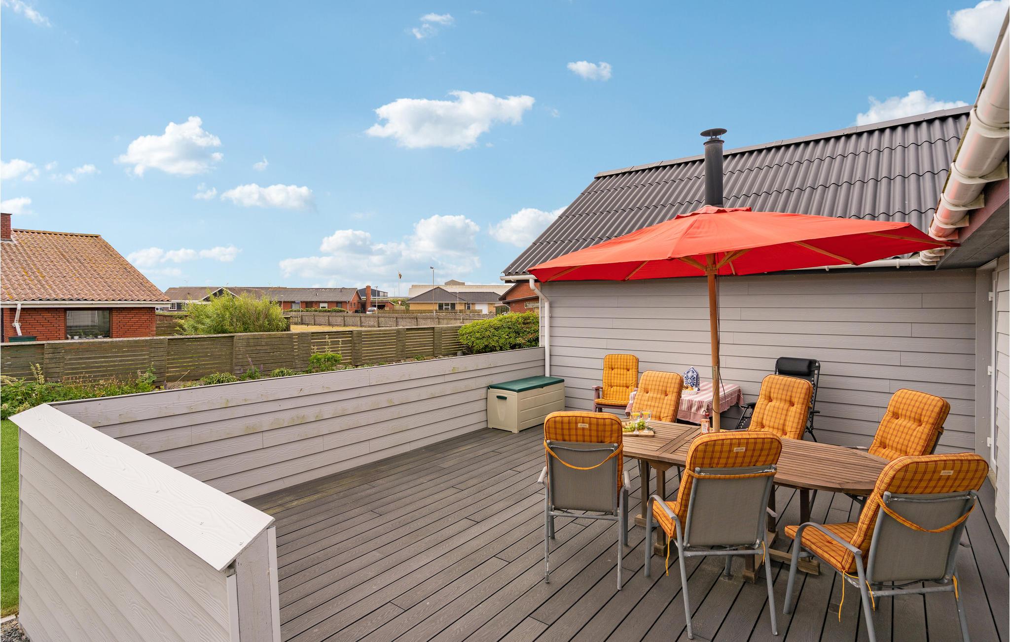 Velkommen til dette hus, ikke langt fra stranden. I Thorsminde ved slusen på den smalle odde med klitter, der adskiller den rolige fjord fra det barske Vesterhav, venter uforglemmelige oplevelser sammen med familien. I det åbne opholdsrum sørger store vinduer for et dejligt lysindfald, og møblerne skaber en hyggelig og varm atmosfære, der indbyder til afslapning. Lav mad sammen i køkkenet, mens børnene spiller kort eller lægger puslespil. Sæt lidt god musik på og tilbring hyggelige aftener ved brændeovnen. Nyd solen på terrassen i læ for vinden. På varme dage kan I spise udenfor og planlægge feriens aktiviteter og udflugter.