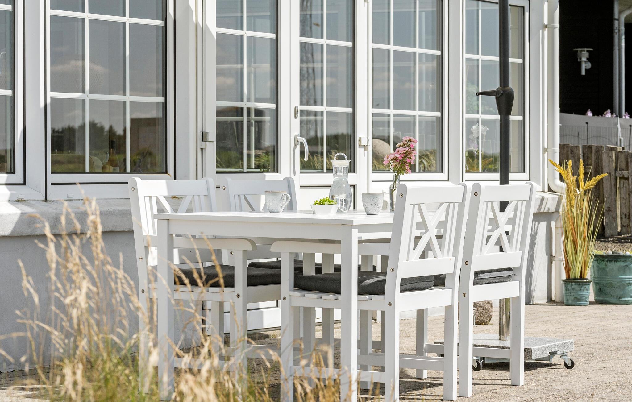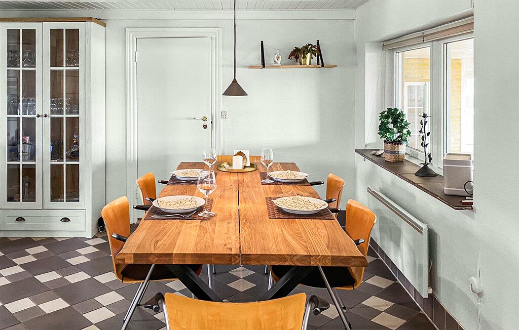 Dette feriehus byder jer velkommen med en charmerende beliggenhed i Thorsminde, lige på pynten mellem det barske Vesterhav og den rolige Nissum Fjord. Husets indretning og design byder på flere stemningsfulde detaljer som den gamle, svenske kakkelovn og klinkegulvet i jordfarver og giver et smagfuldt, varmt indtryk overalt. Tilbring afslappende læsestunder i en af stuerne eller saml jer om familiens yndlingsbrætspil. På kølige aftener kan I fyre op i brændeovnen og lade kampen i bordfodbold begynde i aktivitetsrummet. Sæt jer godt til rette i havemøblerne på husets terrasser, mærk solens varme stråler og lad blikket vandre over vandet. Hvis I har fiskestangen med, har I de ideelle betingelser for at prøve lykken og måske fange aftensmaden. Hvis fiskene ikke bider på, kan I købe både frisk og røget fisk i Thorsminde.
