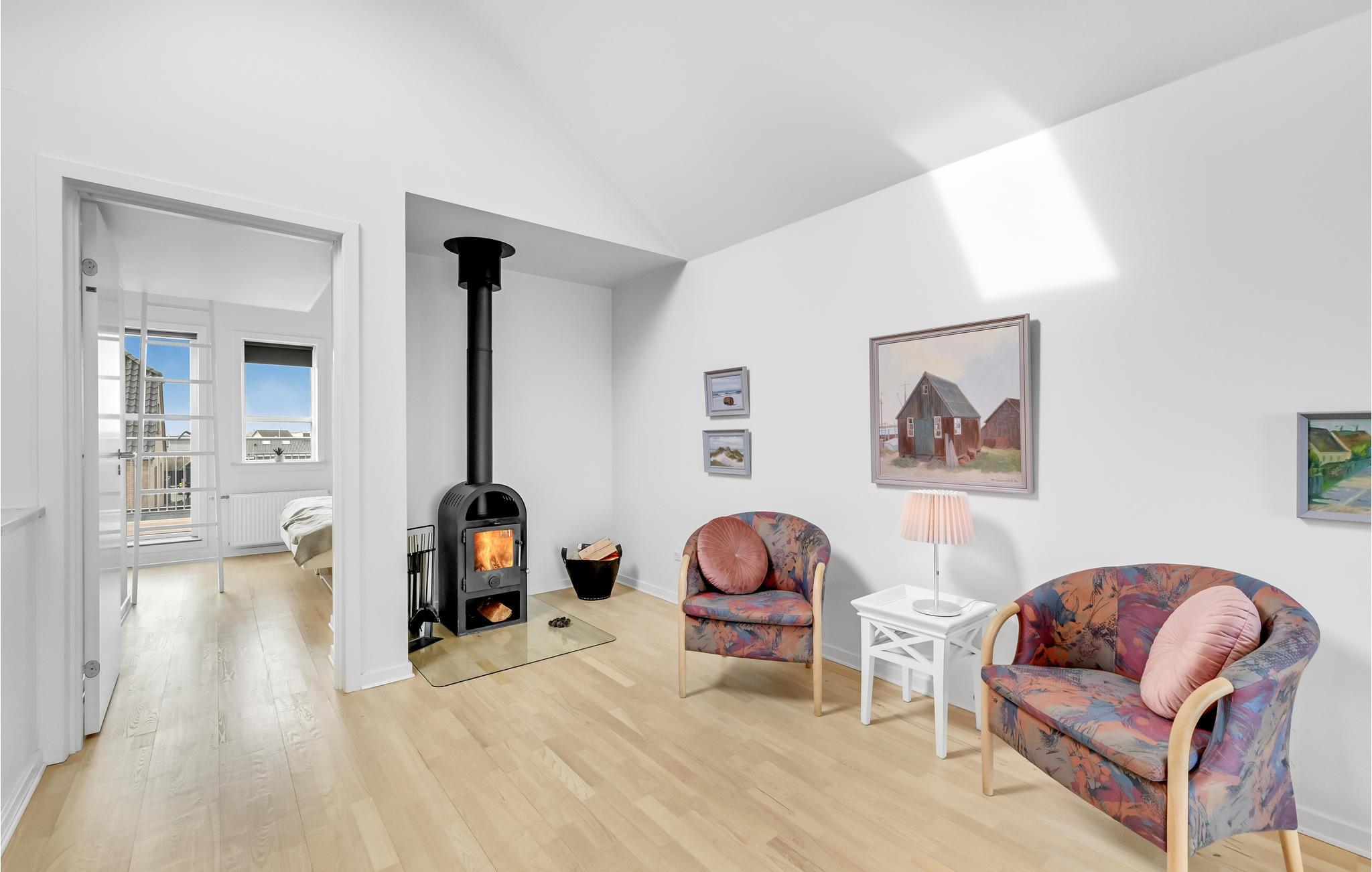 Få meter fra havnekajen og midt i fiskebyen Thorsminde ligger denne flotte ferielejlighed i to plan. Lejligheden er hyggelig, lyst og smagfuldt indrettet. Stueplanen indeholder et pænt køkken med bænk, spisebord og stole. Soveværelse med udsigt over havnen. Badeværelse med spa og sauna. 1. salen er indrettet med endnu et soveværelse samt en stue med brændeovn. Fra stuen er der adgang til en mindre sydvestvendt balkon, hvorfra I kan nyde aftenssolen, udsigten over havnen, klitterne som danner det perfekte baggrundsbillede og ikke mindst nyde havets brusen. Lejlighedens beliggenhed mellem hav og fjord giver mange muligheder for spændende naturoplevelser, uanset om I er til surfing i fjorden, gåture, cykelture, drageflyvning m.m. Området er desuden et sandt eldorado for lystfiskere, så der er gode muligheder for at fange nogle lækkerier til middagen. Hjemme igen, godt træt efter en dag i den vestjyske friske havluft, kan dagen afsluttes med en tur i spabadet, saunaen eller hvad med at tænde op i brændeovnen og lade roen sænke sig, til lyden af den varme knitrende ild, mens tankerne får frit løb!