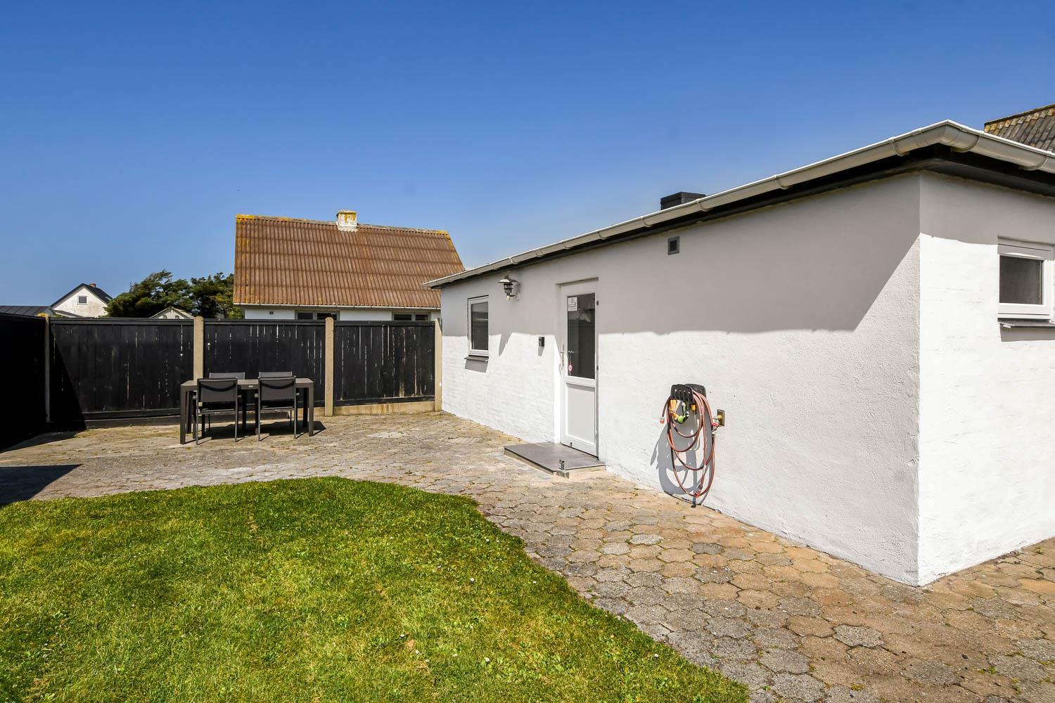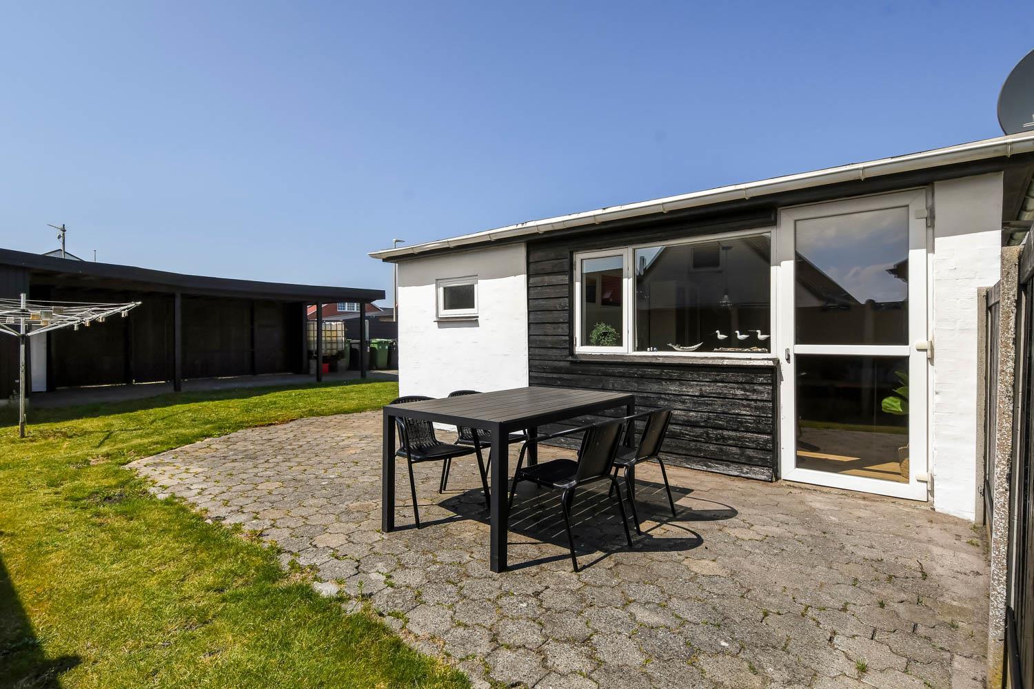 Huset er beliggende på en 300 m2 naturgrund tæt på indkøb og Vesterhavet. Der er en terrasse med havemøbler, grill og der er desuden en carport til bilen. Der er en skøn udsigt til klitterne ved Vesterhavet. Thorsminde er en hyggelig fiskerby, hvor der er gode muligheder for lystfiskeri både ved slusen og ude fra stranden. Et godt hus til lystfiskere eller et par som gerne vil bo i Thorsminde by og tæt på Vesterhavet.