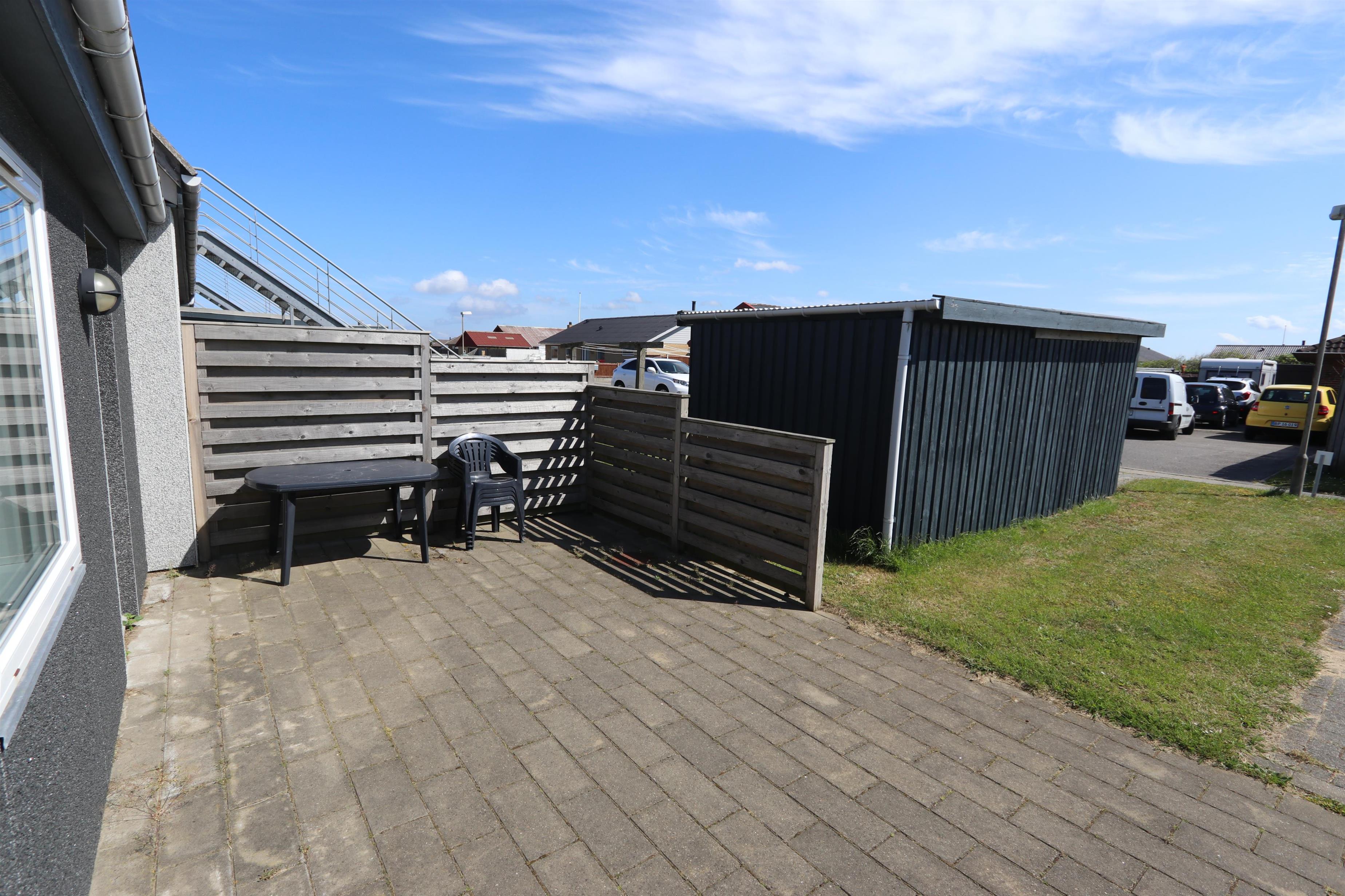 Fra stuen er der udgang til en åbent terrasse med havemøbler og grill. Lejligheden ligger kun 600 m fra det busende Vesterhav, hvor du hver dag kan gå på nye oplevelser. Kun 50 m fra lejligheden er der offentlig legeplads med bl.a. multibane, gynger og hoppepude. Tæt på lejligheden findes der mulighed for at hente morgenbrød og købmandsvarer hos den lokale købmand. Besøge Strandingsmuseum Skt. George som er et besøg værd for hele familien. Spise i restaurant Skt. George, på den lokale grillbar eller hente dejlig frisk fanget fisk hos den lokale fiskebutik som er klar til tilberedning. Nyd en gåtur ved havnen eller ved Vesterhavet. Husk badetøjet til en dukkert om sommeren. Så hvad enten du er til aktiv ferie eller total afslapning danner denne lejlighed en hyggelig ramme både hvad angår beliggenhed og omgivelser.