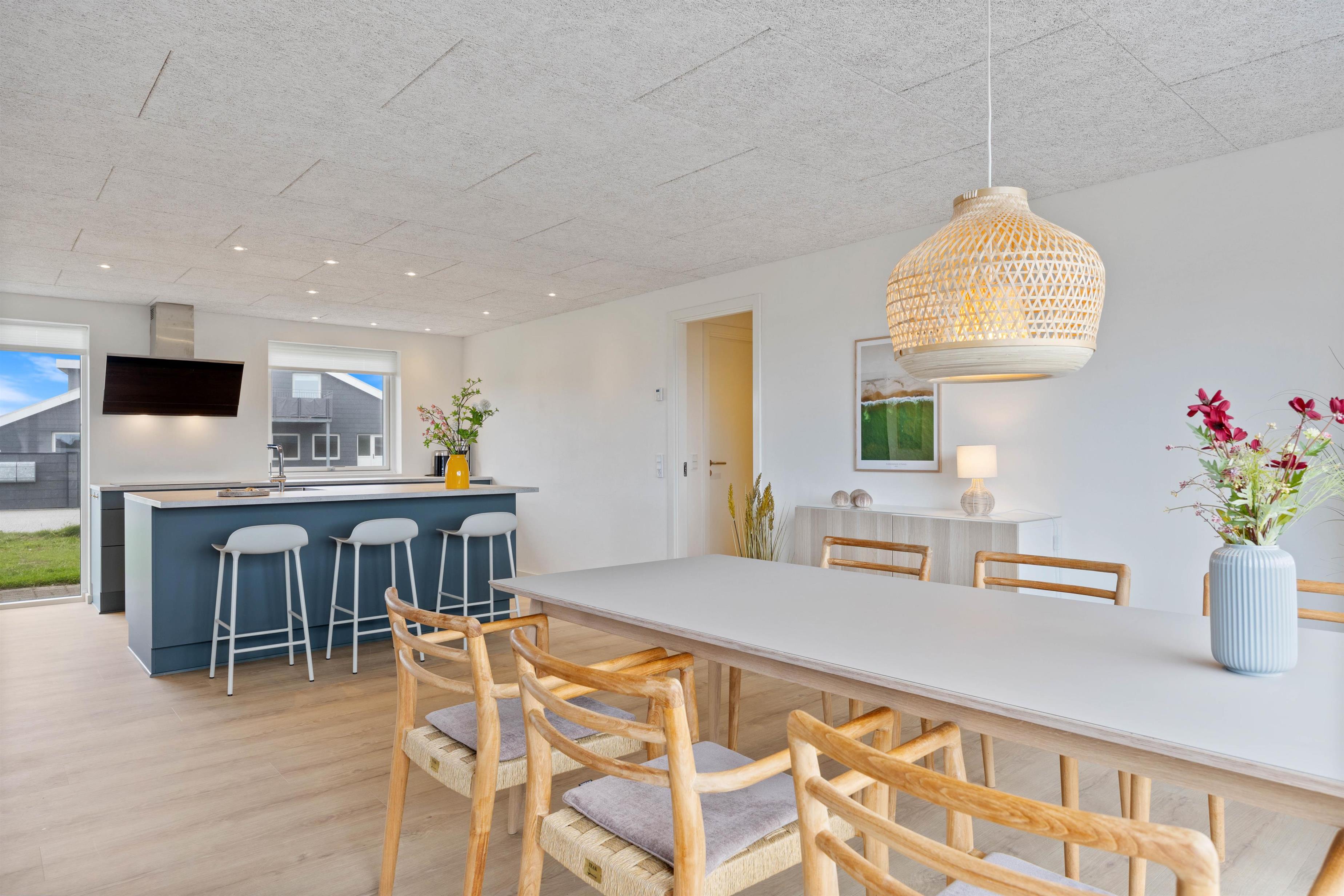 Feriehuset blev renoveret i 2024 og byder jer velkommen med et moderne interiør. I feriehusets hjerte er stue og køkken i åben plan, hvor der er rig mulighed for kvalitetstid. Her kan der både laves mad, spilles spil eller planlægges ferieaktiviteter