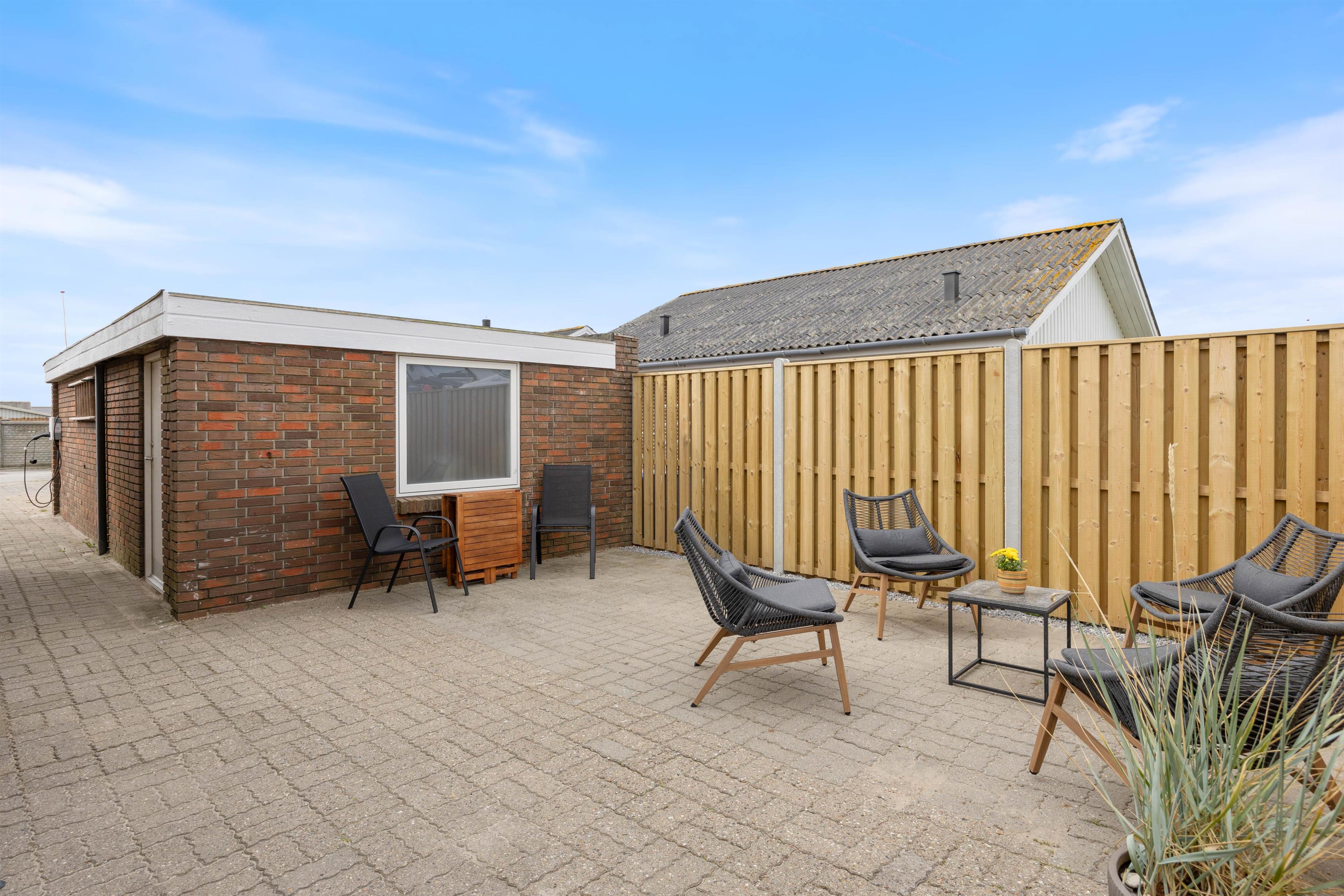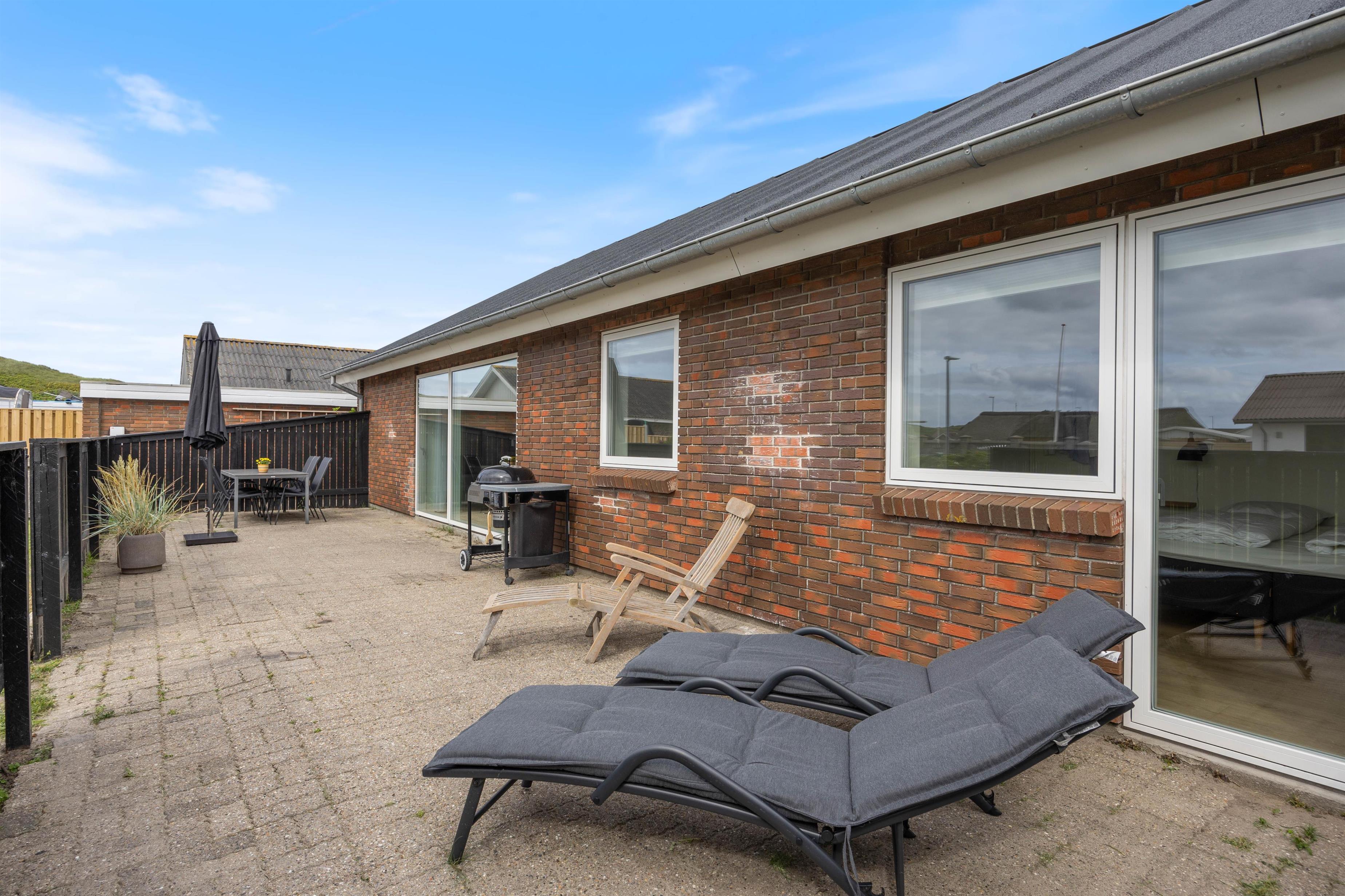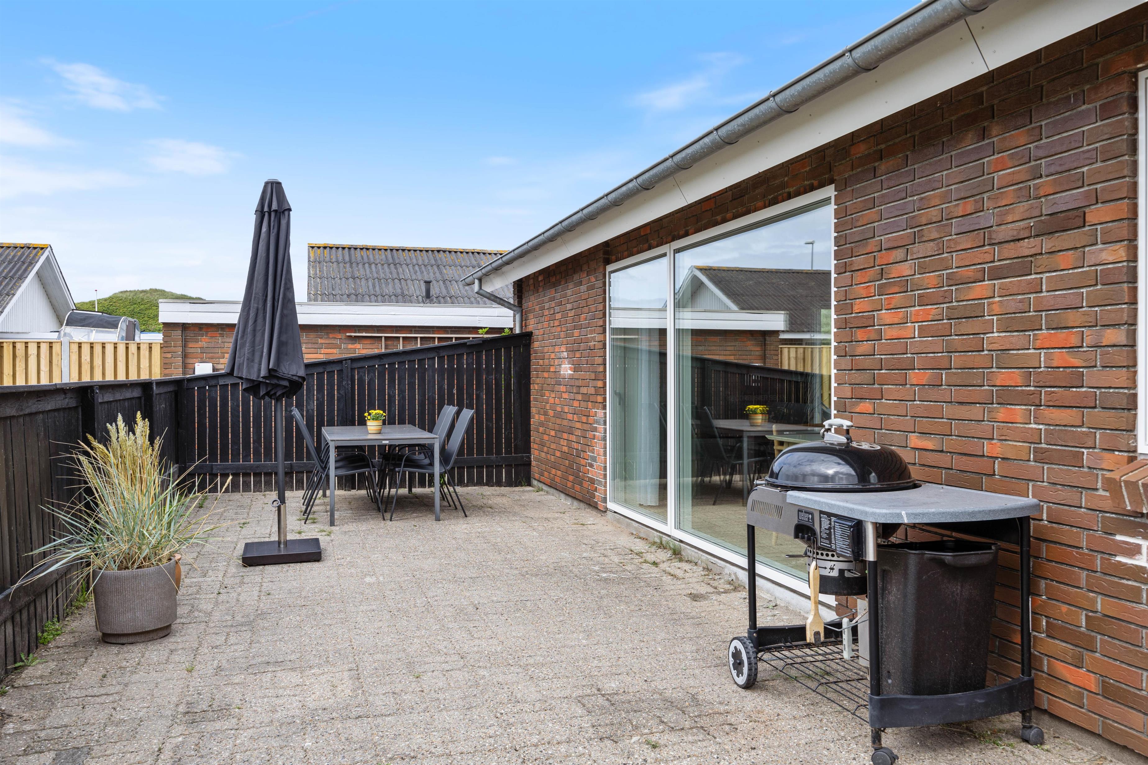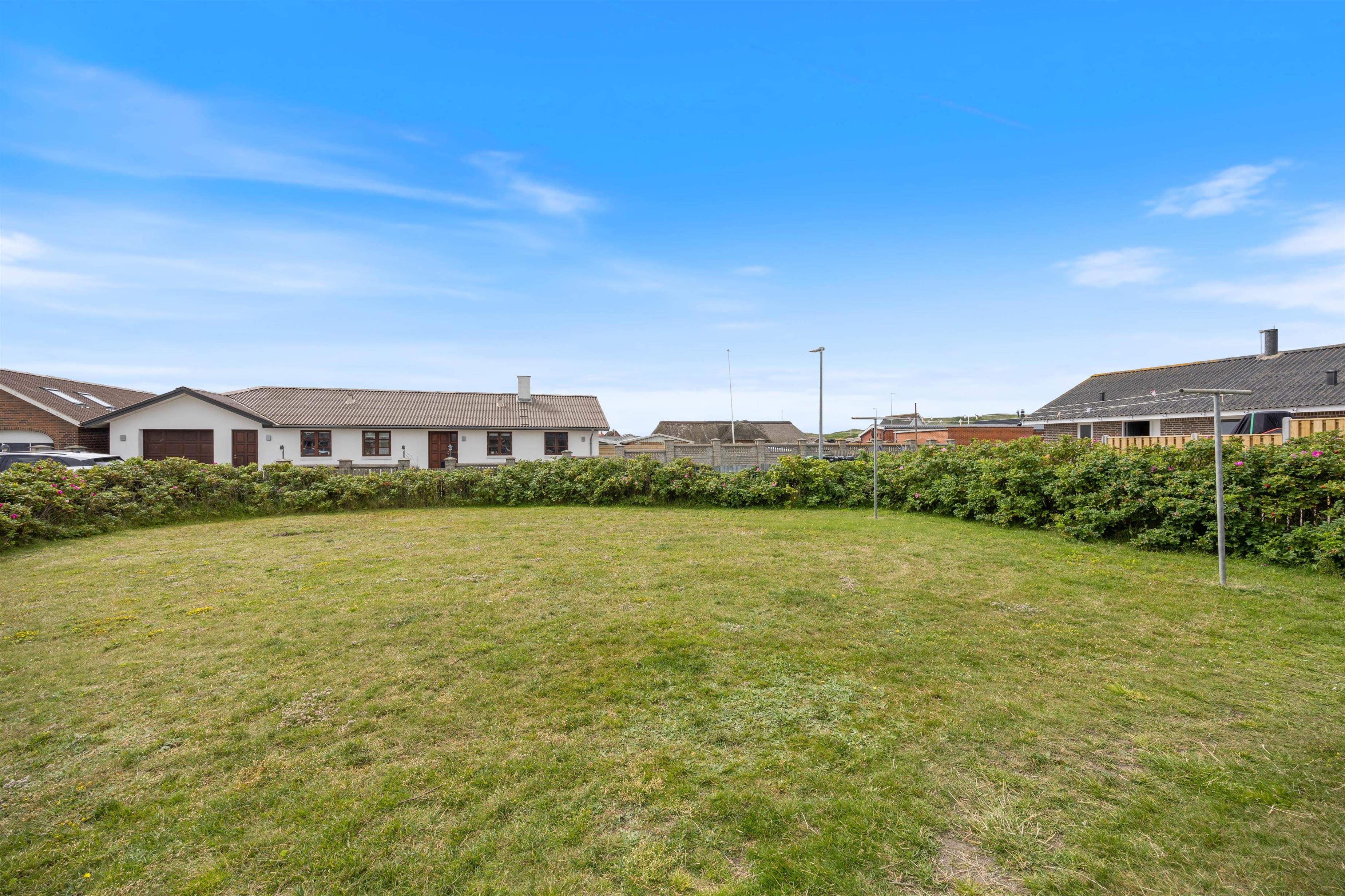 Feriehuset på Tornevej 6 ligger på en 732 m2 stor plænegrund og giver jer masser af plads til at slappe af på. Derefter kan med fordel tænde op i den store runde kuglegrill på den åbne og afskærmede terrasse, mens børnene leger og løber rundt i haven. Sæt jer blot godt til rette i havemøblerne og nyd en kølig drink, mens I nyder den friske Vesterhavsluft.