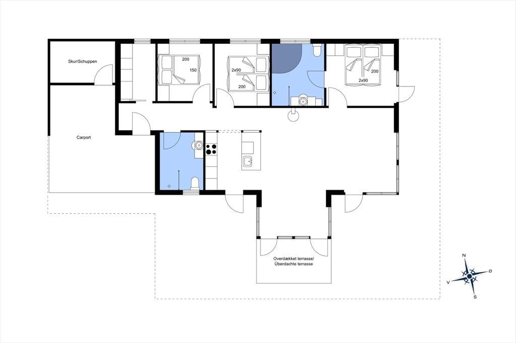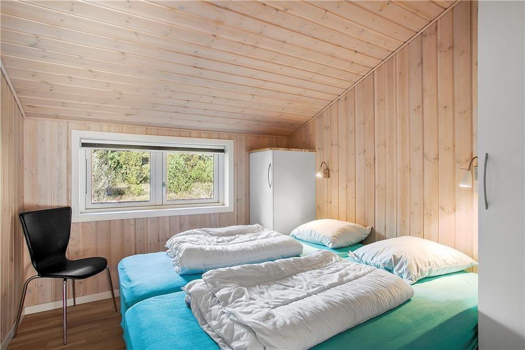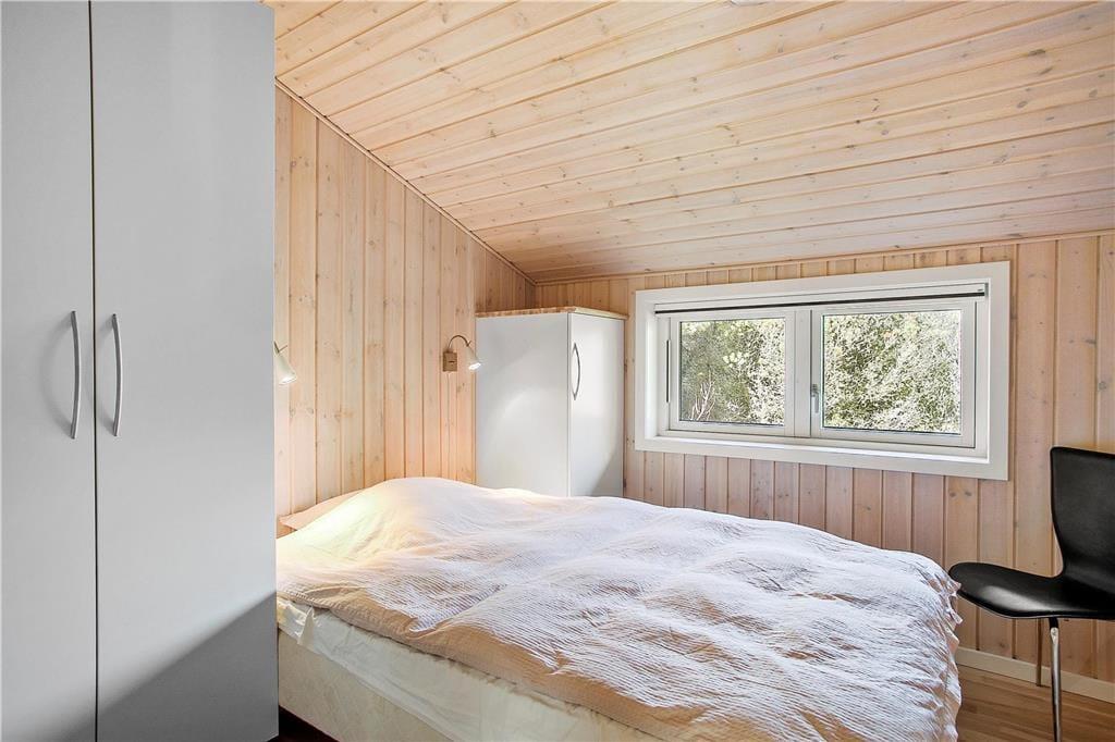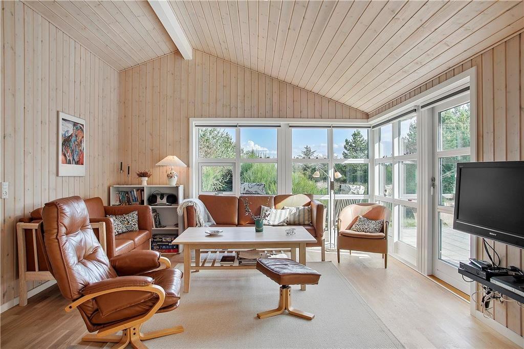 En stor, solbeskinnet og delvist overdækket terrasse er godt integreret, for der er nemlig intet mindre end fem terrassedøre i sommerhuset. Det er med andre ord særdeles nemt at smutte udenfor, når det gode sommervejr lægger op til grillmiddage, solbadning og leg i sandkassen og gyngestativet. Den 2.426 m2 store naturgrund smelter nærmest sammen med de flotte omgivelser, og her i det lyng- og fyrretræsklædte landskab vil udelivet foregå på fredelig og ugeneret vis.