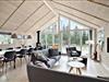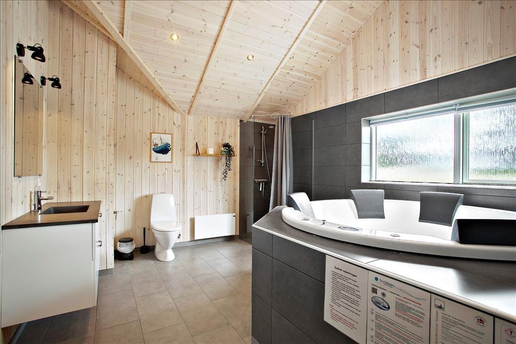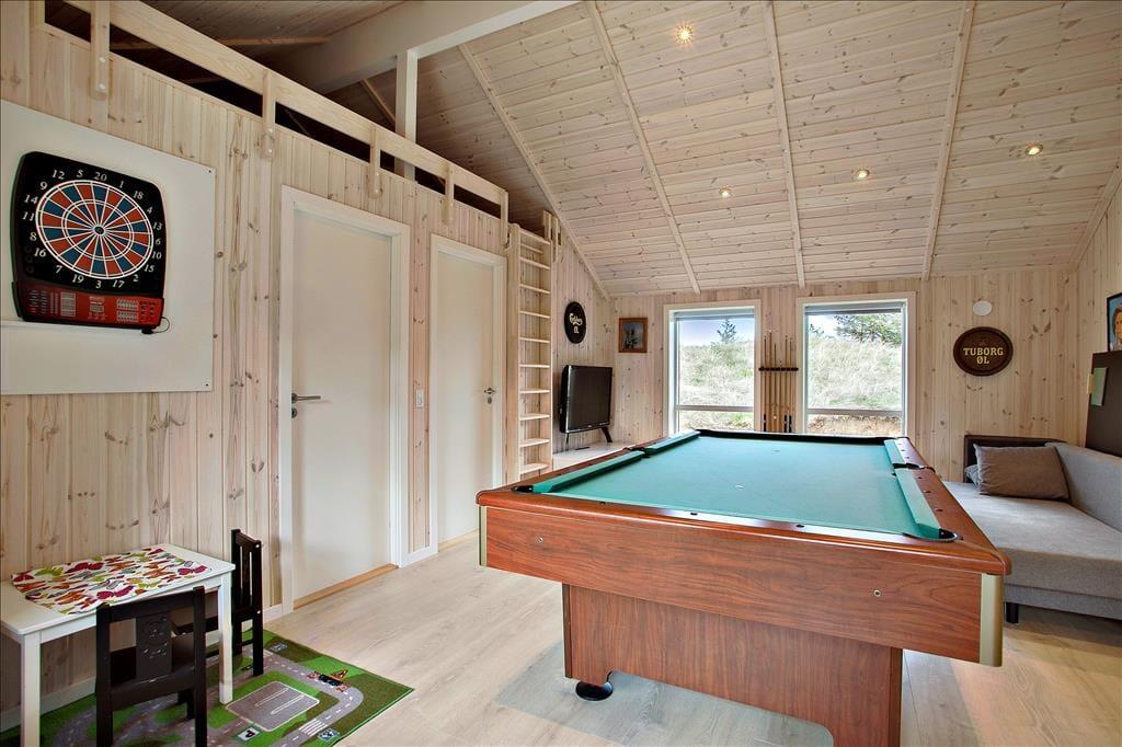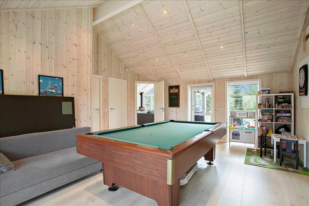 I kan se frem til at holde ferie i et hus, hvor alt bare spiller, og her er den enkle og komfortable indretning en fryd for øjet. En af de lækre detaljer, der får herlighedsværdien til at stige, er det flotte, runde spabad, der ligger sammen med en sauna på det største af husets to badeværelser. Brændeovnen, den åbne køkkenafdeling og det kæmpe vinduesparti i gavlen er noget af det, der gør det til en behagelig oplevelse at bruge tiden i stuen – når I altså ikke hygger jer i aktivitetsrummet med at spille pool, PS4, dart eller noget helt fjerde. Er det sengetid, kan I gå til ro på de fire soveværelser, og som supplement er der for øvrigt også en sofasofa i aktivitetsrummet, så huset i alt kan rumme 10 feriegæster.