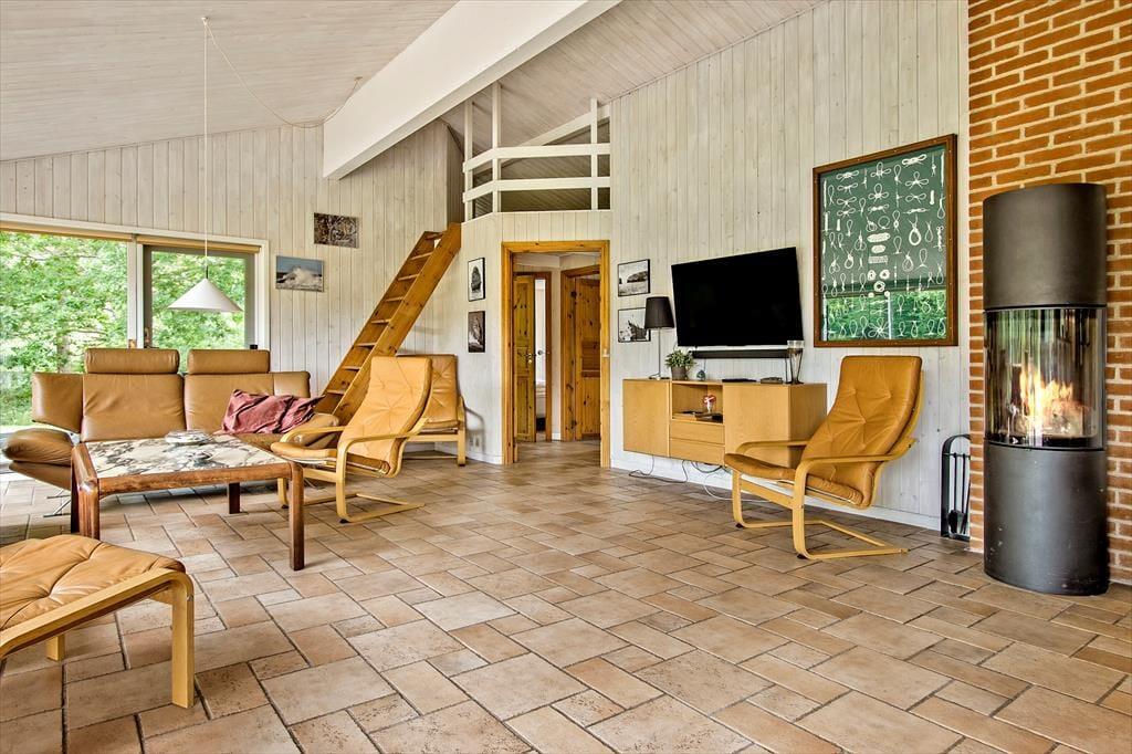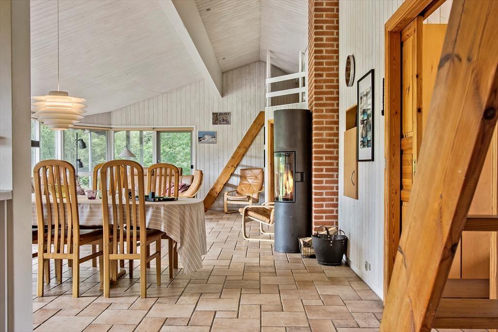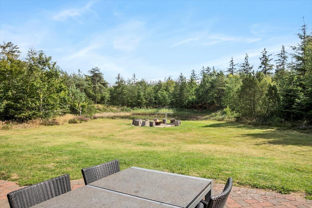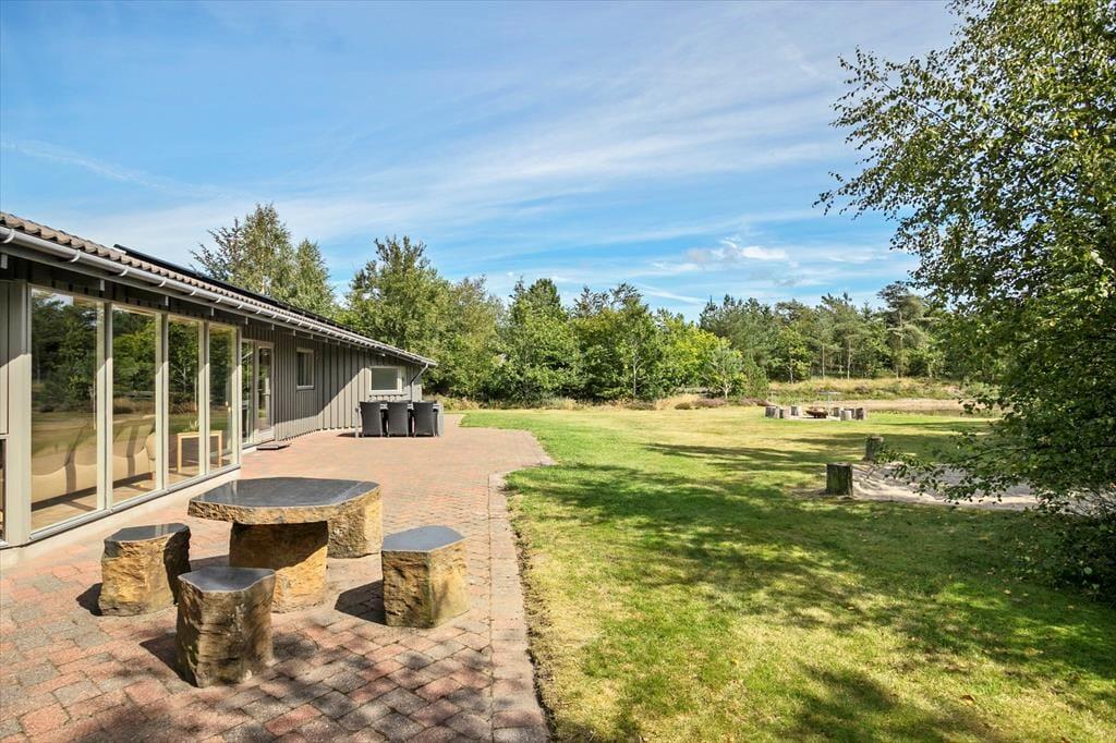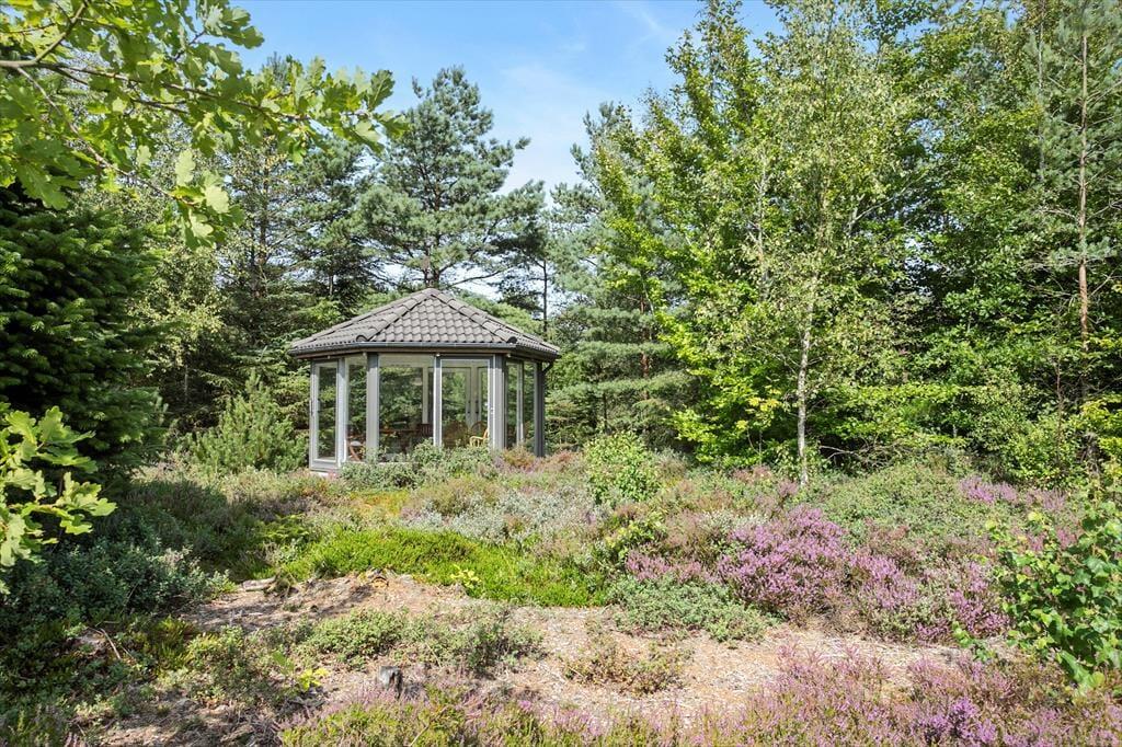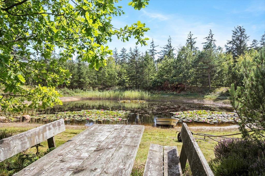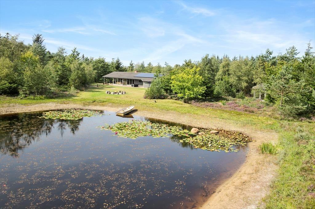 De udendørs rammer ved dette hus er helt uovertruffen! Der er rigtig god plads på terrassen der ligger med udsigt til den lille sø, der også findes på grunden. Der er fisk i søen og du er velkommen til at prøve at fange en, men fiskehejren fisker her også og står for størstedelen af fangsterne. Mellem sommerhuset og søen findes bålpladsen, hvor der er mulighed for at bage snobrød på en dejlig sommeraften. Der er små stisystemer der fører til petanquebanen og bag huset ligger en lille pavillon der på regnfulde dage stadig giver jer mulighed for at nyde udsigten over den fantastiske grund og natur.