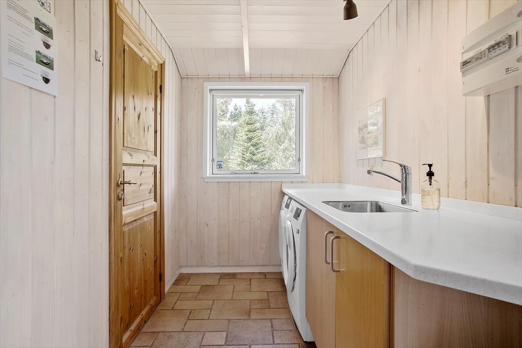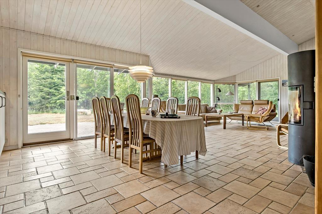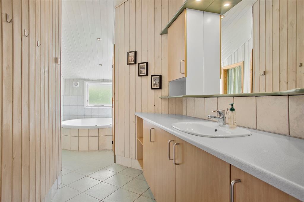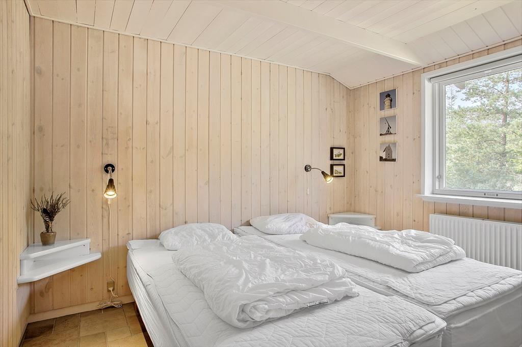 Dette hus er helt unikt, her er virkelig mulighed for at imødekomme alle under ferien. Huset er dejligt indrettet med 2 badeværelser, et i hver sin ende af huset. Der er ved begge badeværelser tilknyttet sovefaciliteter, så det er rigtig fint at være 2 familier afsted sammen. Midt i huset finder I det store og veludstyrede køkken, her er der mulighed for at slå sine folder samtidig med at du følger med i alt hvad der sker i stuen og ved det store spisebord. Stue og spisestue ligger midt i huset og er i forbindelse med alle andre værelser - det er husets naturlige samlingspunkt. Endvidere er der i huset lagt vægt på, at der skal være mulighed for rigtig hyggeligt samvær. Derfor er et af værelserne ved køkkenet indrettet som en lille hyggelig opholdsstue, hvor børnene kan sidde med kortspil, teenageren med sin computer og mor med en rigtig god bog. Der er plads til det hele. Bemærk at det er en sovesofa der er i dette rum, så der er mulighed for at skabe et ekstra soverum, hvis dette måtte ønskes. Der er skydedøre ind til rummet. Alle soverum er store og har god plads. Bemærk at 4 af sovepladserne er på hemse. Disse er oplagte til de yngste gæster og der er fin adgang via faste trapper med åbne trin op til dem. Huset råder over en stor spa, hvor der rigtig kan slappes af selv om badeværelsets andre faciliteter benyttes. Der er brændeovn til hygge på forårets kølige dage og skulle du undervejs på ferien får behov for at benytte internettet er dette naturligvis også muligt. Ved huset er der også tænkt på bilisten; der er mulighed for at oplade elbilen ved CEE kontakt med 16A.