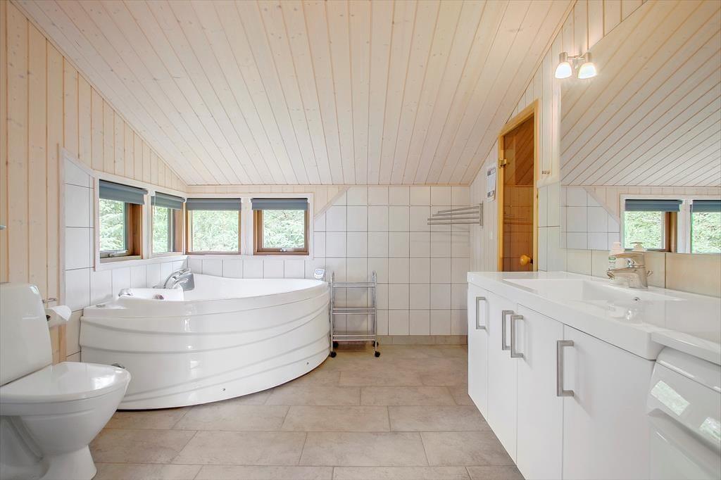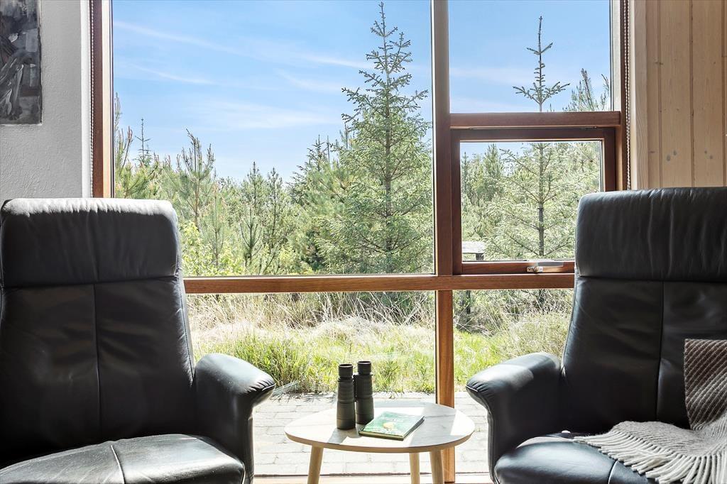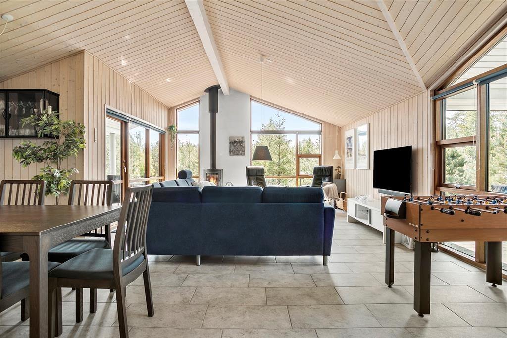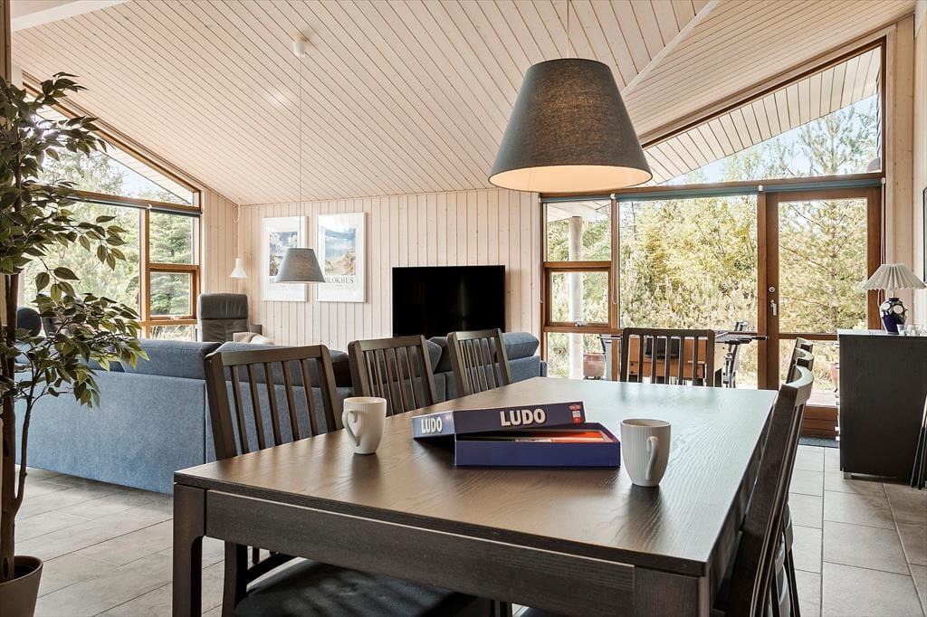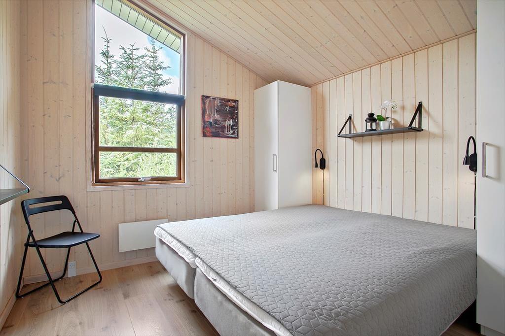 Sommerhuset er et lyst og velindrettet eksemplar fra 2011, der er blevet moderniseret i 2019. Hele 126 m2 har I at brede jer på inden døre, og med fire soveværelser og to badeværelser er planløsningen perfekt afstemt til otte personer. Husets sociale samlingspunkt er stuen, som er et stort og vinkelformet opholdsrum med åbent køkken, brændeovn, loft til kip og store vinduer, der inviterer dagslyset indenfor og giver udsigt til naturgrunden. Huset er generelt godt udstyret og der er bl.a. både almindelig- og Nespresso kaffemaskine til rådighed. Desuden hårtørrer, strygejern/bræt, tørrestativ, diverse spil, også er det værd at bemærke, at der i sengelamperne er indbygget USB ladestik. Har I ikke noget særligt på programmet, er det skønt at kunne slappe af i sofaen, mens I kigger ud på de krogede fyrretræer – eller med en god film på fladskærmen, der har kabel-tv, flere tilgængelige streamingtjenester og Chromecast tilsluttet. Skal der virkelig kobles af, kan I også nyde et spabad og en tur i saunaen på det største af husets badeværelser.