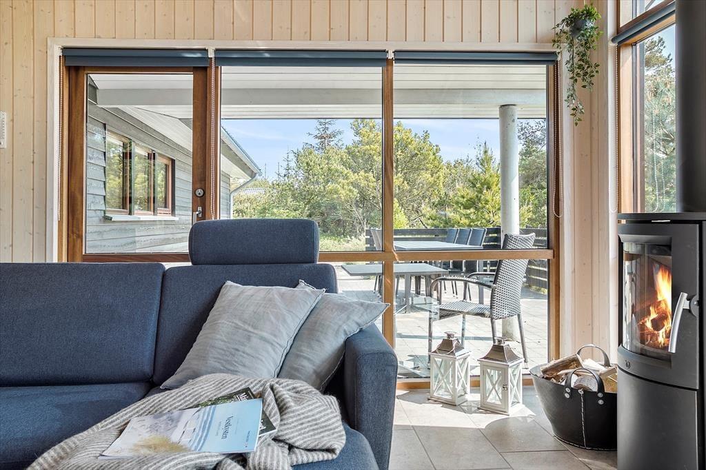 Solskinsfrokost på terrassen, hyggestunder nær brændeovnen og afslapning i spabadet og saunaen – alt det og meget mere kan I se frem til, når I holder ferie i dette dejlige sommerhus ved Thorup Strand.