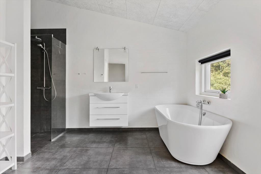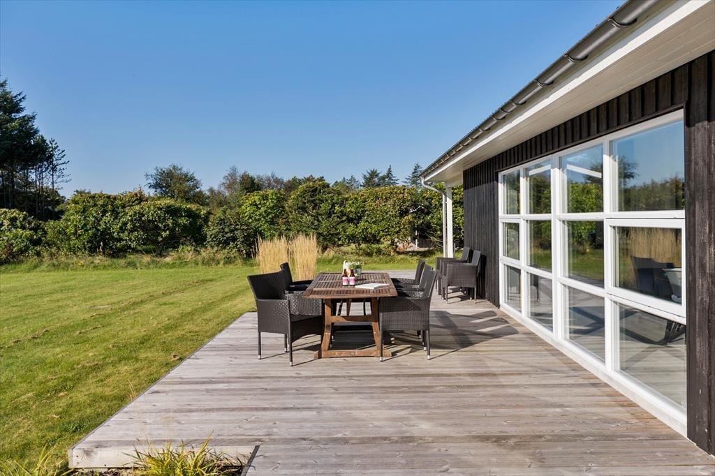En af de absolutte perler ved dette sommerhus er den skønne terrasse med wellnessområde. Her kan du forkæle dig selv med en tur i vildmarksbadet eller nyde varmen fra den udendørs sauna – uanset om det er sommer eller vinter. Efter en lang gåtur til stranden eller en tur i klitterne er dette det ideelle sted at slappe af og genoplade batterierne. Den store terrasse indbyder også til måltider i det fri, og med havemøbler, liggestole og grill er der alle muligheder for hyggelige grillaftener i de lyse sommernætter. Haven er omkranset af smuk natur, og børnene kan lege trygt på grunden, mens de voksne nyder udsigten eller slapper af med en god bog.