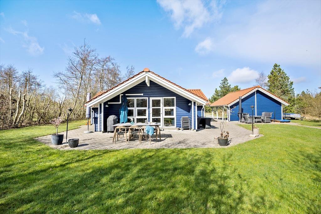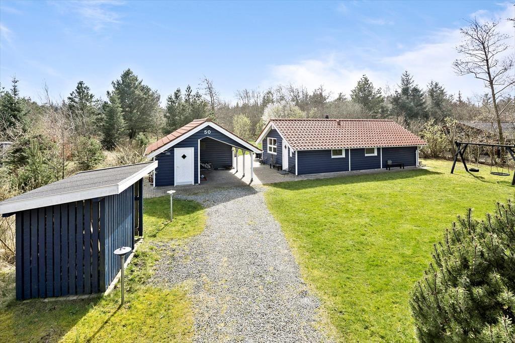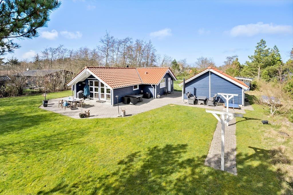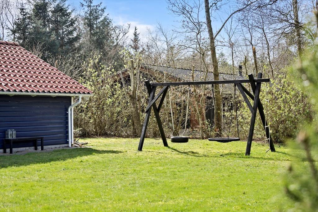 Uanset om der knopper på træerne, eller om bladene for længst er sprunget ud i fuldt flor, kan du få glæde af sommerhusets store naturgrund. Om sommeren kan en stor del af ferielivet udleves på den dejlige terrasse, der breder sig rundt om huset, og takket være havemøblerne, liggestolene og parasollen kan du se frem til at få det særdeles komfortabelt. Der er selvfølgelig også en grill til rådighed, så aftensmaden kan blive tilberedt ude i det fri. Selvom I måske holder ferie udenfor højsæsonen, indbyder græsplænen til leg og boldspil for både børn, voksne og selv familiens hund, og der er også gynger, som vil være et børnevenligt hit på stort set alle årstider.