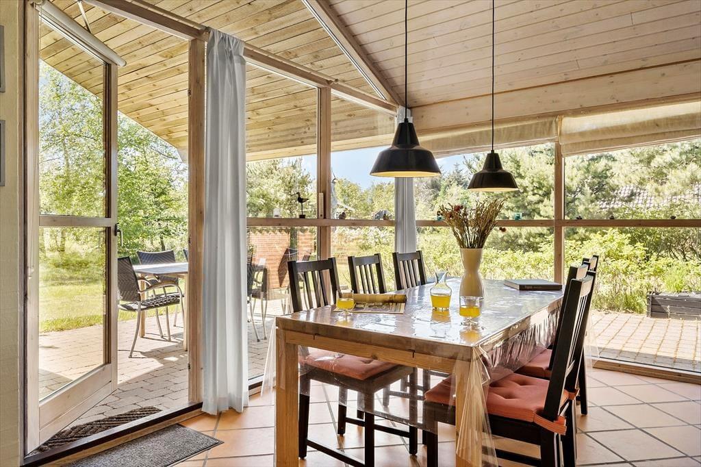 Vejen ender blindt tæt på huset, så I har ro og fred omkring jer på ferieadressen, og knap 200 meter væk fører en sti ned mod stranden. Gåturen til Vesterhavet tager under ti minutter, og I har også nem adgang til Thorup Strands kystlandingsplads, hvor I kan se på de flotte fiskerbåde og lade jer friste af alle de havfriske lækkerier hos den lokale fiskehandler. En skovlegeplads ligger tæt på sommerhuset, og I har rig mulighed for at tage på skovtur til fods og på cykel i Vester Thorup Klitplantage.