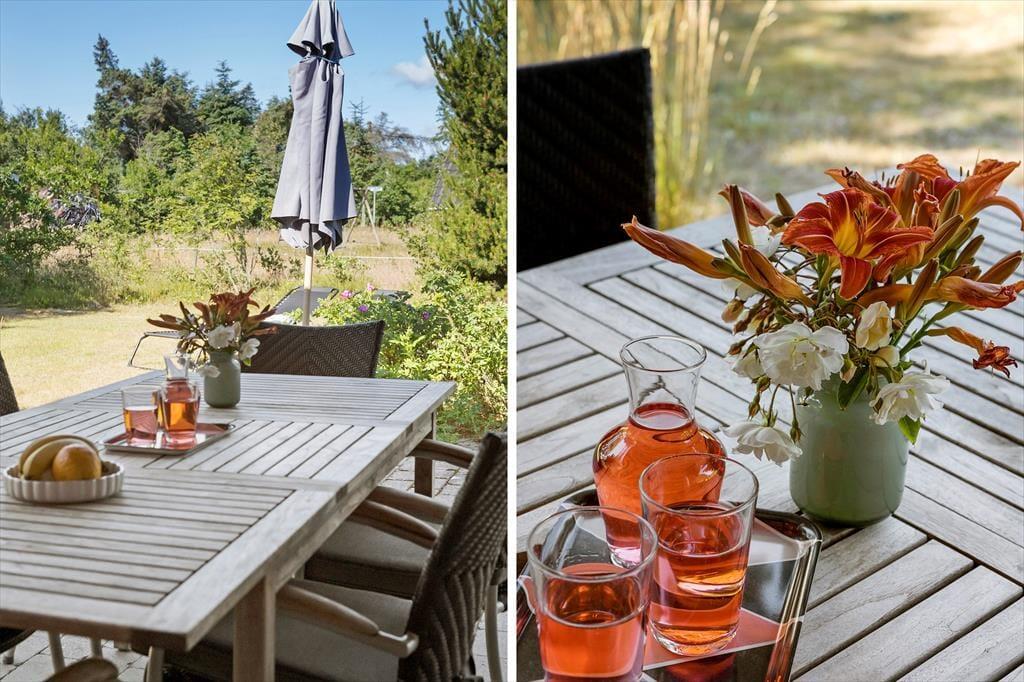 Når sommeren er over Thorup Strand, er det oplagt at tilbringe en stor del af tiden ude i det fri. I kan selvfølgelig gå den korte tur ned til vandet for at bade eller lege på stranden – men det er også skønt at blive hjemme på den 1307 m2 store grund, der byder på en god terrasse, græsplæne og køn randbeplantning. Terrassen er orienteret mod sydvest, så den er solrig en stor del af dagen, og der er også et overdækket område, der passer perfekt til aftenens hyggestunder.