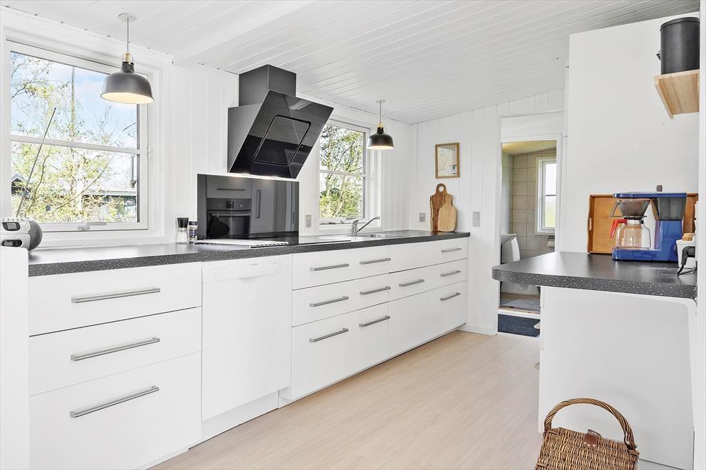 Sommerhuset er oprindeligt opført i 1971 og har i 2024 været igennem en god renovering, så det i dag fremstår lyst, imødekommende og klar til at tage imod en masse forventningsfulde gæster. Langs entreen ligger badeværelset og de tre værelser med hhv. dobbeltsenge og en køjeseng. Der er skydedør til køkkenet og opholdsrummet, så har man mindre børn med, som skal puttes tidligt, har man muligheden for at gøre det i fred og ro. Køkkenet og opholdsrummet hænger sammen i ét stort rum; her mødes man til madlavning, spisning, kort- og ludospil eller bare almindelig afslapning foran tv’et. Sommerhuset har desuden også trådløst internet, så medbring gerne tablets eller pc, så er underholdningen også sikret på en gråvejrsdag. Sommerhuset har en del moderne udstyr, som både gør opholdet nemt og komfortabelt; opvaskemaskine, vaskemaskine, varmepumpe og ekstra seng og stol til familiens yngste. Er man på udkig efter et godt beliggende, funktionelt og hyggeligt sommerhus i Nordjylland, er disse rammer helt perfekte.