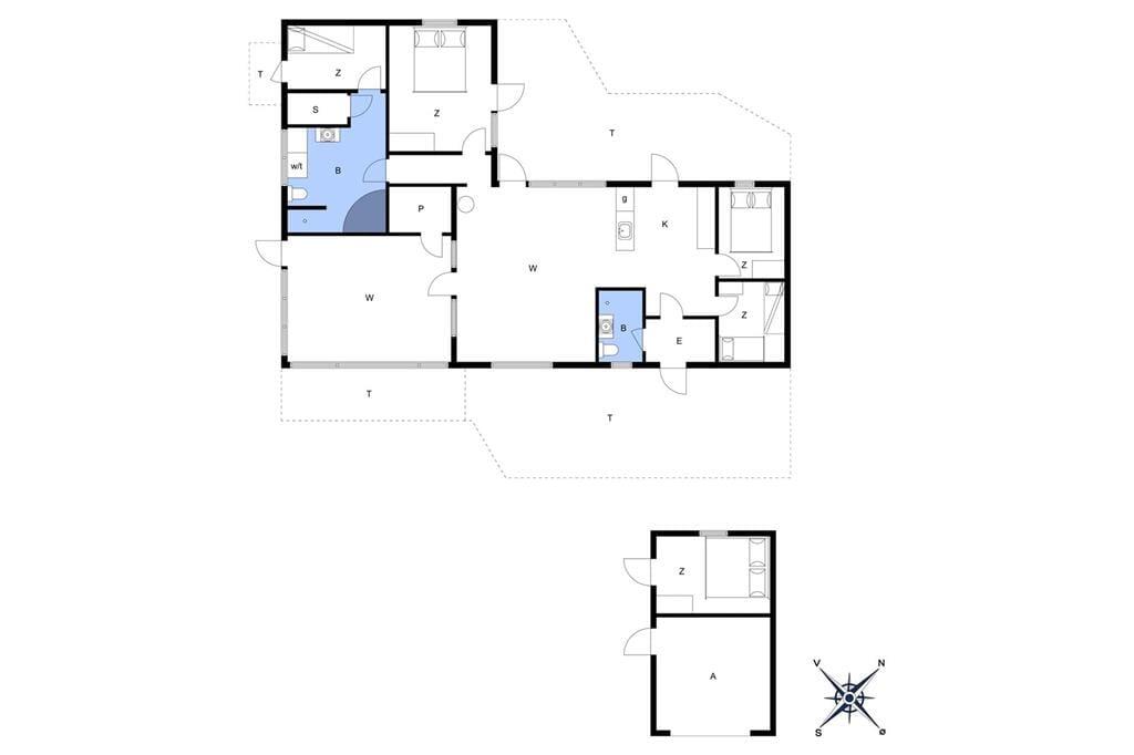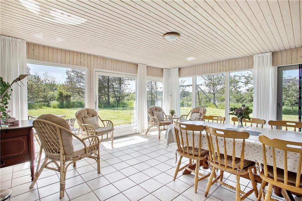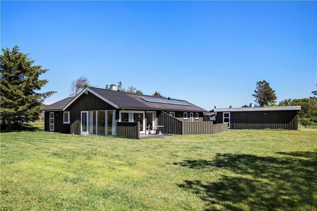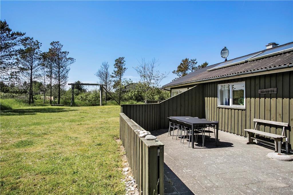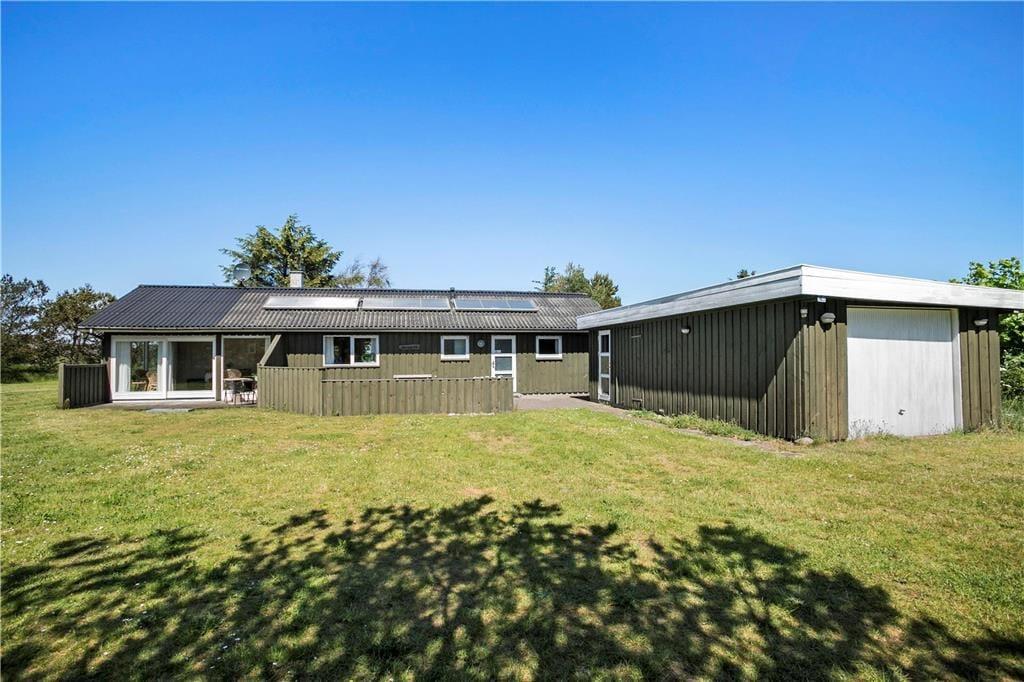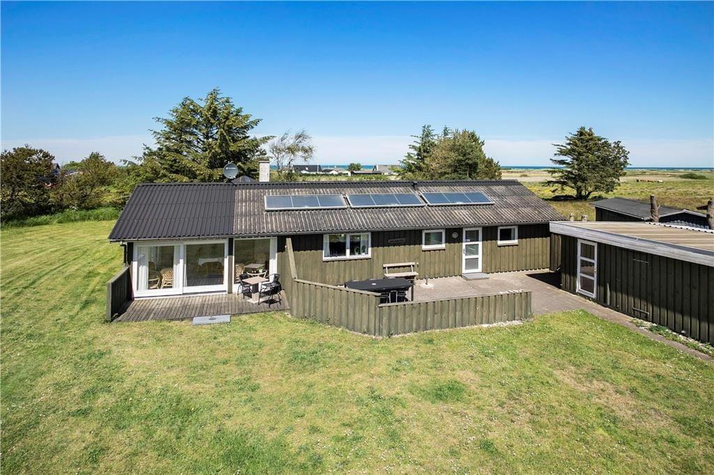 Sommerhuset er omgivet af 3 skønne terrasser, som giver mulighed for altid at finde læ og sol. Terrassen ved indgangen er aflukket. Dette kombineret med den betagende udsigt over landskabet med kig til havet, den store naturgrund med græsplæne samt masser af plads til leg og spil, giver virkelig mulighed for at alle i familien er sikker på en dejlig ferie ved Vesterhavet.