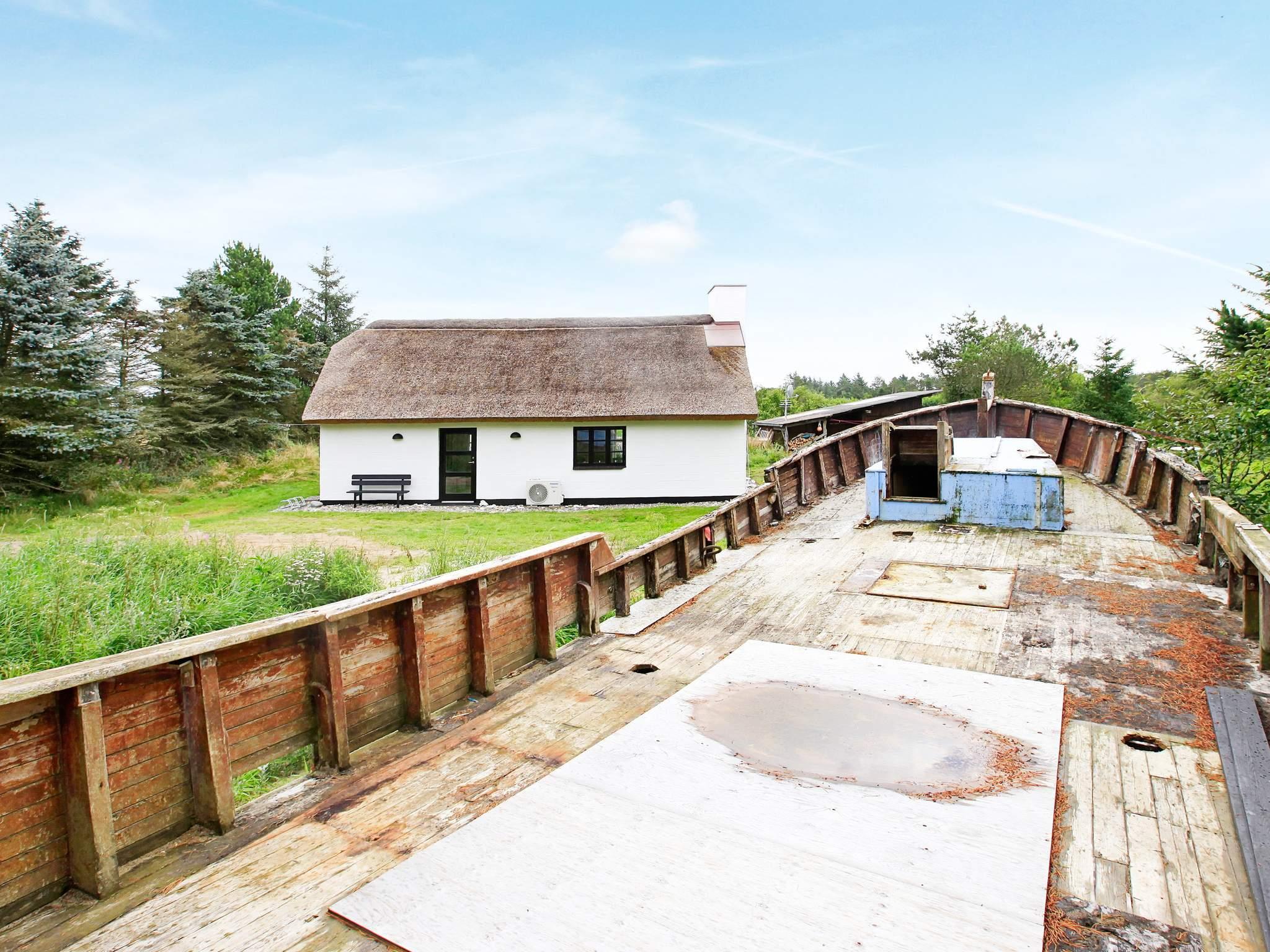 Stråtækt idyl i de naturskønne omgivelser ved den kendte Thorup Strand, totalrenoveret i 2015. I stueplan er der opholdsstue i åben forbindelse med køkkenet, et soverum, badeværelse med gulvvarme, spabad og adgang til sauna. På 1. sal er to separate soverum adskilt ved væg men åbne ud til reposen. Indretningen er lys og moderne. Der er lagt stor vægt på lysindfaldet, så opholdsafdelingen fremtræder meget lys med møblement i moderne design. Med de fritlagte bjælker tilføres huset desuden noget af den oprindelige charme. Mod øst, syd og vest er der åben terrasse på ca. 40 m², der er direkte adgang hertil fra køkkenet. Grunden er en stor naturgrund tilsået med græs og omgivet af beplantning, så der altid er læ for vestenvinden. Til børnene er der opsat fodboldmål og gynger. Ca. 350 m til strand og hav. Badevandet er i så høj kvalitet, at det år efter år honoreres med EUs kvalitetsmærke 'Blå Flag'. Fra Thorup drives der stadig kystfiskeri direkte fra stranden, så der er fine muligheder for at købe friskfanget fisk.