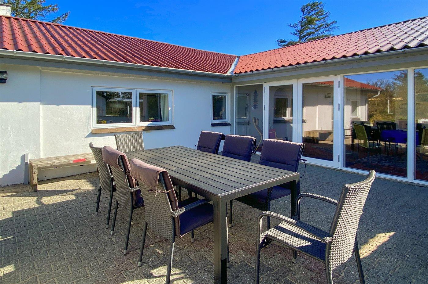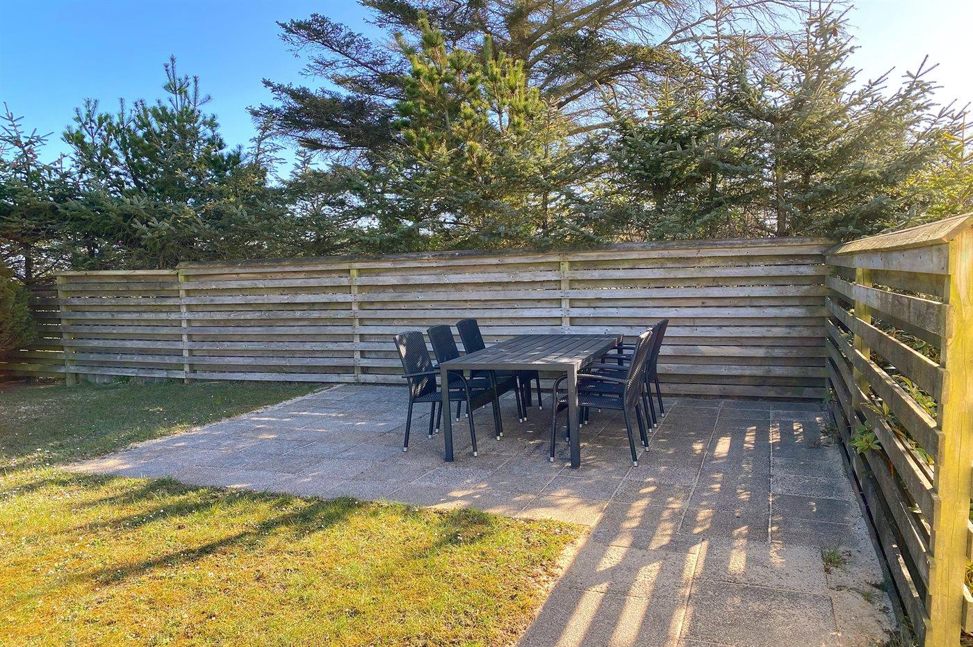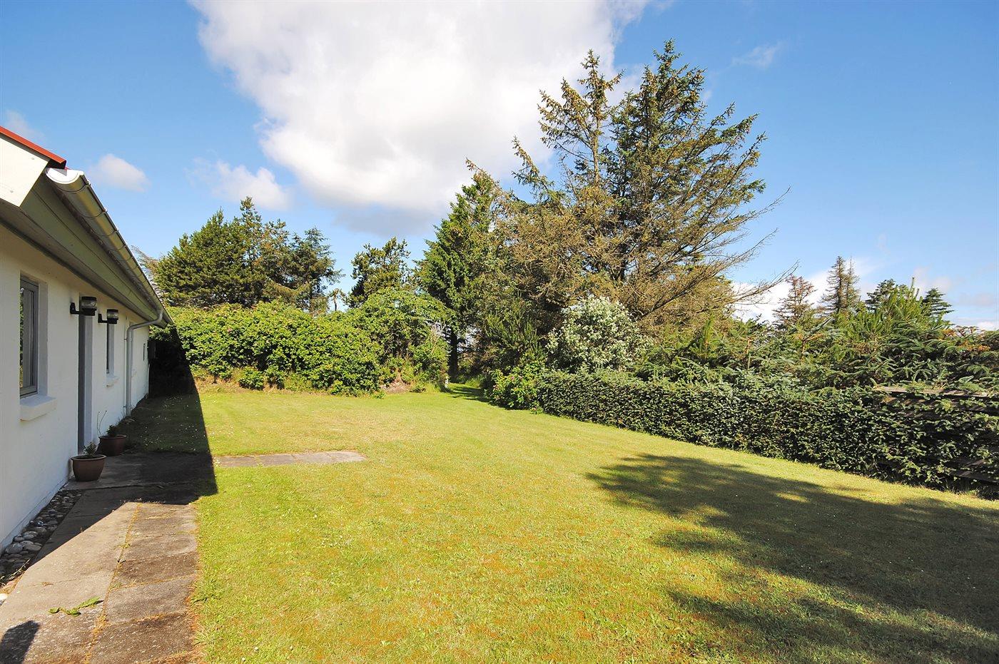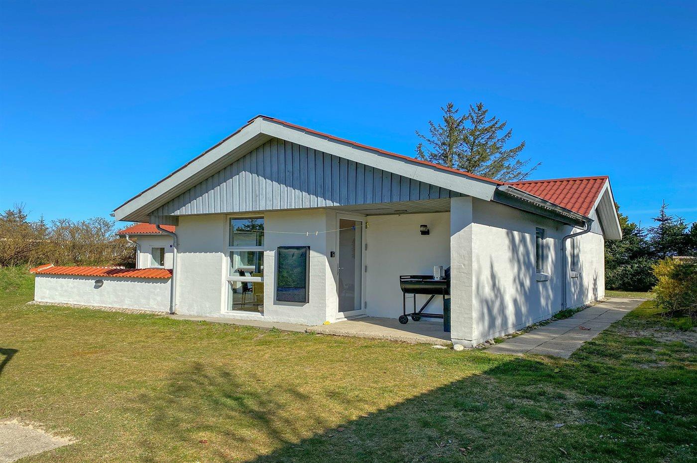 Dette velbeliggende sommerhus i sten finder I på en stor naturgrund nær Vesterhavet. Til huset hører et stort, åbent terrasseareal med diverse havemøbler.