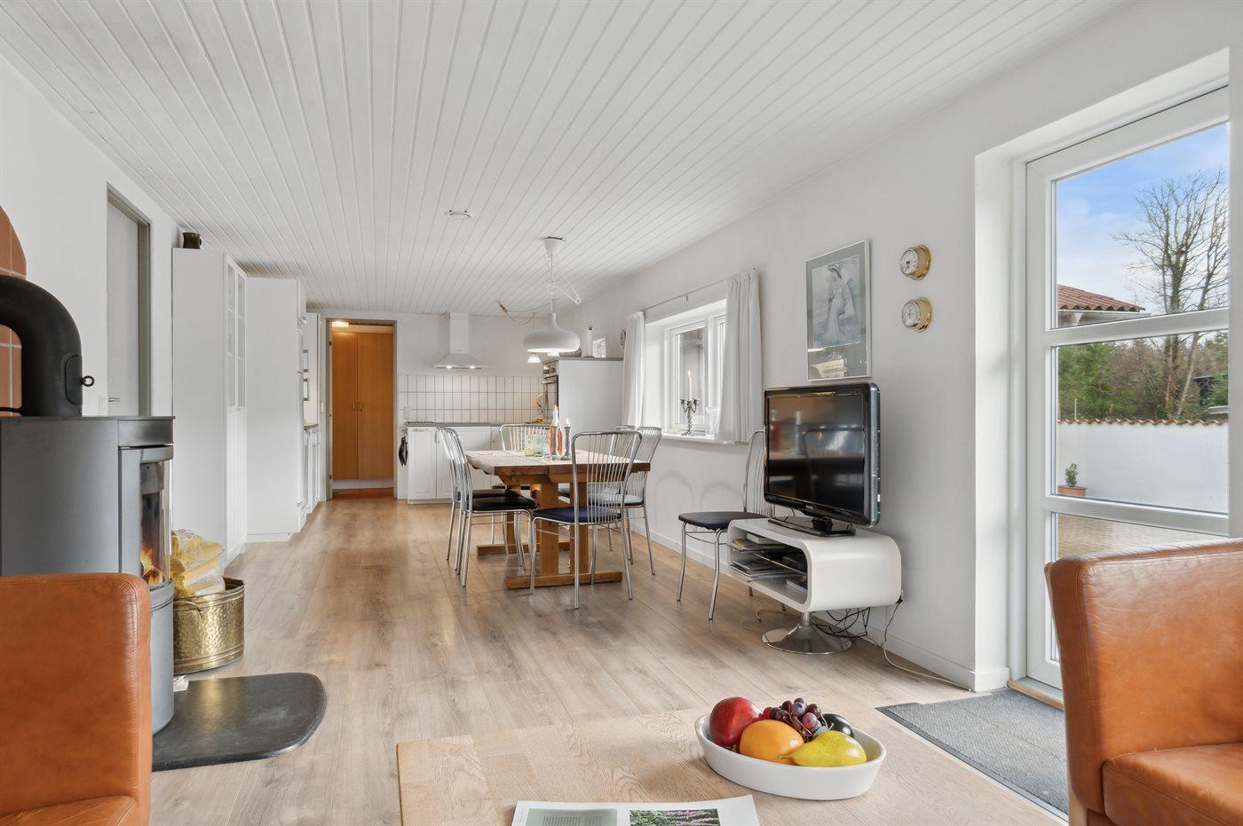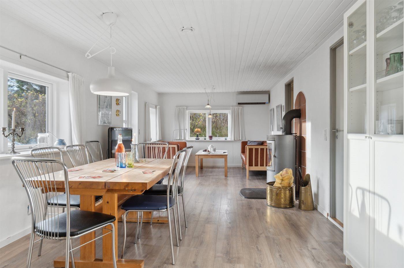 Huset er indrettet og med bl.a. barneseng, vaskemaskine, tørretumbler, opvaskemaskine, fryser, mikrobølgeovn, stereoanlæg, TV, video og gratis, trådløs internetforbindelse. I den velmøblerede opholdsstue er der brændeovn. Sandkasse på grunden.