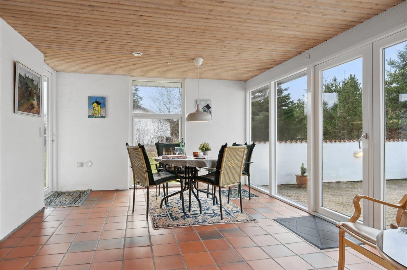 Gulvene er dels tæppebelagte, dels belagt med klinker. Væggene er hvidmalede, og lofterne er i ludbehandlet træ. Badeværelse med gulvvarme og bruseniche.