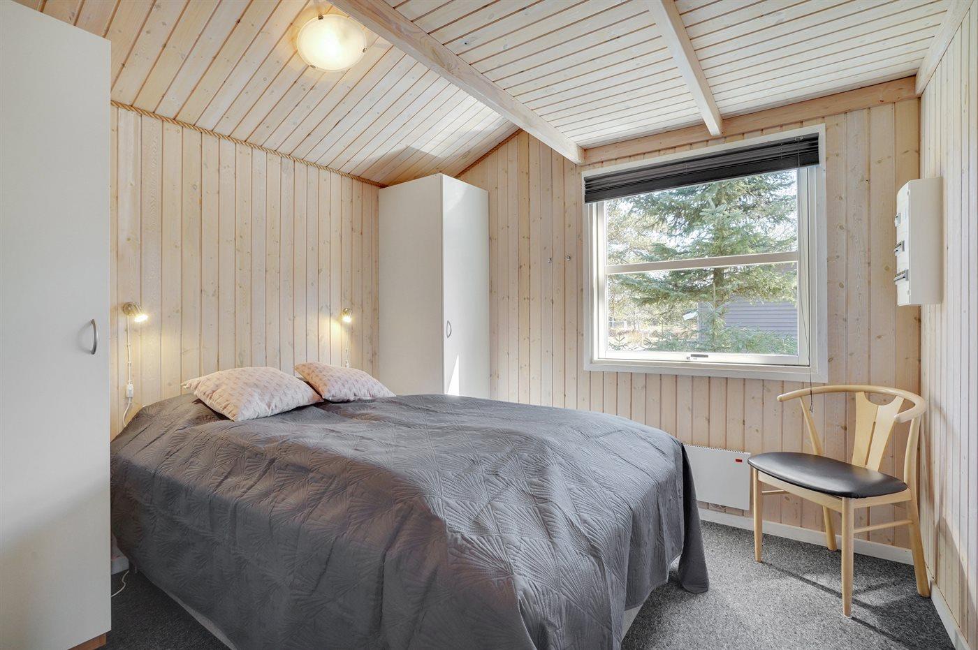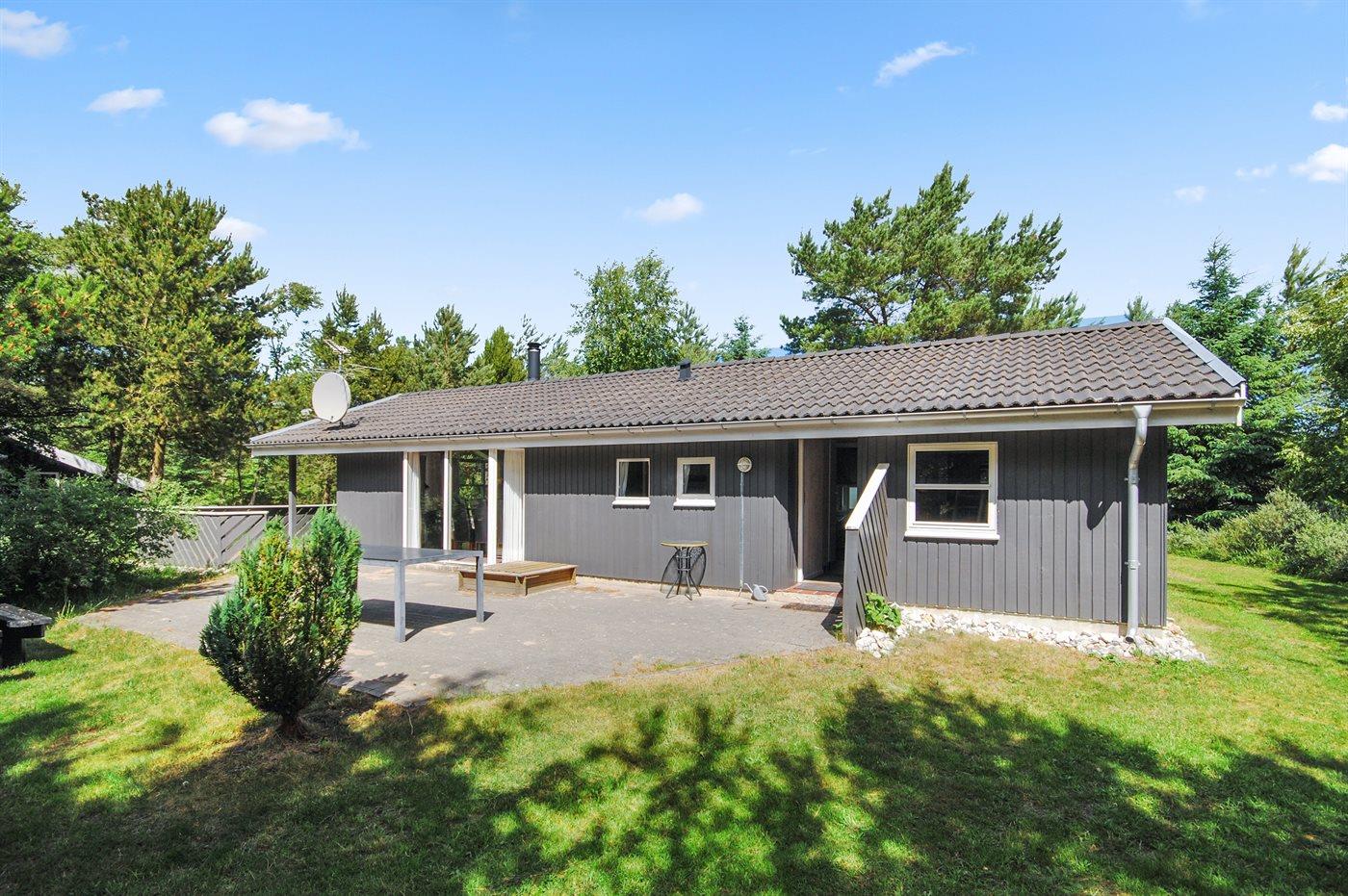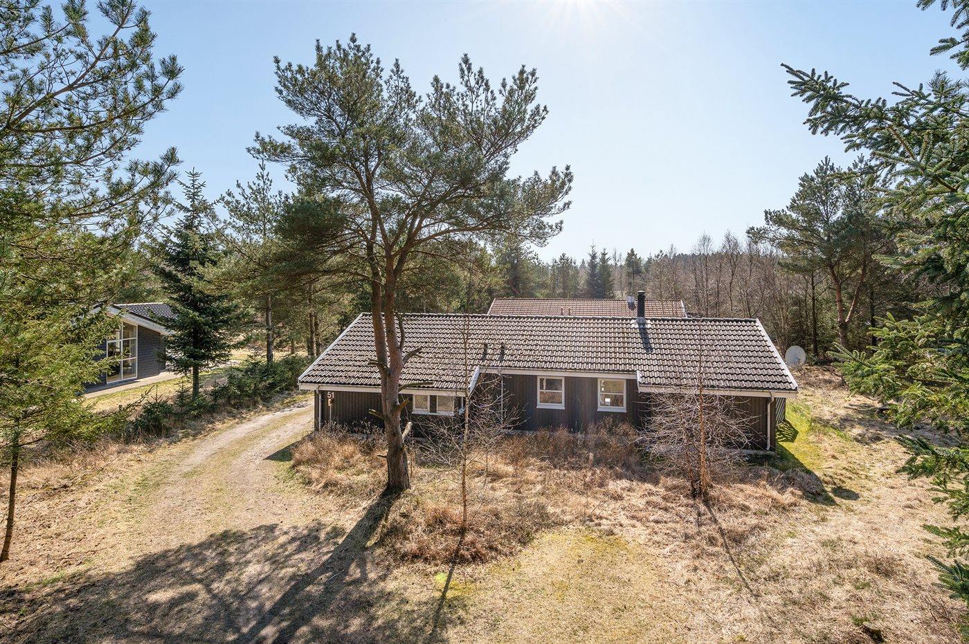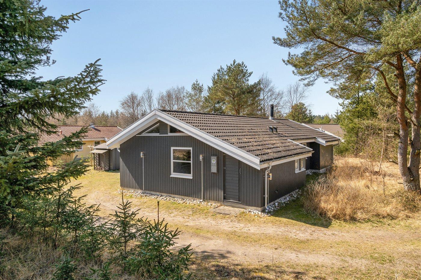 Et virkelig dejligt, veludstyret sommerhus, bygget i træ 2000 og løbende vedligeholdt. Åben såvel som overdækket terrasse med pæne havemøbler. Indvendigt er vægge og lofter beklædt med lyst træ, trægulv i stue og tæpper på værelser. 2 pæne badeværelser med bruseniche og gulvvarme; det ene har ligeledes lækker 2-pers. spa og adgang til sauna. Køkkenet er i åben forbindelse med stuen og indeholder bl.a. komfur med keramiske kogeplader, varmluftovn, fryser, mikrobølgeovn og opvaskemaskine. Dejlig, stor stue med bl. a. brændeovn, TV med parabol (digital), video, DVD-afspiller og stereoanlæg med CD-afspiller. Gratis ADSL-internetforbindelse (egen computer skal medbringes). Hems med TV til spil. Huset er indrettet med 4 soveværelser: 2 med dobbeltseng og 2 med hver 2 enkeltsenge. Desuden findes der 2 sovepladser på madrasser på husets hems. Af yderligere udstyr kan vaskemaskine, tørretumbler og 2 ekstra TV nævnes. Til de mindste feriegæster er der gynge, sandkasse, barneseng og høj barnestol til rådighed. Huset fremstår som et særdeles lækkert sommerhus for såvel 1 som 2 familier, der ønsker en ferie i et naturskønt område med mulighed for mange spændende ture i den storslåede natur enten i skovområdet eller ved havet, hvor man om aftenen kan se fiskerne trække deres både på land. Der er særdeles gode bade- og fiskemuligheder i gåafstand fra huset. I den nærliggende by Fjerritslev er der masser af aktivitetsmuligheder, bl. a. svømmehal, bowling eller shopping.