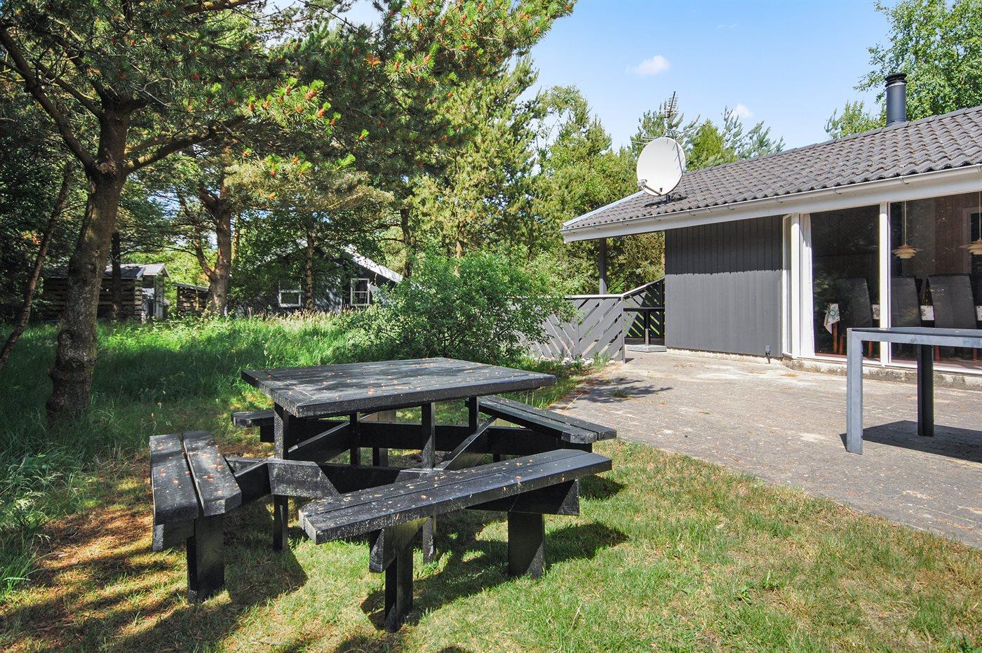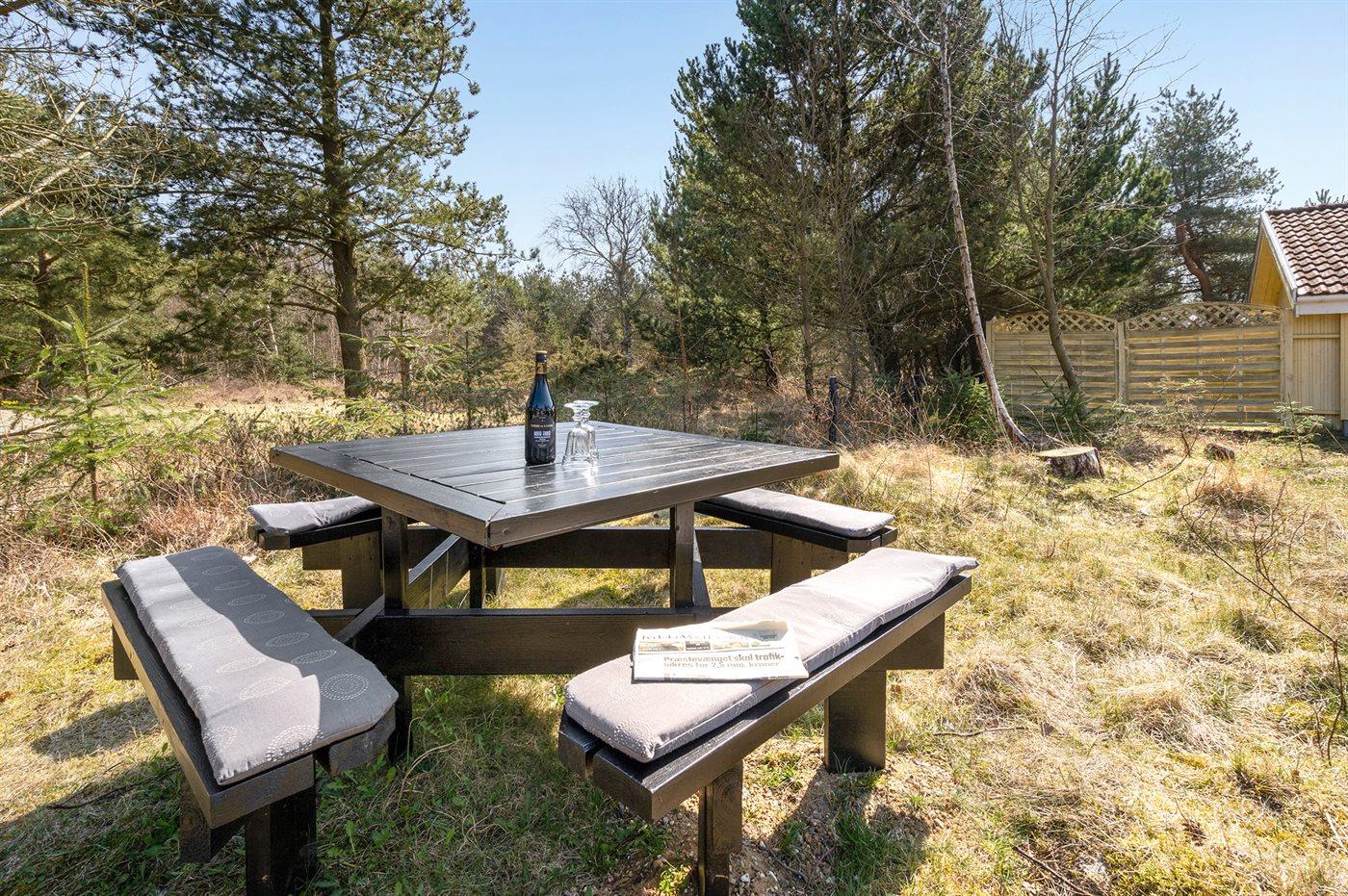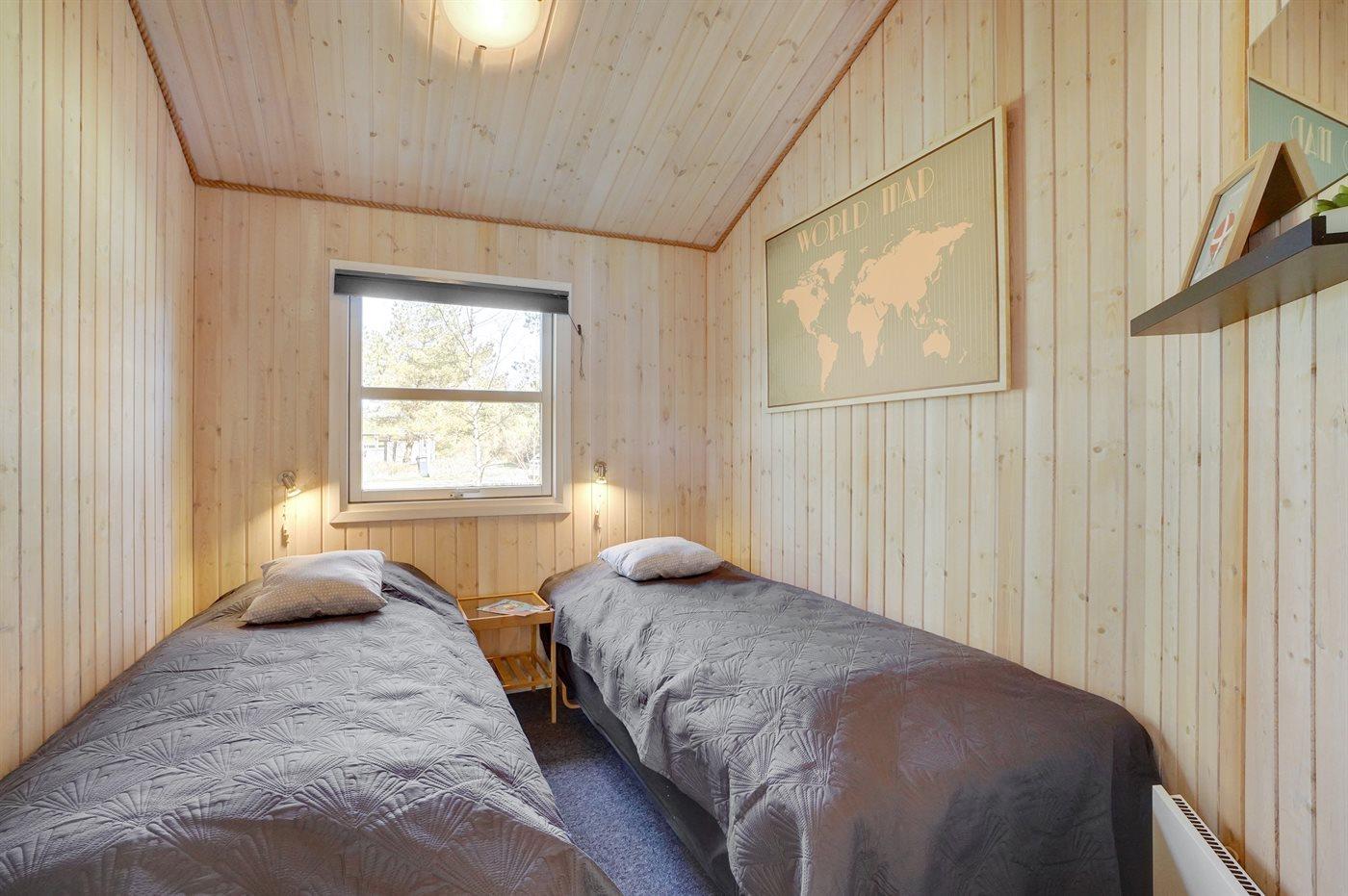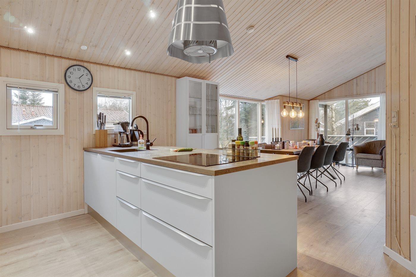 Et virkelig dejligt, veludstyret sommerhus, bygget i træ 2000 og løbende vedligeholdt. Åben såvel som overdækket terrasse med pæne havemøbler. Indvendigt er vægge og lofter beklædt med lyst træ, trægulv i stue og tæpper på værelser. 2 pæne badeværelser med bruseniche og gulvvarme; det ene har ligeledes lækker 2-pers. spa og adgang til sauna. Køkkenet er i åben forbindelse med stuen og indeholder bl.a. komfur med keramiske kogeplader, varmluftovn, fryser, mikrobølgeovn og opvaskemaskine. Dejlig, stor stue med bl. a. brændeovn, TV med parabol (digital), video, DVD-afspiller og stereoanlæg med CD-afspiller. Gratis ADSL-internetforbindelse (egen computer skal medbringes). Hems med TV til spil. Huset er indrettet med 4 soveværelser: 2 med dobbeltseng og 2 med hver 2 enkeltsenge. Desuden findes der 2 sovepladser på madrasser på husets hems. Af yderligere udstyr kan vaskemaskine, tørretumbler og 2 ekstra TV nævnes. Til de mindste feriegæster er der gynge, sandkasse, barneseng og høj barnestol til rådighed. Huset fremstår som et særdeles lækkert sommerhus for såvel 1 som 2 familier, der ønsker en ferie i et naturskønt område med mulighed for mange spændende ture i den storslåede natur enten i skovområdet eller ved havet, hvor man om aftenen kan se fiskerne trække deres både på land. Der er særdeles gode bade- og fiskemuligheder i gåafstand fra huset. I den nærliggende by Fjerritslev er der masser af aktivitetsmuligheder, bl. a. svømmehal, bowling eller shopping.