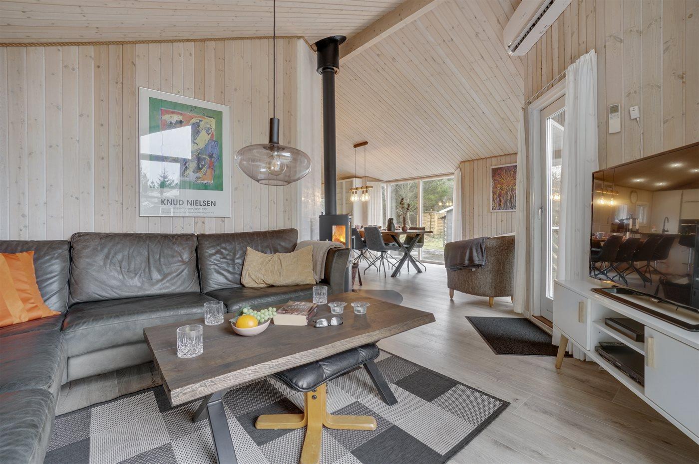 Veludstyret træsommerhus med spa, sauna og stor terrasse nær havet i Thorup Strand.