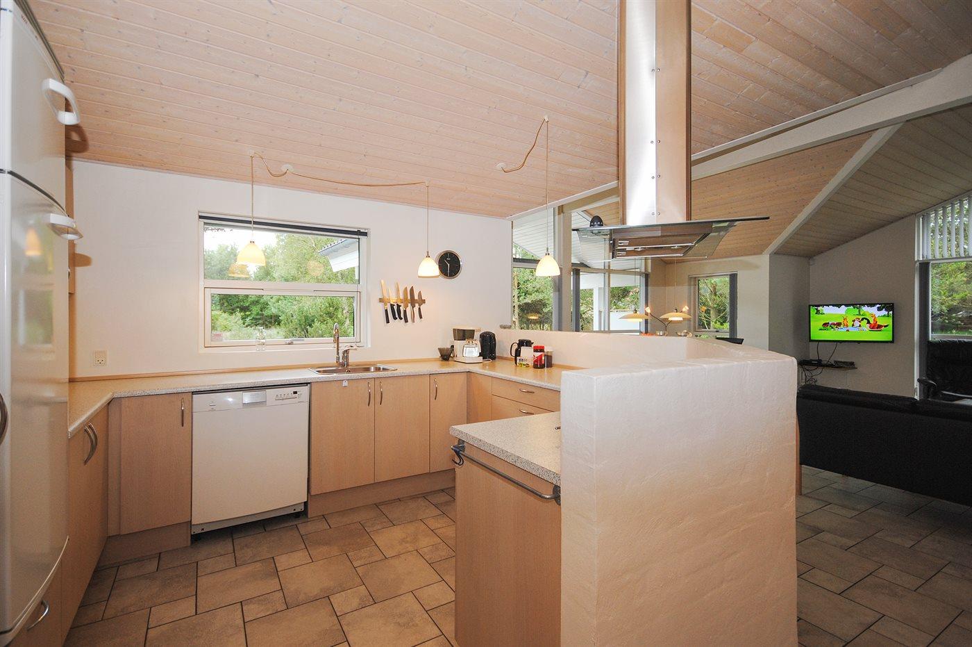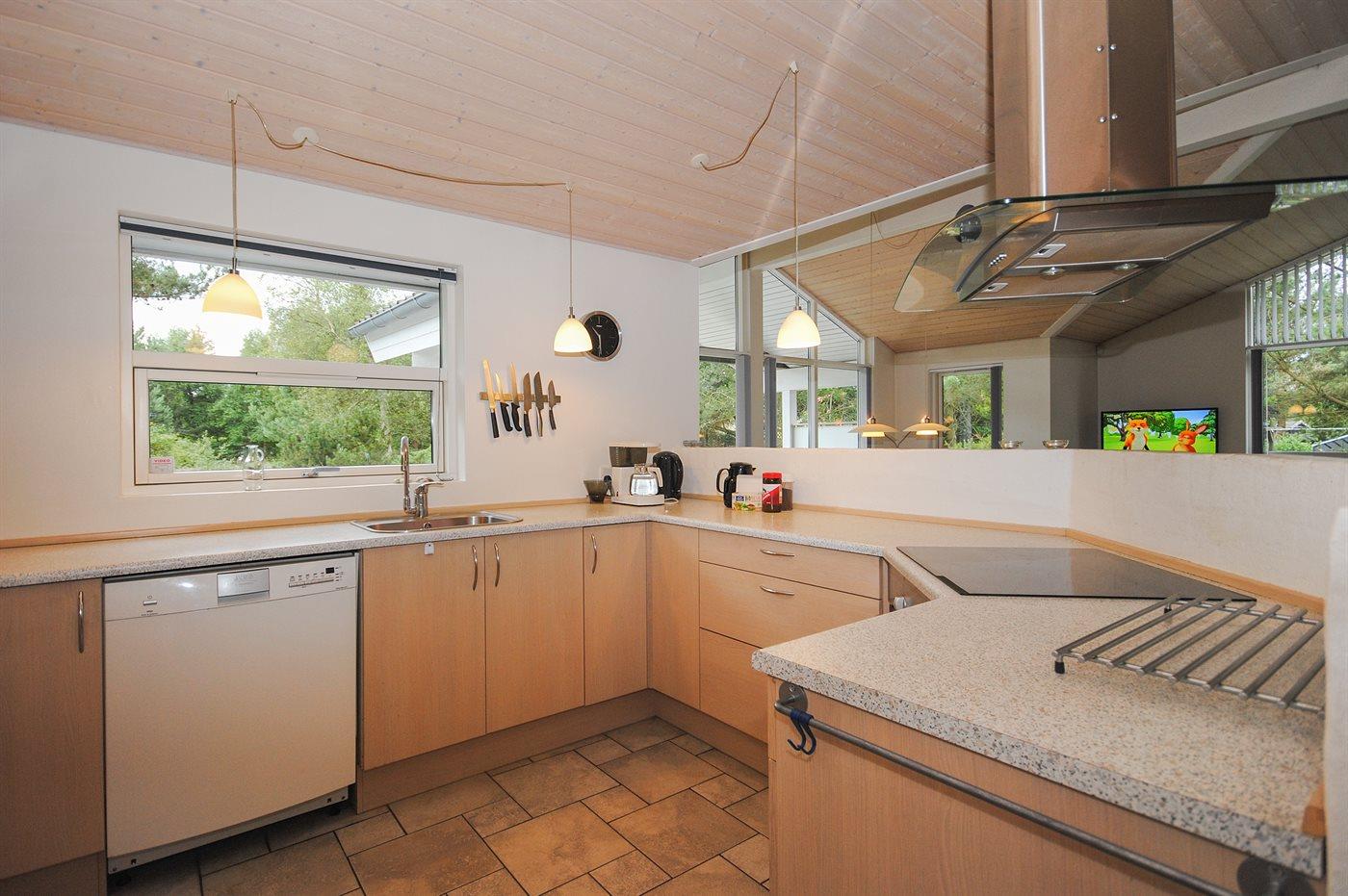 Køkkenet er udstyret med 1 køleskab. Der er 4 induktionskogeplader, varmluftovn, mikrobølgeovn samt opvaskemaskine.
