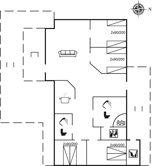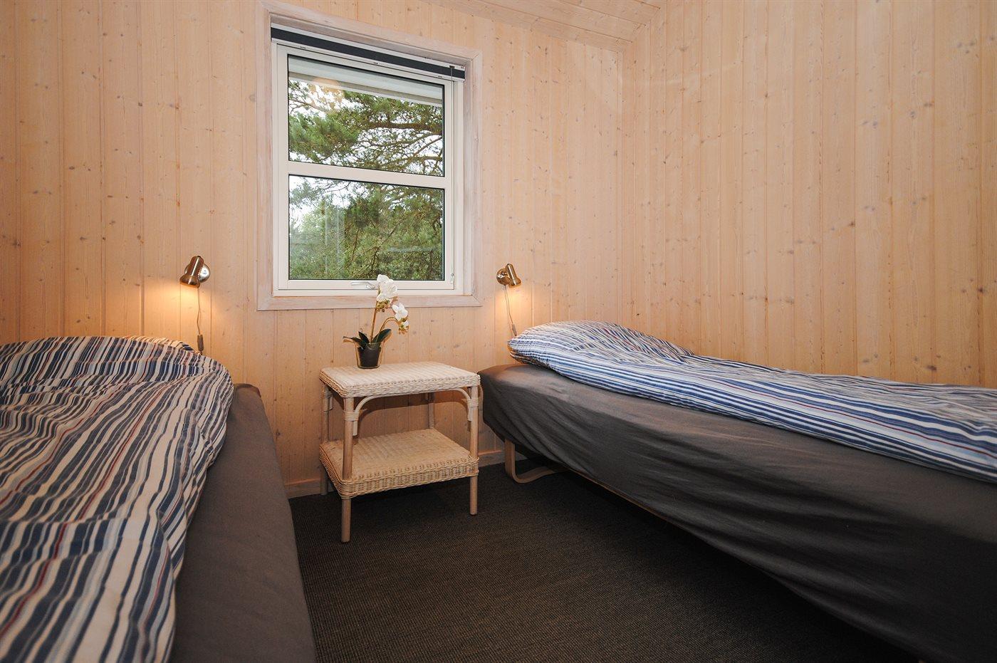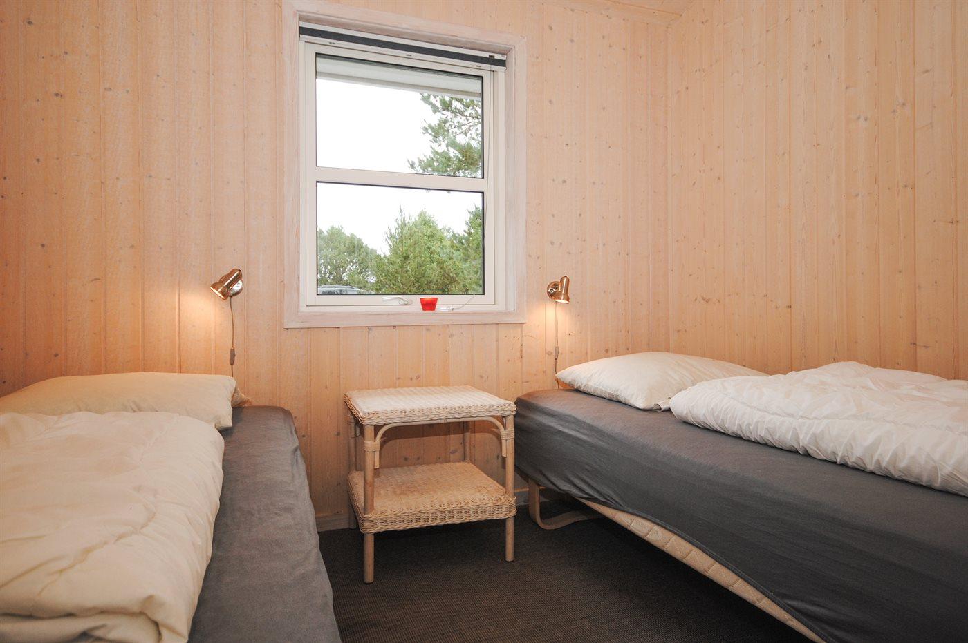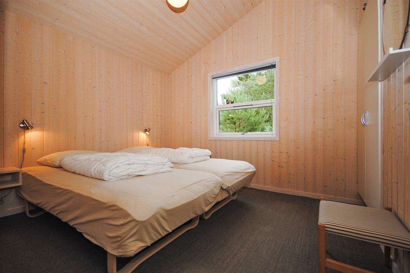 Der er i alt 4 soveværelser. Sovepladserne fordeler sig på: 4 sovepladser i dobbeltsenge. 4 sovepladser i enkeltsenge. Derudover er der 1 stk. barneseng.