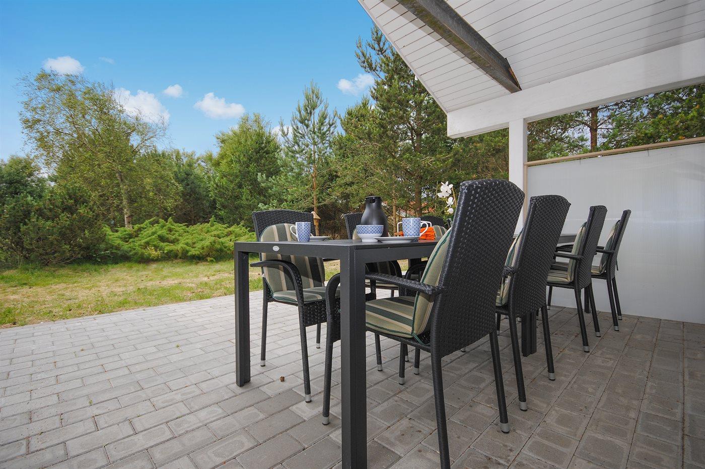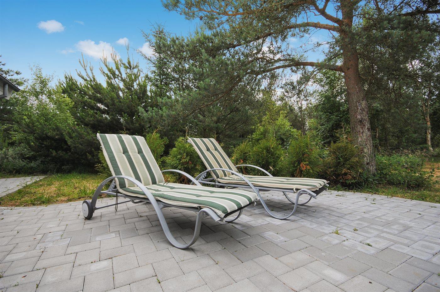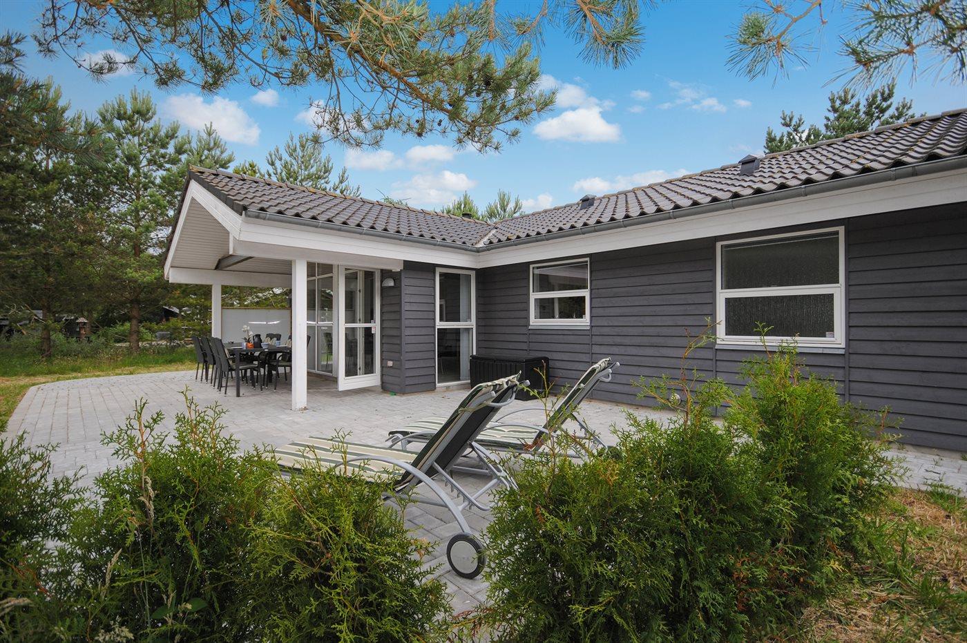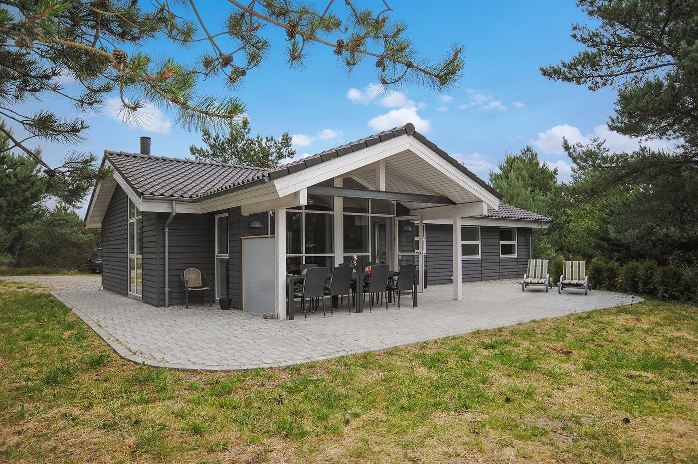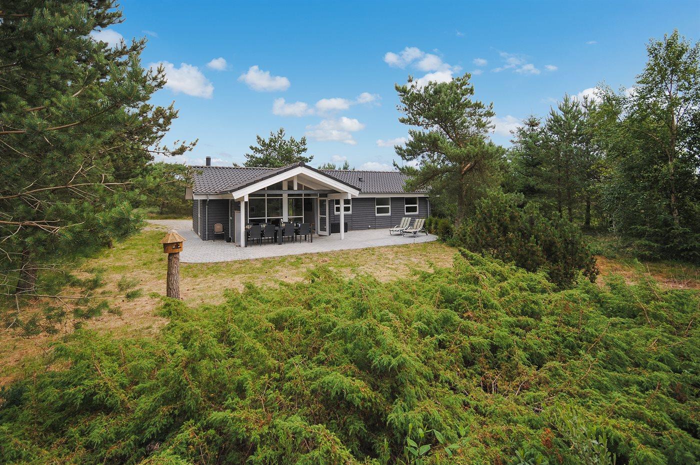Ferieboligen er beliggende på en 2400 m² stor naturgrund. Der er 950 m til havet. Nærmeste forretning er beliggende i en afstand af 5000 m. Til ferieboligen hører 80 m² terrasseareal. Desuden er der 17 m² overdækket terrasse. Der er redskabsrum. Gynge. Sandkasse. Der er installeret stik til opladning af elbil. Parkering ved ferieboligen.