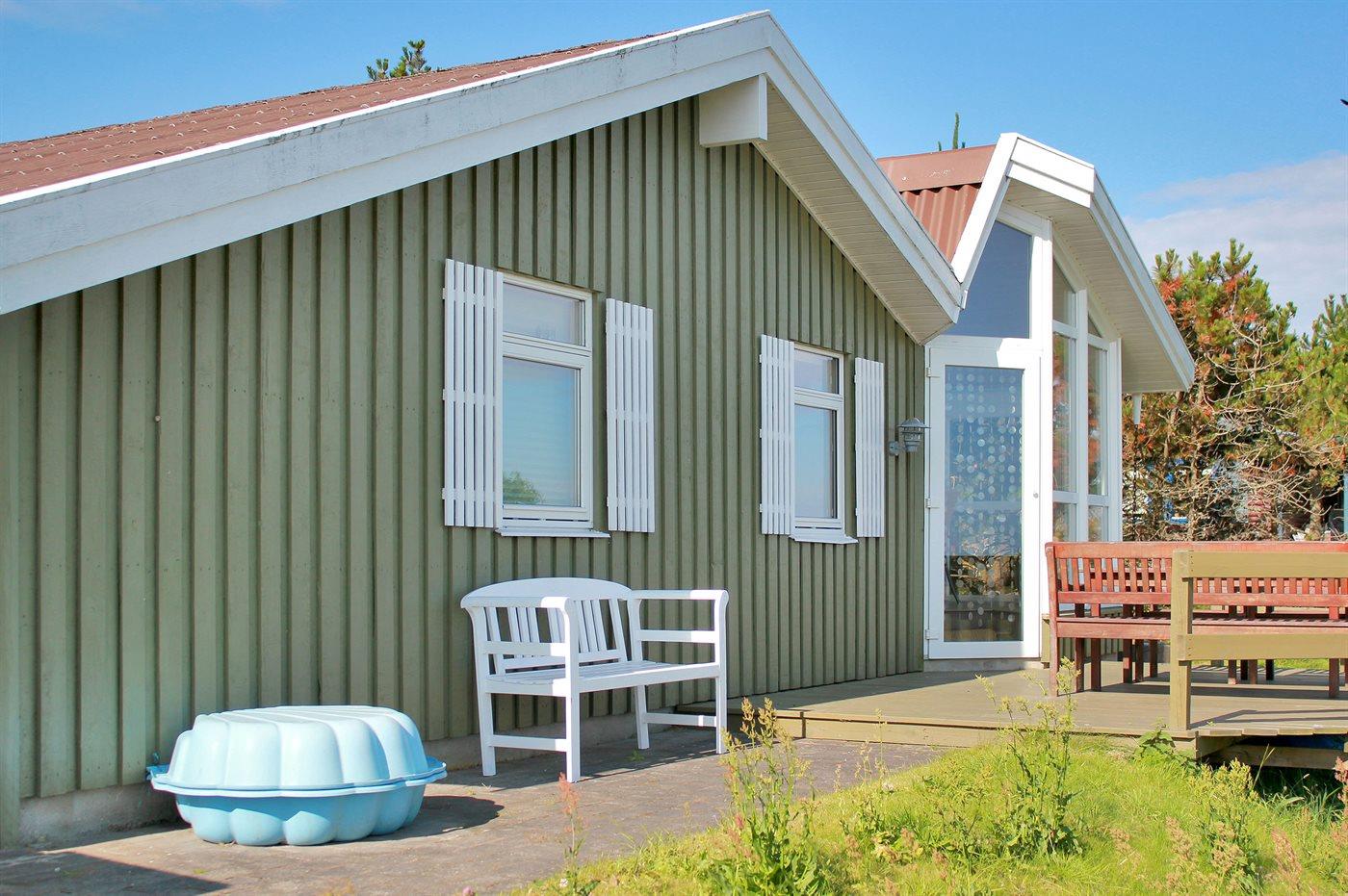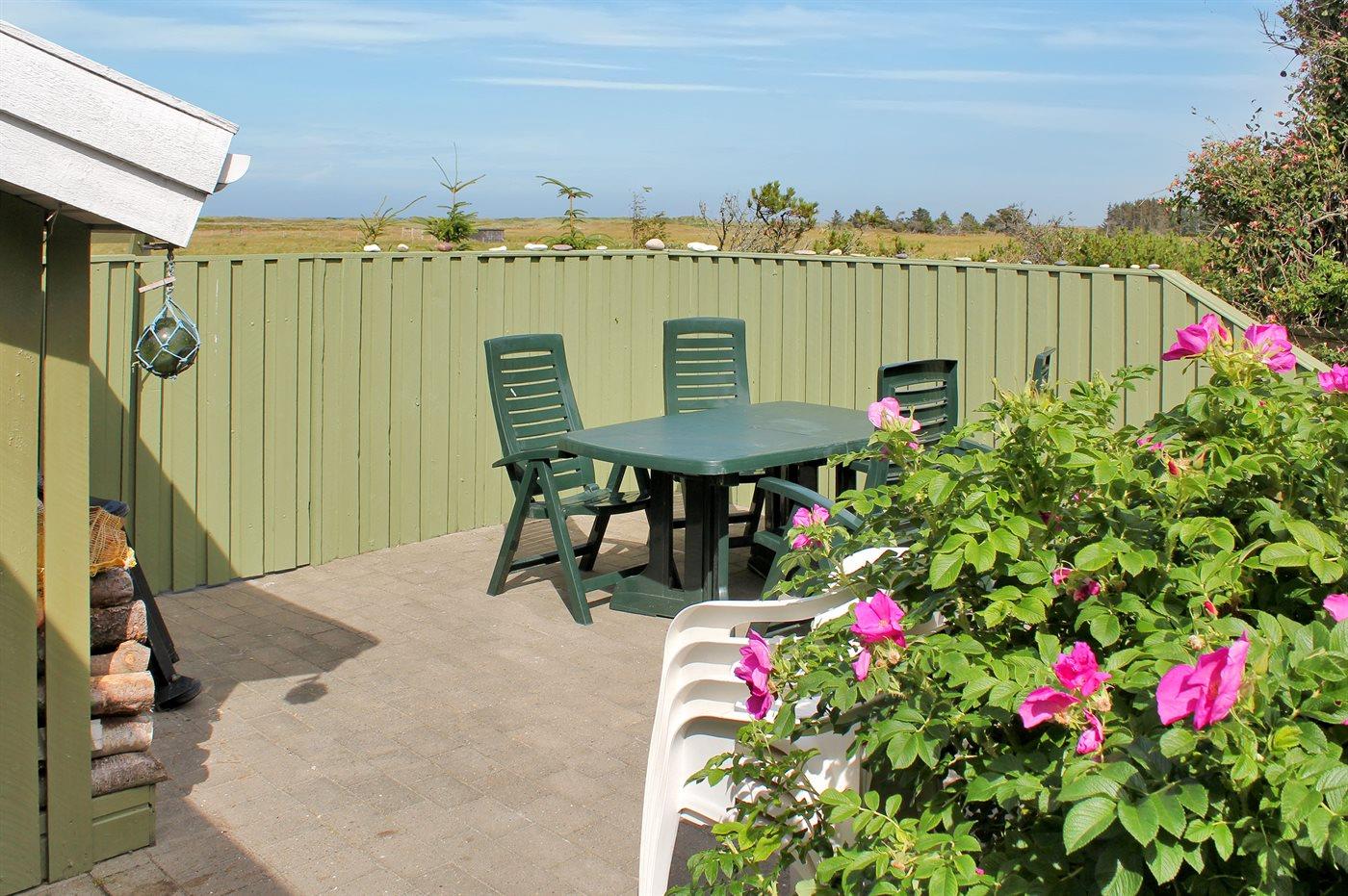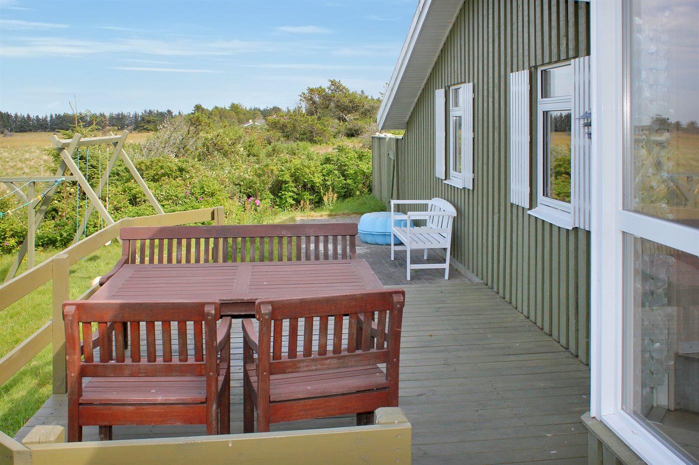 Ferieboligen er beliggende på en 1250 m² stor naturgrund. Der er 300 m til havet. Nærmeste forretning er beliggende i en afstand af 2500 m. Til ferieboligen hører 35 m² terrasseareal. Desuden er der 10 m² overdækket terrasse. Ligeledes er der adgang til udestue. Der er redskabsrum. Gynge. Sandkasse. Parkering ved ferieboligen.