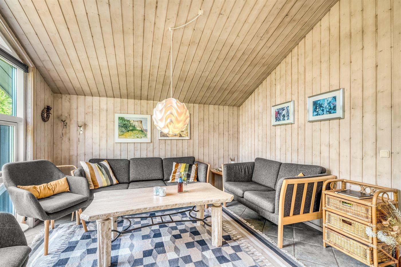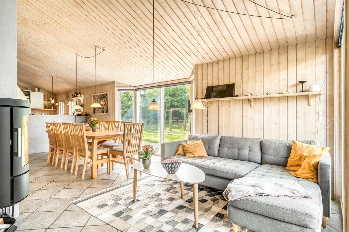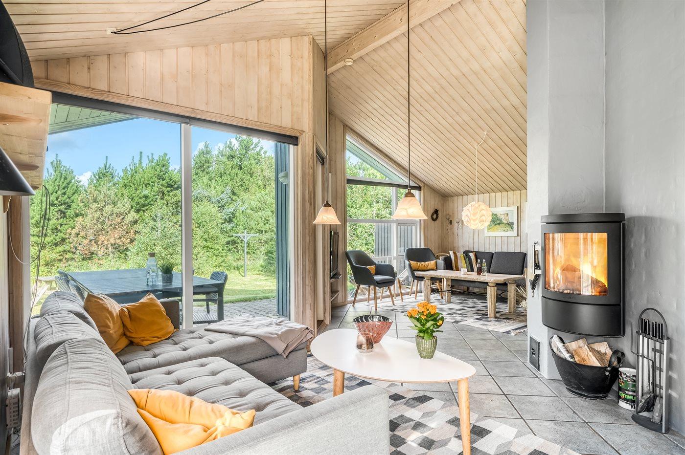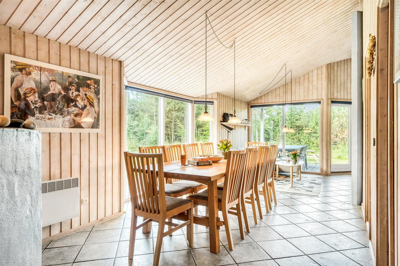 Et stort og flot sommerhus beliggende på en skov-/naturgrund i rolige og ugenerte omgivelser. Til huset hører såvel åbent som overdækket terrasseareal med havemøbler – hvor man kan nyde timer i det fri med en god bog eller en kryds og tværs. Der findes et redskabsrum til opbevaring af cykler o.l.