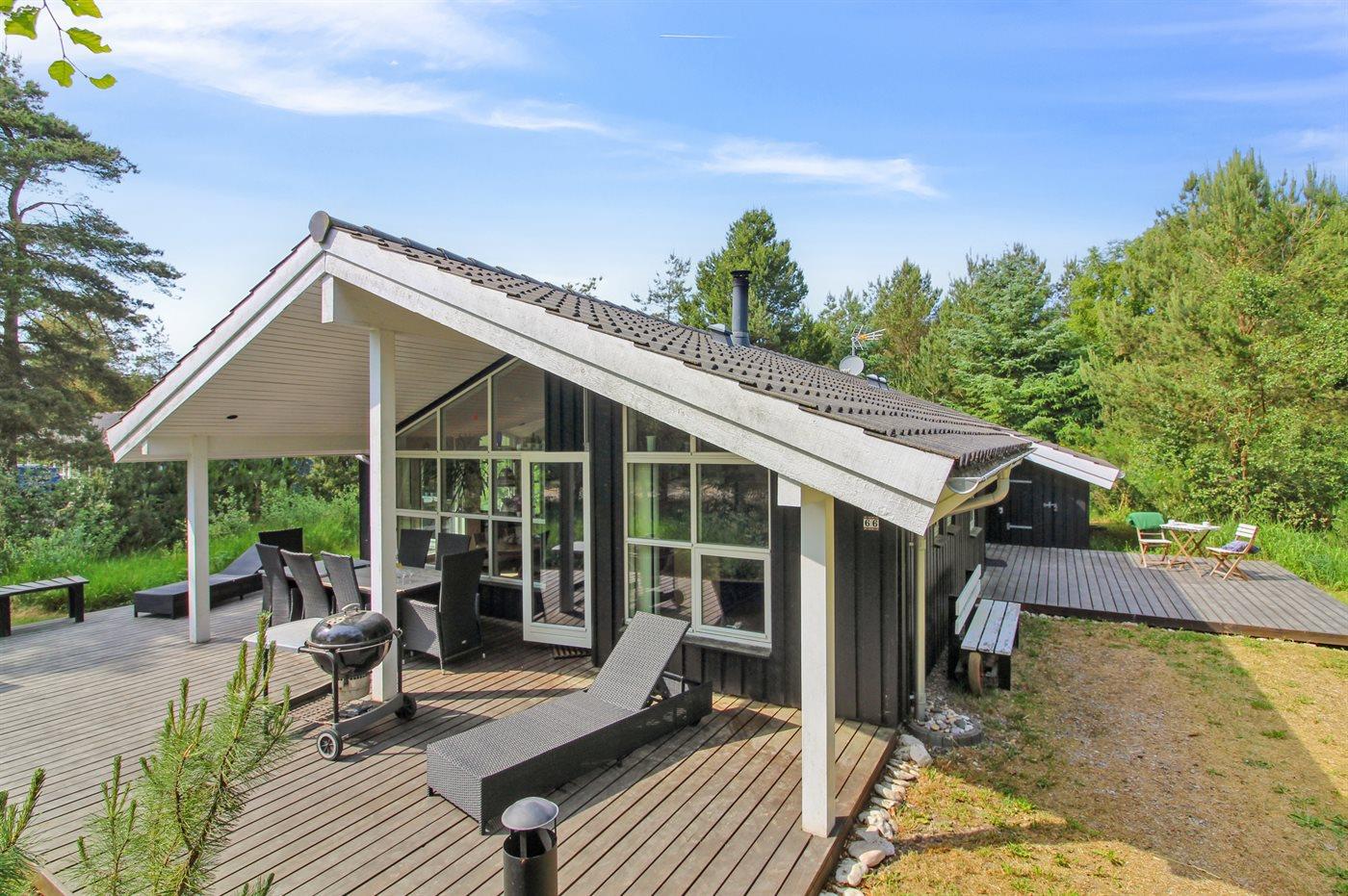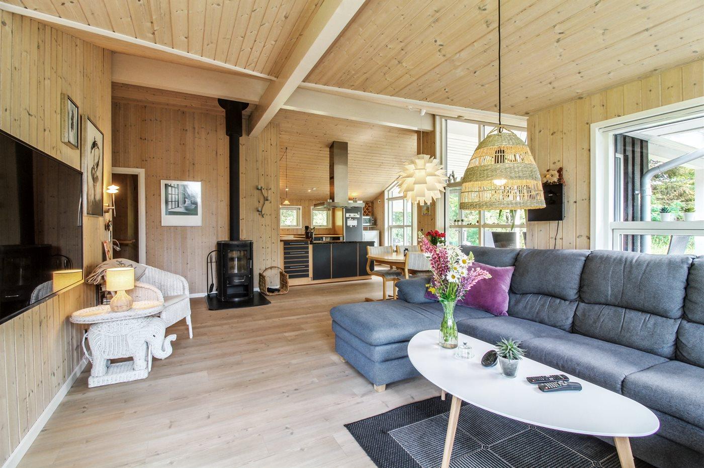 Sommerhuset egner sig til 8 personer samt 1 barn op til 3 år. Ferieboligen er på 114 m² og er bygget i 2005. Det er ikke tilladt at medbringe husdyr. Ferieboligen er udstyret med energibesparende varmepumpe. Der er gulvvarme i stuen. Der er gulvvarme i entréen. Der er gulvvarme i gangen. Ferieboligen har vaskemaskine. Tørretumbler. Frysekapacitet på 50 liter. Der er desuden brændeovn. Til de små er der 1 stk. barnestol.