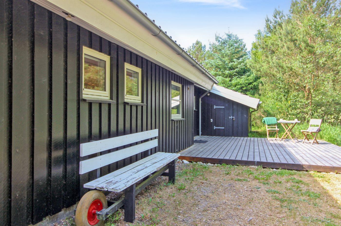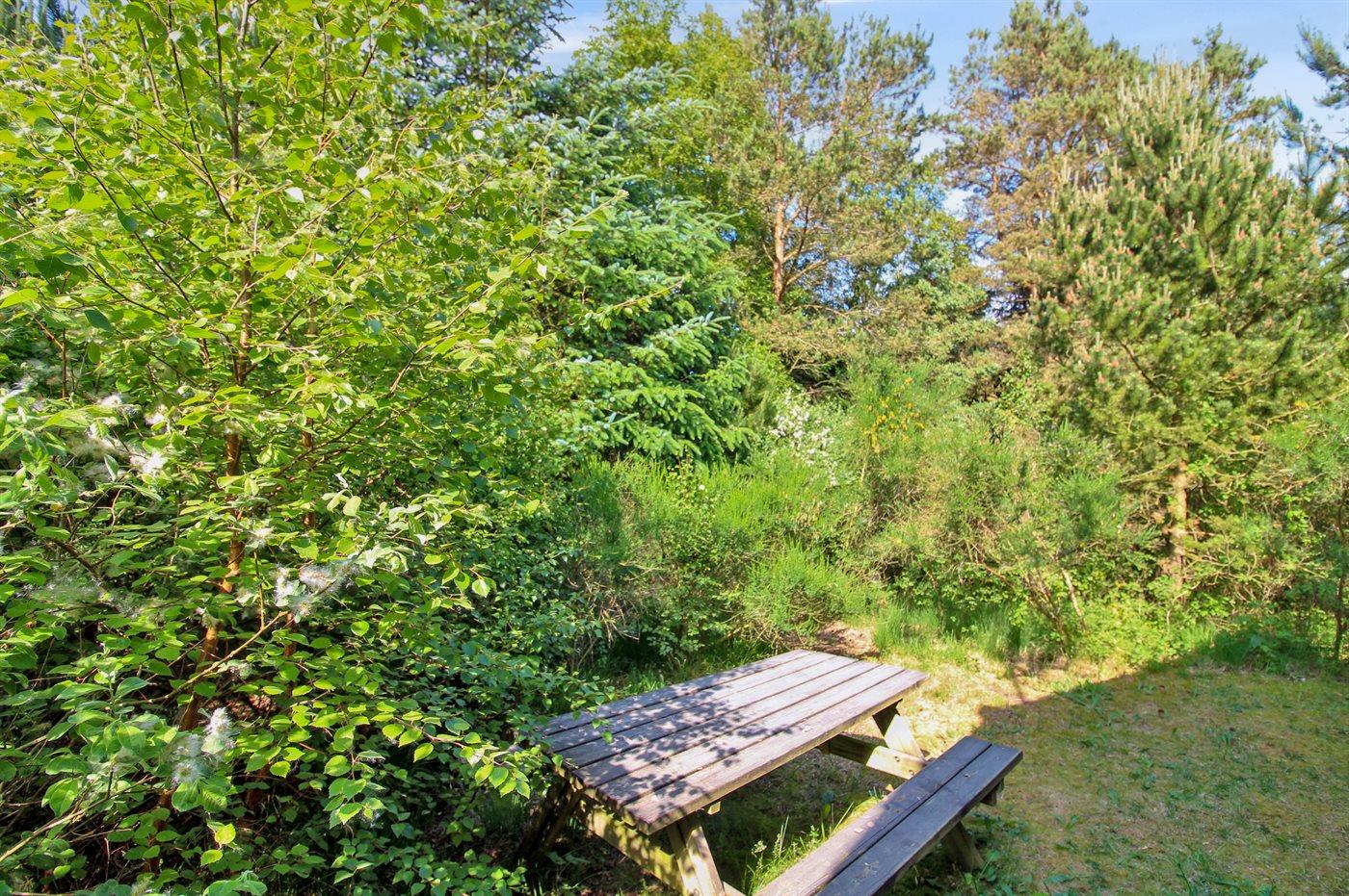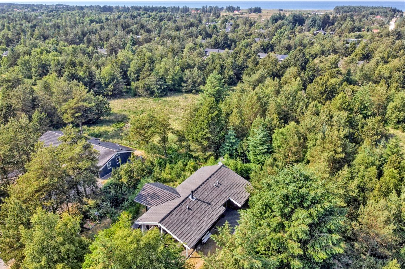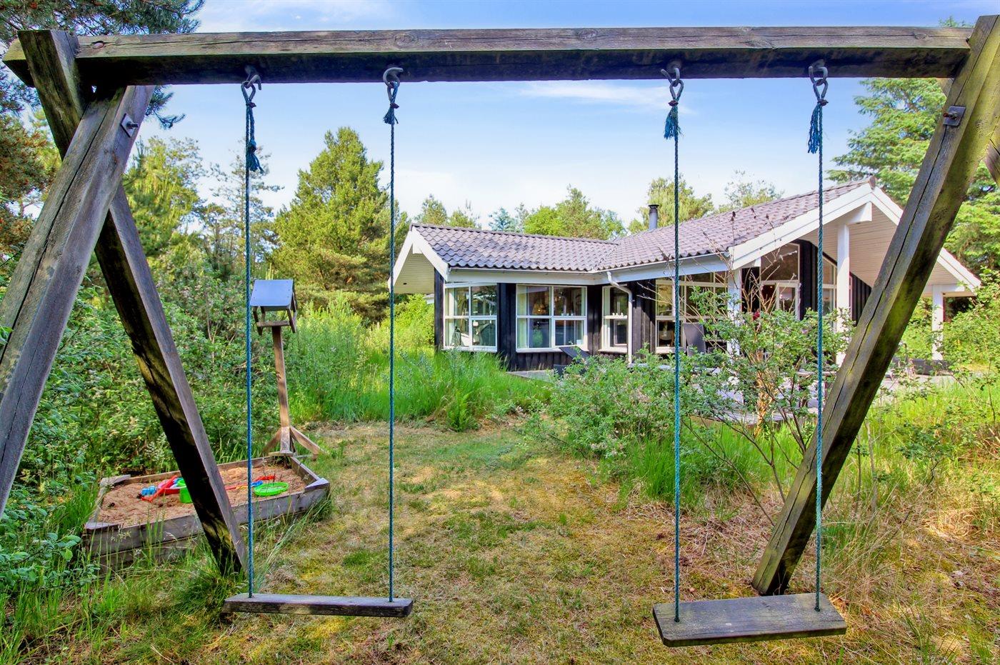 Ferieboligen er beliggende på en 1000 m² stor naturgrund. Der er 950 m til havet. Nærmeste forretning er beliggende i en afstand af 4000 m. Der er en golfbane i en afstand af 8000 m. Til ferieboligen hører 70 m² terrasseareal. Desuden er der 20 m² overdækket terrasse. Der er redskabsrum. Gynge. Sandkasse. Grill til rådighed. Parkering ved ferieboligen.