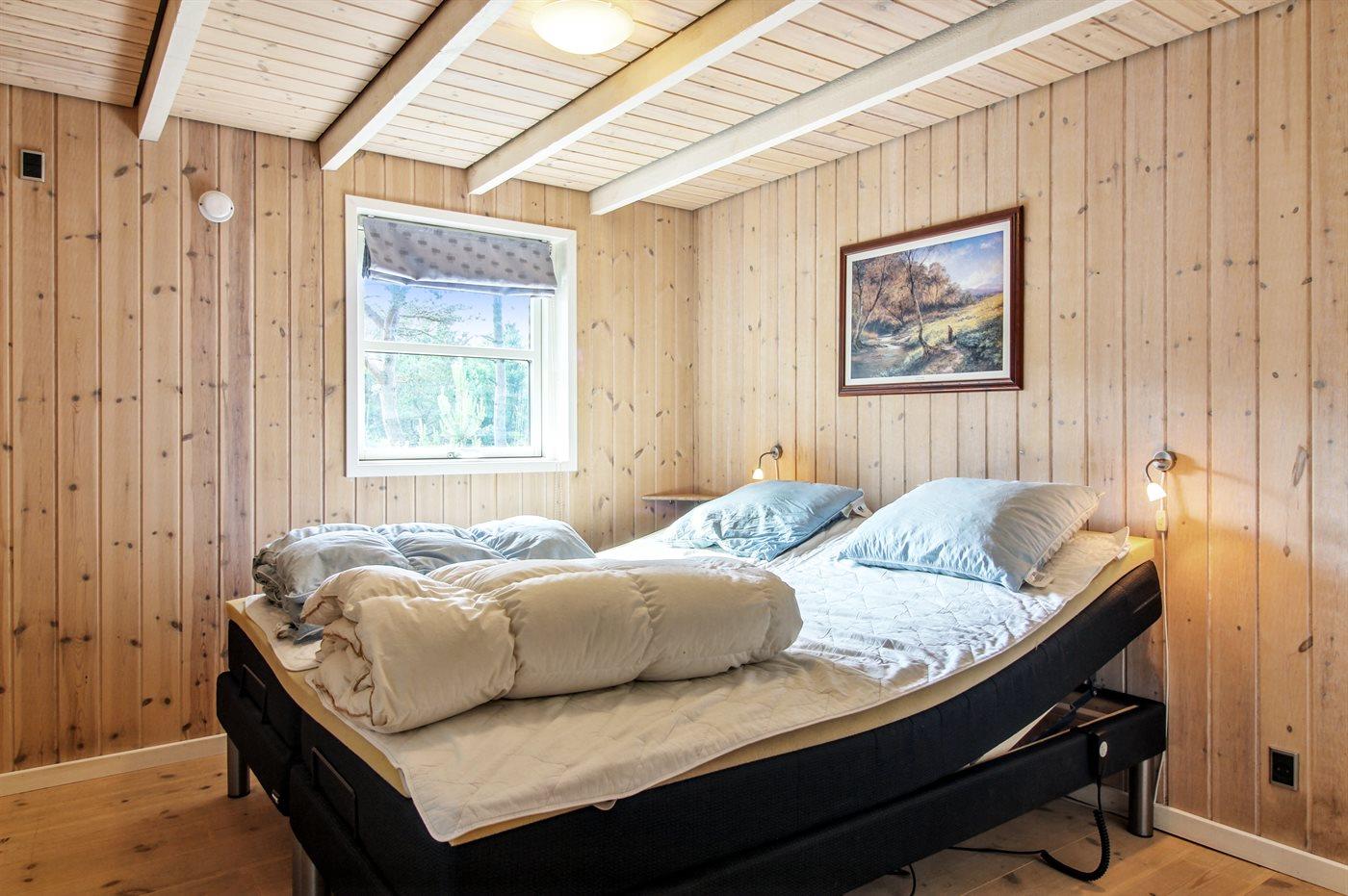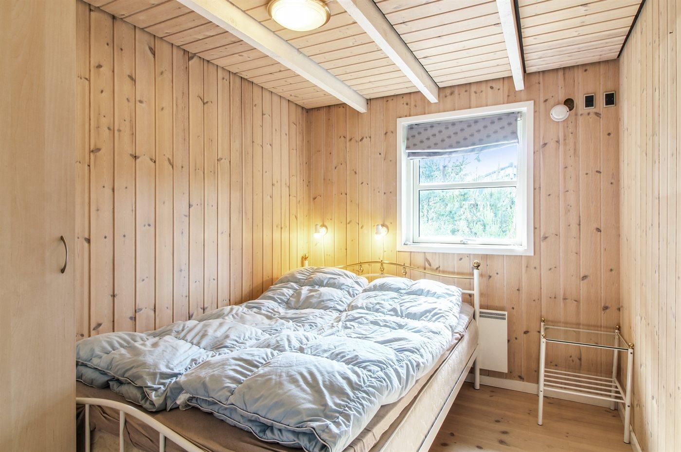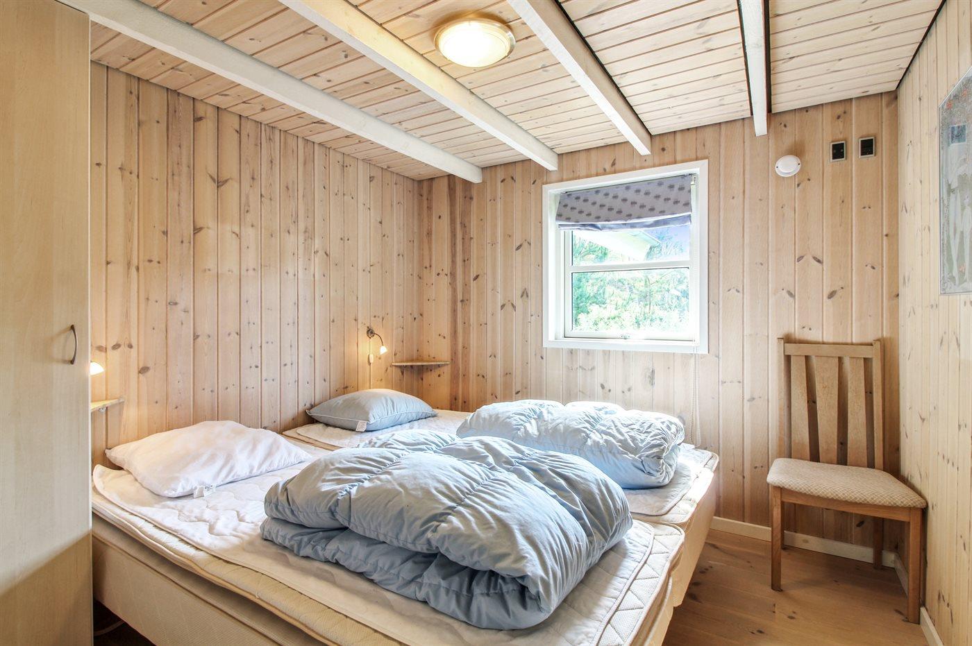 Der er i alt 4 soveværelser. Sovepladserne fordeler sig på: 6 sovepladser i dobbeltsenge.2 sovepladser i elevationssenge. 2 sovepladser på madrasser. 2 af disse sovepladser befinder sig på husets hems. Derudover er der 1 stk. barneseng.