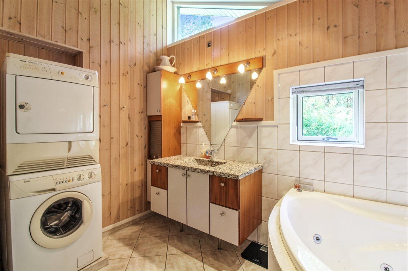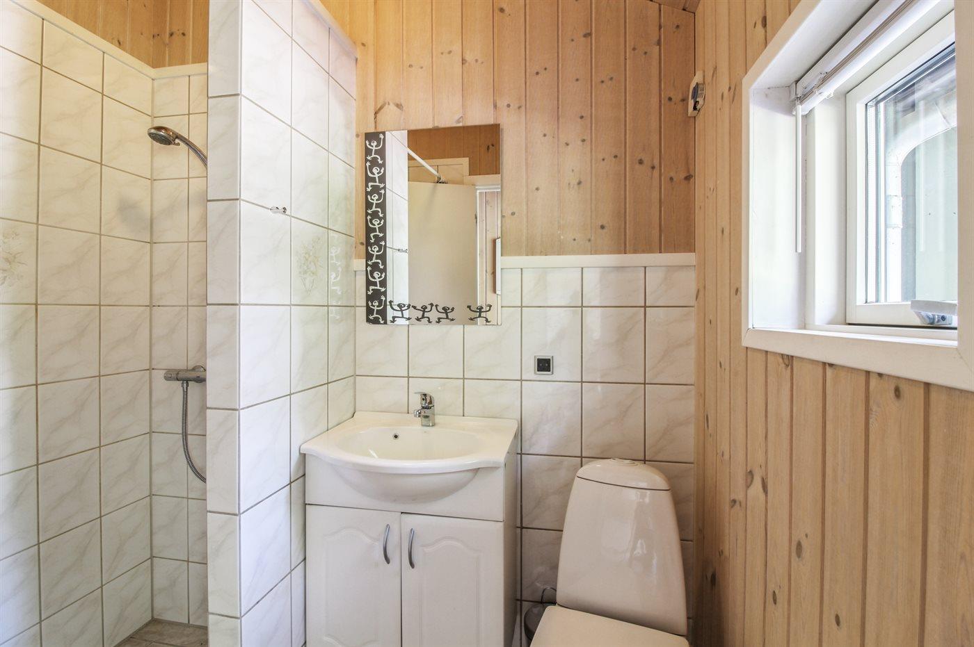 Der er 2 badeværelser med bruseniche og 2 toiletter. Der er gulvvarme på 2 badeværelser. I saunaen er der mulighed for afslapning.