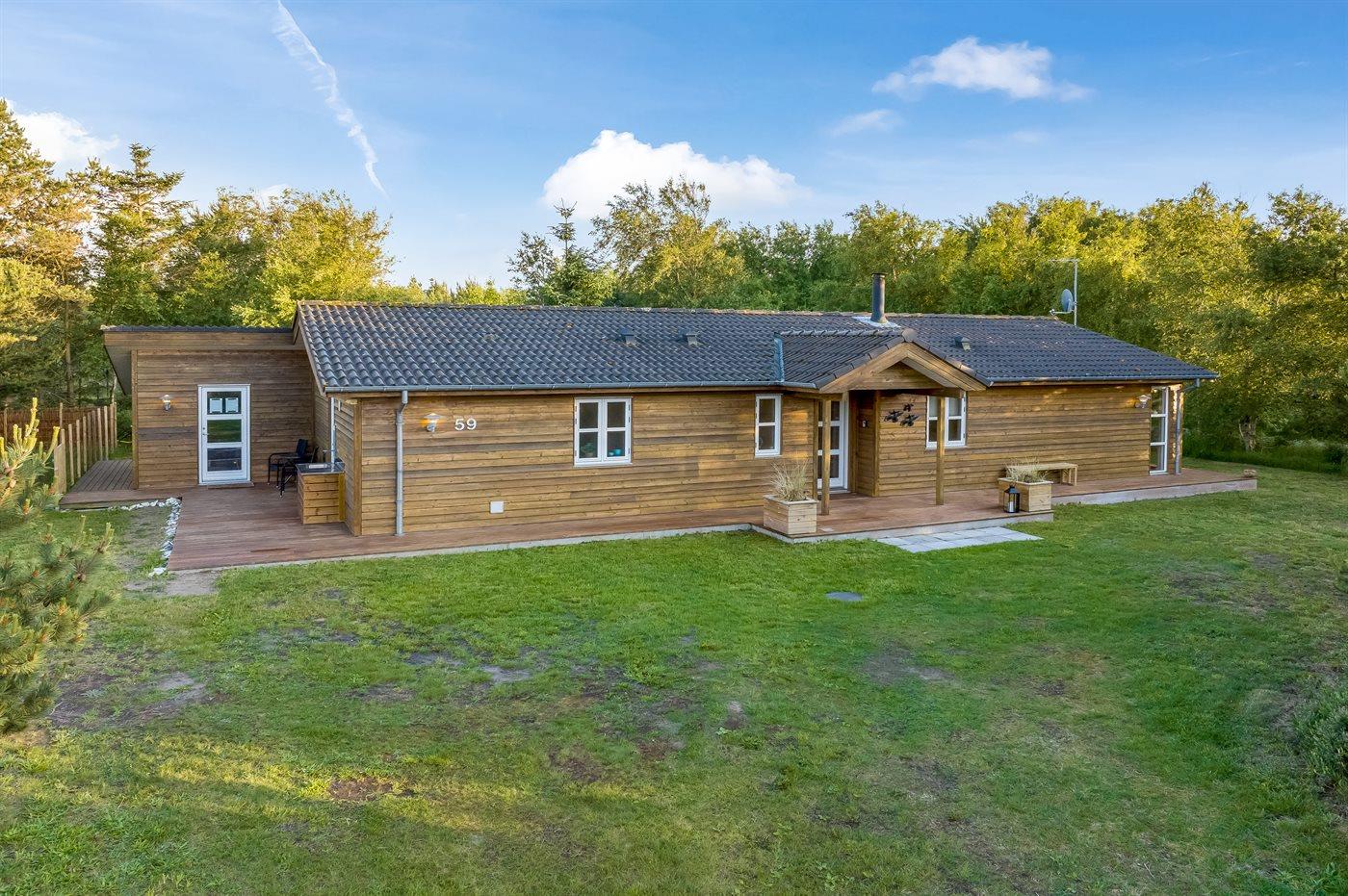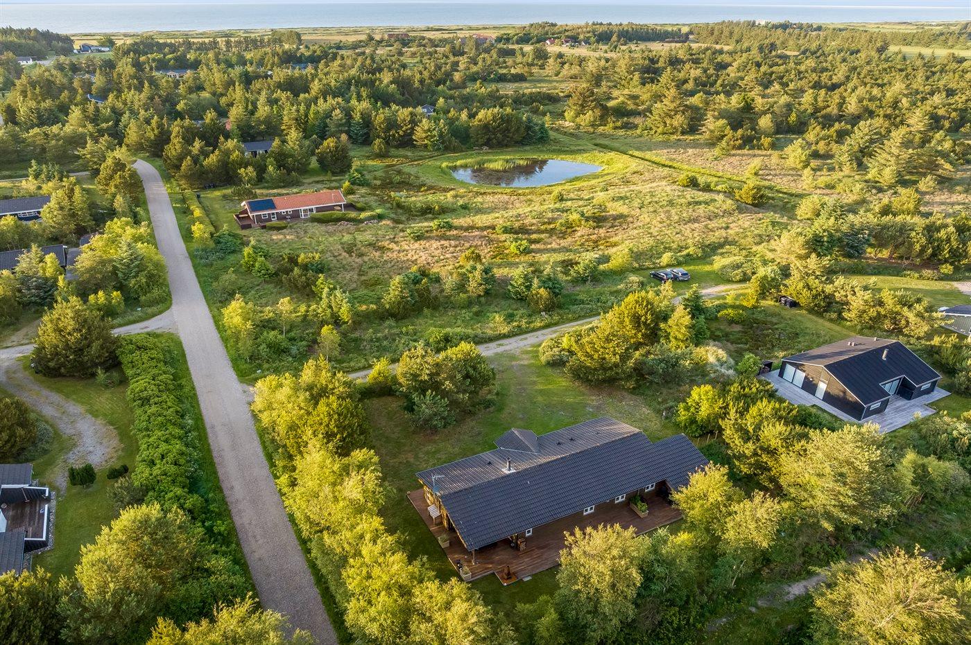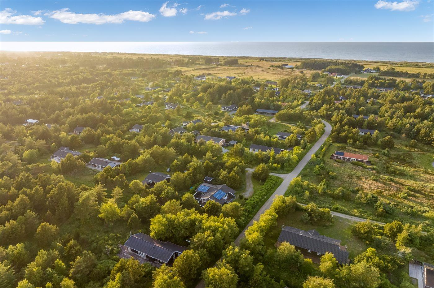 Ferieboligen er beliggende på en 1147 m² stor naturgrund. Der er 1000 m til havet. Der er 15300 m til fjorden. Der er 11900 m til Vadehavet. Nærmeste forretning er beliggende i en afstand af 5000 m. Der er en golfbane i en afstand af 7700 m. Til ferieboligen hører åbent terrasseareal. Desuden er der overdækket terrasse. Der er redskabsrum. Fodboldmål. Der ligger en legeplads i en afstand af 950 m. På lune aftener sørger en udendørs pejs for hyggelig stemning. Grill til rådighed. Parkering ved ferieboligen.