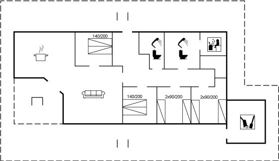 Der er i alt 4 soveværelser. Sovepladserne fordeler sig på: 4 sovepladser i dobbeltsenge. 4 sovepladser i enkeltsenge. 2 sovepladser på madrasser. 2 af disse sovepladser befinder sig på husets hems. Derudover er der 1 stk. barneseng.